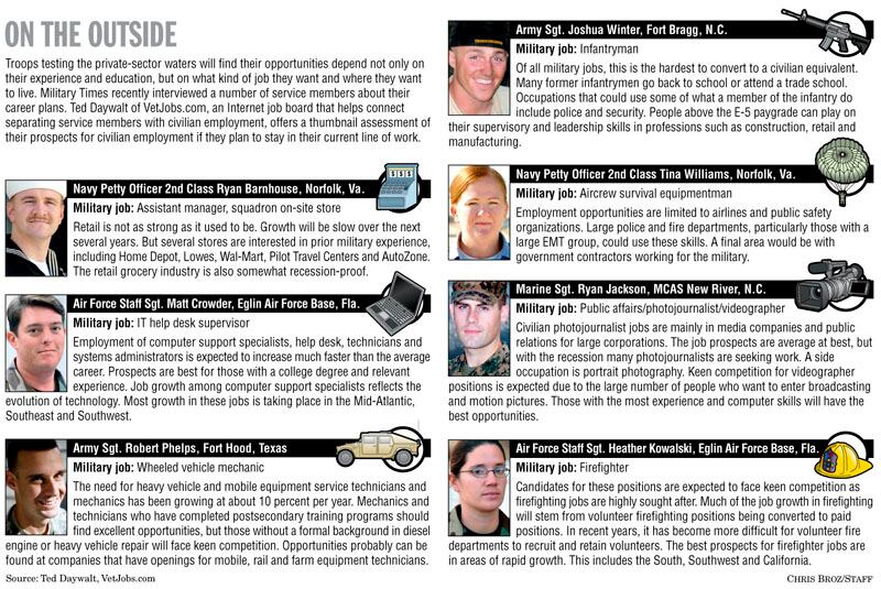 That's especially true for more experienced veterans who have served more than one enlistment, said Ted Daywalt, VetJobs.com's president.