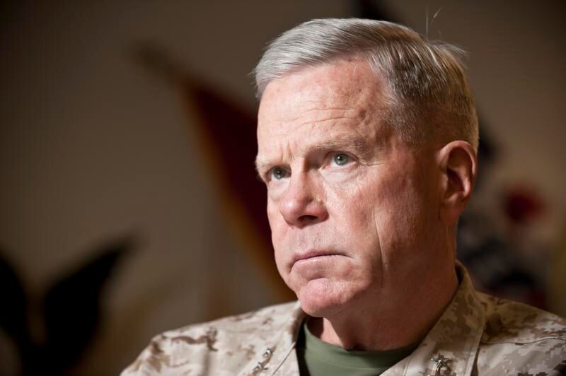 In an interview that aired Monday on NPR's "Morning Edition," Amos was asked about these allegations by co-host Renee Montagne. "I have never, ever said I wanted them crushed or kicked out," he responded. "I don't recall at all saying that." Without offering specifics of the two generals' discussion, Amos conceded that after reflecting on his remarks to Waldhauser, he felt he'd made a mistake and moved immediately to eliminate any bearing the commandant's comments may have had on the urination cases. "And then I stayed out of it completely," Amos told NPR.