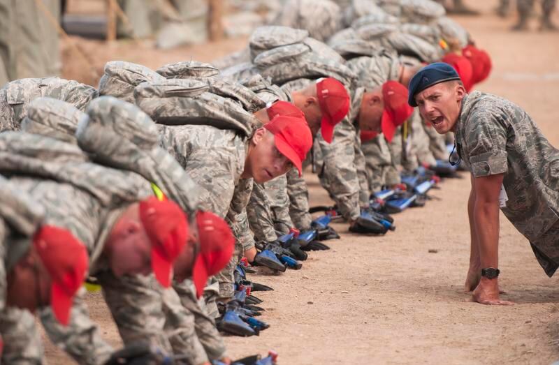 Parts of the academy's basic training resemble enlisted airmen's basic at Joint Base San Antonio-Lackland in Texas. Both have strenuous PT, obstacle courses, weapons training, and an emphasis on military discipline.