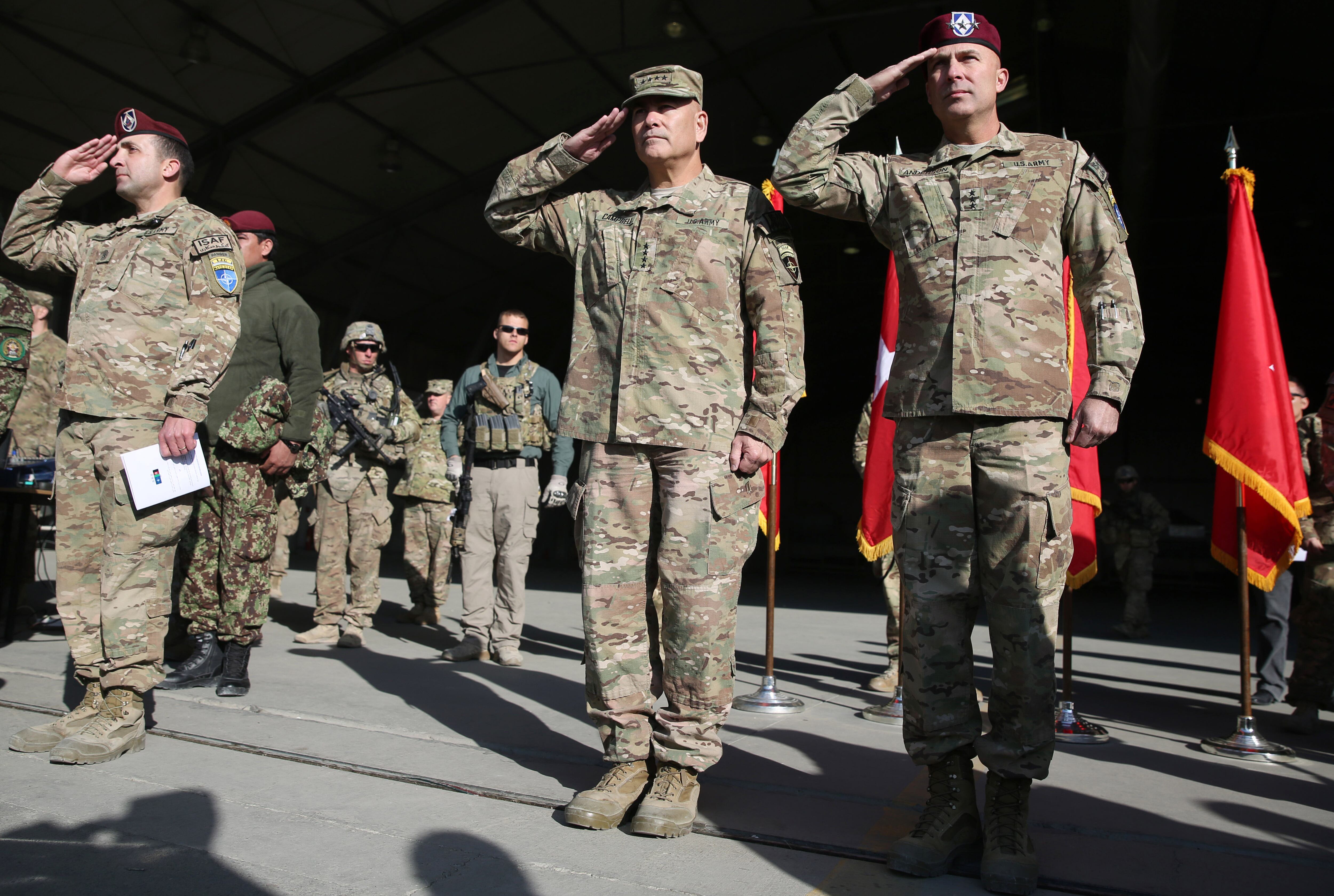 U.S. Gen. John F. Campbell, commander of NATO and U.S. forces, said that the mission now would transition to a training and support role for Afghanistan's own security forces, which have led the fight against the Taliban insurgents since mid-2013.