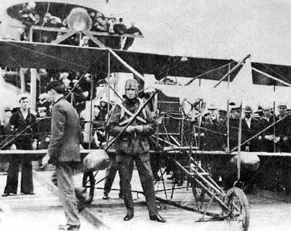 1911: Navy aviation got a boost when Eugene Ely made the first airplane landing on the deck of a (stationary) ship, the USS Pennsylvania in San Francisco harbor. Read "A Letter From Aviation History" on HistoryNet.com.