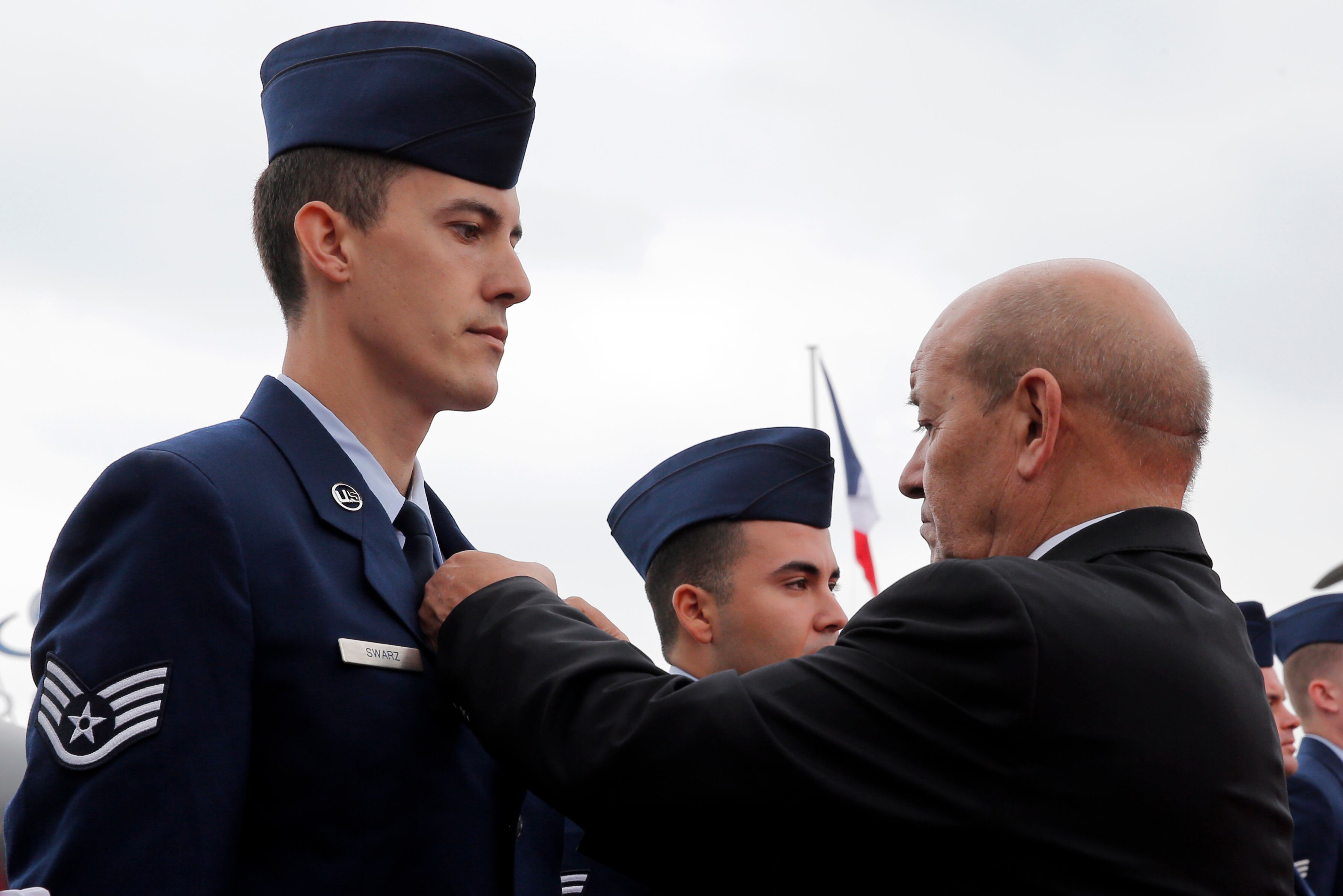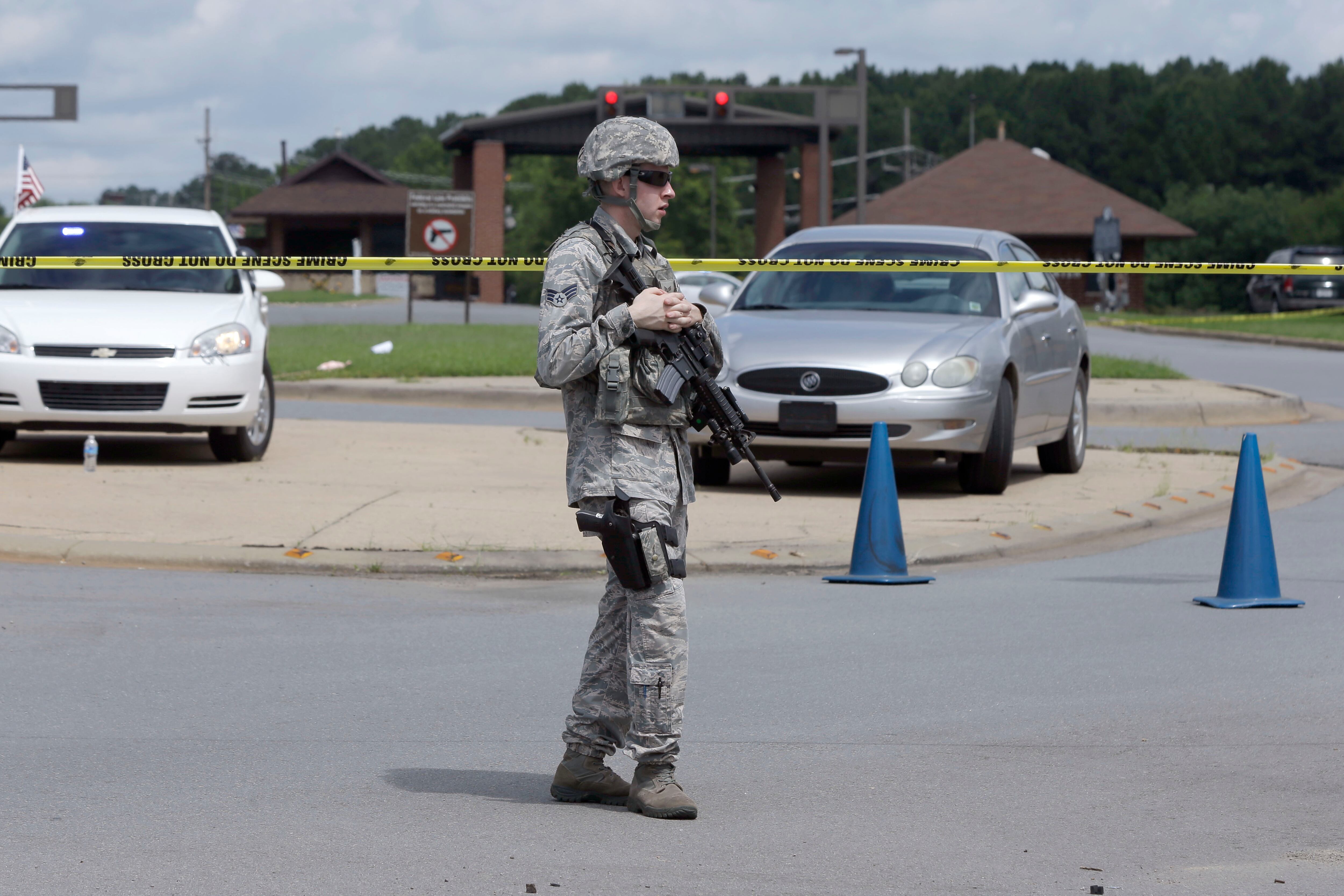 U.S. Army photo by J.D. Leipold An armed Air Force security guard patrols outside the front gate of little Rock Air Force Base near Jacksonville, Ark., Monday, June 15, 2015. Military officials said two people were hospitalized after shots were fired when a civilian attempted to enter Little Rock Air Force Base. The Jacksonville police department said the would-be intruder was injured and taken into custody. (AP Photo/Danny Johnston)U.S. Air Force Sgt. Greggory Swarz, left, is awarded with the Officier de la Legion d'Honneur (Officer of the Legion of Honour) medal by French Defense Minister Jean-Yves Le Drian during a ceremony on the opening day of the Paris Air Show, at Le Bourget airport, north of Paris, Monday, June 15, 2015. When a Greek F-16 fighter jet crashed into five NATO planes parked on a Spanish air base tarmac, U.S. Air Force Sgt. Greggory Swarz heard the deafening blast, spotted the giant firewall that resulted and sprinted straight toward the flames to pull out four French airmen. (AP Photo/Christophe Ena)The Thunderbirds Diamond Formation perform the Pass in Review maneuver during the Wings Over Whiteman practice airshow at Whiteman Air Force Base, Mo., June 12, 2015.