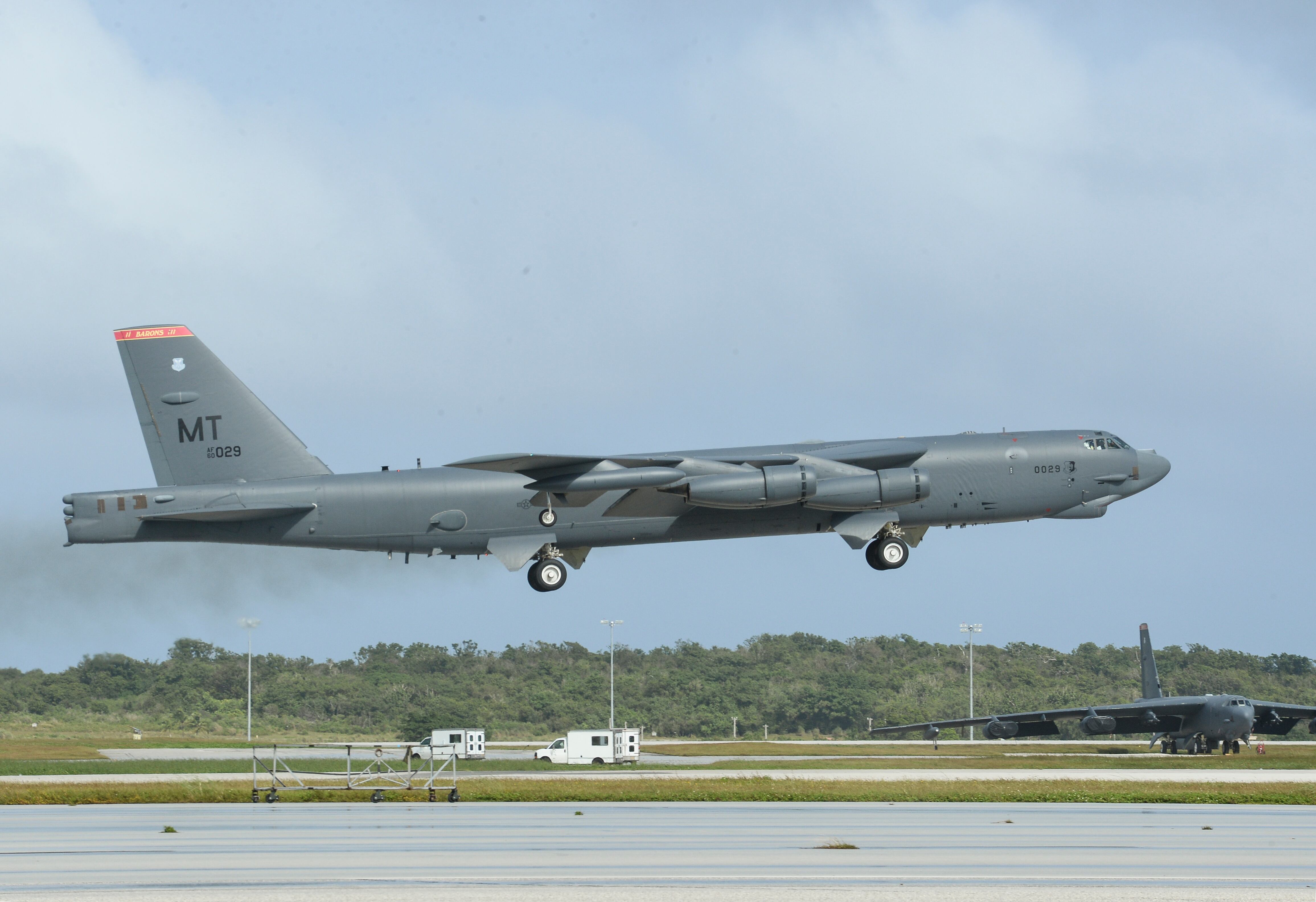 Rick Cruz/Pacific Daily News/rmcruz@guampdn.comAirmen from Minot Air Force Base, N.D., prepare to leave Andersen Air Force Base, Guam, on March 4, 2016. CBP missions began March 2004 and are designed to enhance regional security and provide reassurance to allies and partners that the United States is capable to defend its national security interests in the Indo-Asia-Pacific region. (U.S. Air Force photo/Airman 1st Class Arielle Vasquez)A B-52 Stratofortress from the 69th Expeditionary Bomb Squadron, deployed from Minot Air Force Base, N.D., lands March 2, 2016, at Andersen Air Force Base, Guam. A new rotation of aircrews, maintenance personnel and aircraft assigned to the 69th EBS arrived on Guam to replace the 23rd EBS in support of the U.S. Pacific Command’s continuous bomber presence mission. (U.S. Air Force photo/Airman 1st Class Arielle Vasquez)