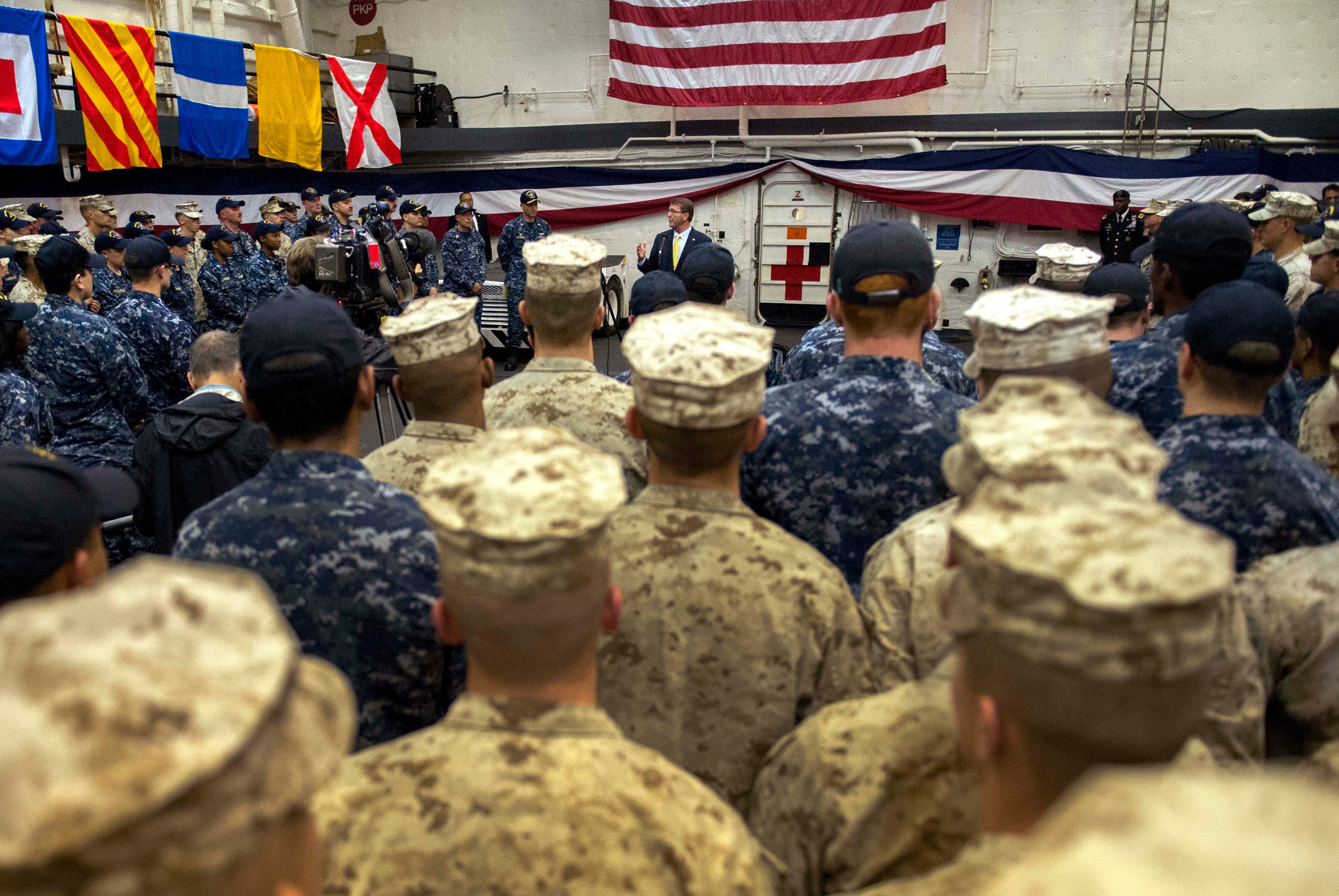 TALLINN, Estonia (June 23, 2015) Secretary of Defense Ash Carter talks with U.S. Navy and Marines aboard USS San Antonio (LPD 17). Secretary Carter is traveling in Europe to hold bilateral and multilateral meetings with European defense ministers and to participate in his first NATO ministerial as Secretary of Defense. (DOD Photo by Master Sgt. Adrian Cadiz/Released)Senior Airman Jason Soliz, a 100th Security Forces Squadron Military Working Dog Unit handler, and MWD Gina, conduct a sweep of the passenger terminal on Royal Air Force Mildenhall, England, June 16, 2015. Members of the 100th SFS and Central Region U.K. Border Force conducted sweeps of the building with their working dogs to strengthen detection methods and learn potential training techniques. (U.S. Air Force photo/Senior Airman Christine Halan)