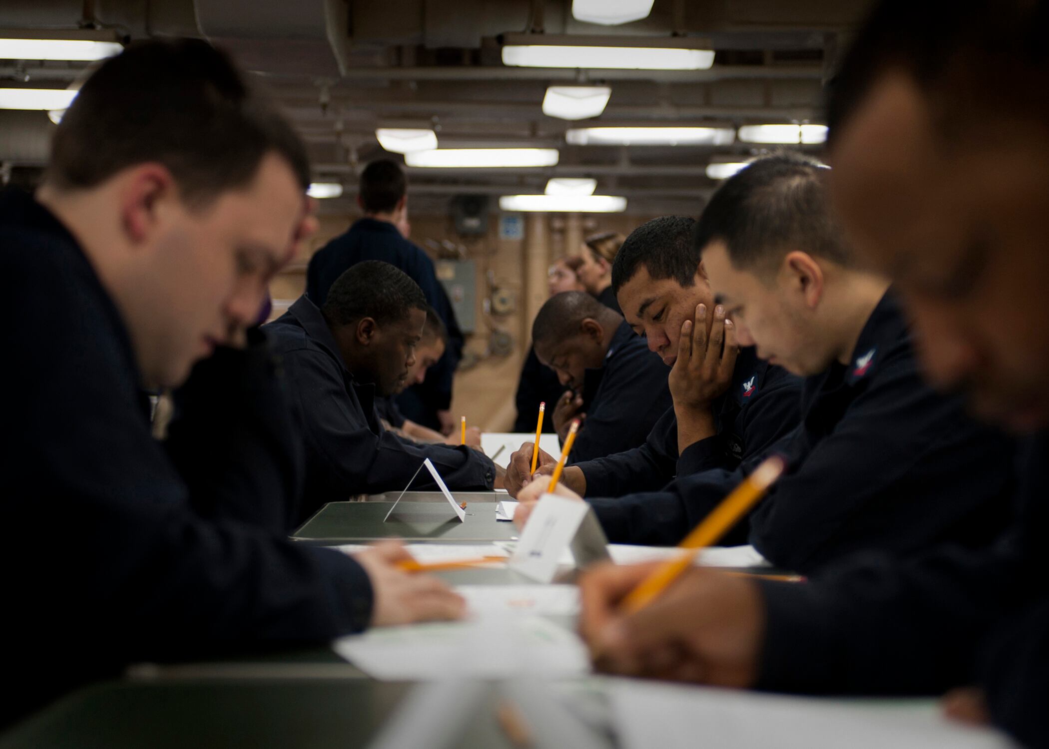 150305-N-GZ638-021 WHITE BEACH, Okinawa (March 5, 2015) - Sailors take the Navy-wide petty officer first class advancement exam on the mess deck of the forward-deployed amphibious assault ship USS Bonhomme Richard (LHD 6). Bonhomme Richard is deployed in the U.S. 7th Fleet Area of Operations. (U.S. Navy photo by Mass Communication Specialist 3rd Class Christian M. Caldwell/Released)Dragoons assigned to Bull Troop, 1st Squadron, 2nd Cavalry Regiment participated in a live-fire exercise at Grafenwoehr Training Area located near Rose Barracks, Germany, March 5, 2015. Troopers conducted group and tactical movements while attacking an objective assisted by their Strykers and mortar fire during the exercise.The crew of Coast Guard Cutter Neah Bay, home-ported in Cleveland, rescued a 25-year-old man attempting to walk across Lake St. Clair, March 5, 2015. The crew is transporting the man, a U.S. citizen who was hypothermic, back to shore in Algonac, Mich., where they will be met by emergency medical services. (U.S. Coast Guard photo by Lt. Josh Zike)Dragoons assigned to Bull Troop, 1st Squadron, 2nd Cavalry Regiment participated in a live-fire exercise at Grafenwoehr Training Area located near Rose Barracks, Germany, March 5, 2015. Troopers conducted group and tactical movements while attacking an objective assisted by their Strykers and mortar fire during the exercise.Two Marines from Silent Drill Platoon practice spinning their rifles through the air to each other.U.S Airmen of the South Carolina Air National Guard assigned to the 169th Logistics Readiness Squadron unload cargo from a C-17 Globemaster III March 5, 2015, at McEntire Joint National Guard Base, S.C. Vigilant Guard is series of federally funded disaster-response drills conducted by National Guard units working with federal, state and local emergency management agencies and first responders. (U.S. Air National Guard photo by Airman 1st Class Ashleigh S. Pavelek/Released)Airmen participate in the live, virtual, constructive portion of Red Flag 15-2 at the Combined Operations Center-Nellis on Nellis Air Force Base, Nev., March 5, 2015. Red Flag 15-2 will be the first Red Flag exercise that will include hundreds of virtual and constructive participants in simulators at their home stations or the Distributed Mission Operations Center at Kirtland Air Force Base, N.M. (U.S. Air Force photo by Senior Airman Thomas Spangler)An Arizona Army National Guard UH-60 Black Hawk helicopter with 2-285th Assault Helicopter Battalion in Phoenix soars over a low layer of clouds during a flight to the Western Army Aviation Training site in Marana, Ariz., March 4, 2015. (U.S. Army National Guard photo by Staff Sgt. Brian A. Barbour)MANCHESTER, Wash. - Tugs tow the ex-USS Ranger (CV 61) through the Puget Sound. The ex-Ranger will be towed from the Navy’s inactive ships maintenance facility in Bremerton, Wash., to International Shipbreaking Ltd.’s ship dismantling facility in Brownsville, Texas, for complete dismantling and recycling. Ranger was decommissioned in 1993 following nearly 36 years of service. (U.S. Navy Photo by Mass Communication Specialist 3rd Class Seth Coulter/Released)150305-N-CC789-003 PACIFIC OCEAN (March 5, 2015) – Sailors assigned to amphibious assault ship USS America (LHA 6) take the petty officer first class advancement exam on the ship’s mess decks. America is currently conducting maritime training operations off the coast of California. The ship is the first of its class and is optimized for Marine Corps aviation. (U.S. Navy photo by Mass Communication Specialist 1st Class Vladimir Ramos/Released)