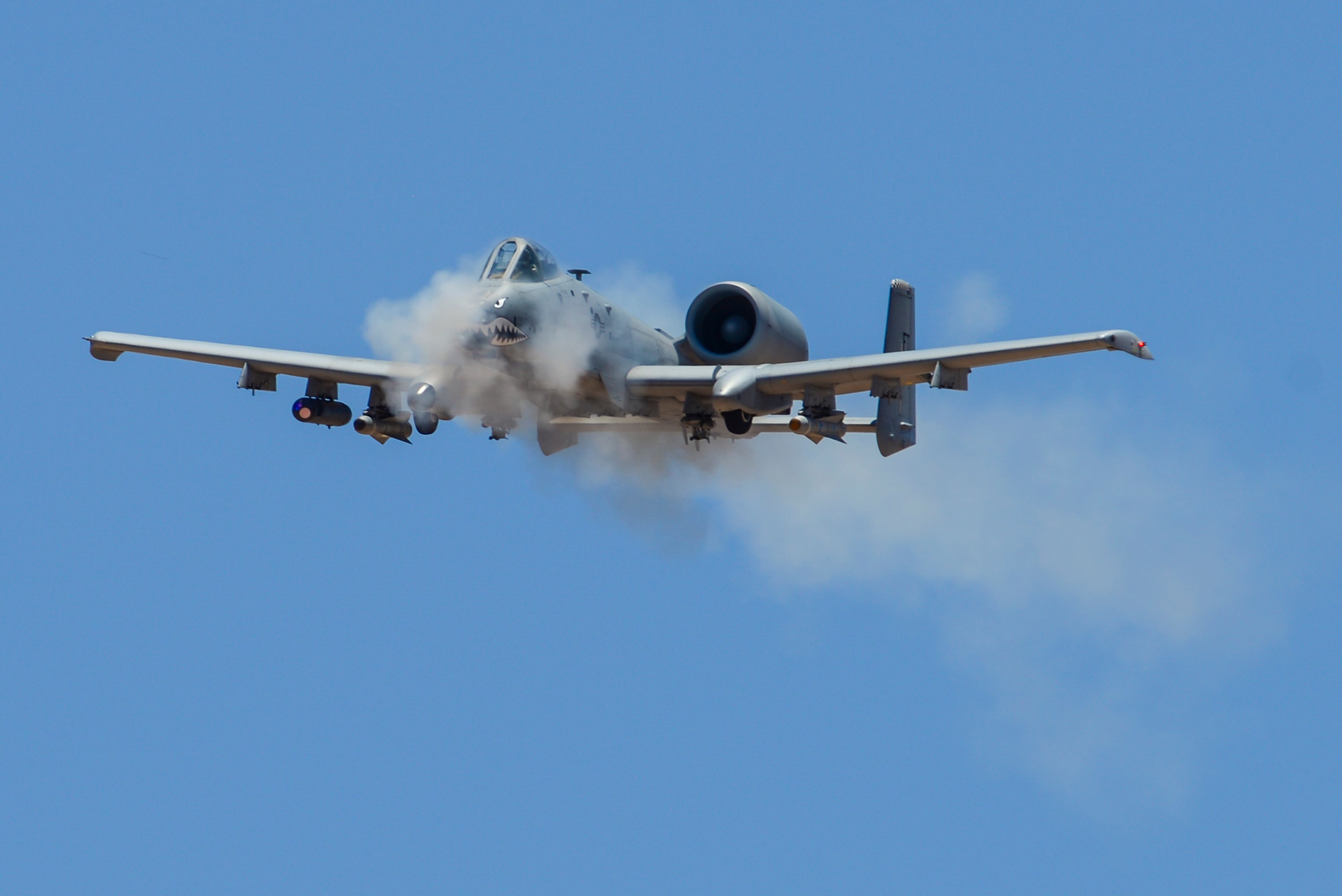 U.S. Airmen work on an A-10 Tunderbolt II after its arrival for Hawgsmoke 2016 at Davis-Monthan Air Force Base, Ariz., June 1, 2016. A-10s from all over the U.S. arrived for the two day competition, which involves scoring teams and individual pilots on their performance of aerial tactics. (U.S. Air Force photo by Airman Nathan H. Barbour/Released)A-10 Thunderbolt IIs arrive for Hawgsmoke 2016 at Davis-Monthan Air Force Base, Ariz., June 1, 2016. Scoring for the competition is based on strafing, high-altitude dive-bombing, low-angle high-delivery, Maverick missile precision, and team tactics. (U.S. Air Force photo by Airman Nathan H. Barbour/Released)An A-10 Thunderbolt II rests on the flightline after arriving for Hawgsmoke 2016 at Davis-Monthan Air Force Base, Ariz., June 1, 2016. Scoring for the competition is based on strafing, high-altitude dive-bombing, low-angle high-delivery, Maverick missile precision, and team tactics. (U.S. Air Force photo by Airman Nathan H. Barbour/Released)An A-10C Thunderbolt II assigned to the 23rd Fighter Group, Moody AFB, Ga., performs a flying maneuver during the 2016 Hawgsmoke competition at Barry M. Goldwater Range, Ariz., June 2, 2016. The first Hawgsmoke competition began in 2002 where A-10 units across the globe competed in ground attacks and target destruction. (U.S. Air Force photo by Airman 1st Class Mya M. Crosby/Released)An A-10C Thunderbolt II from the 442nd Fighter Wing, Whiteman Air Force Base, Mo., lands at Davis-Monthan Air Force Base, Ariz., June 2, 2016. A-10s traveled to Barry M. Goldwater Range to compete in the 2016 Hawgsmoke competition.. (U.S.Air Force photo by Airman 1st Class Ashley N. Steffen/Released)An A-10C Thunderbolt II from the 23rd Fighter Group, Moody Air Force Base, Ga., retracts its landing gear after taking off from Davis-Monthan Air Force Base, Ariz., June 2, 2016. D-M hosted the biennial competition which scores strafing accuracy, high-altitude dive-bombing, low-angle high-delivery, Maverick missile precision and team tactics. (U.S.Air Force photo by Airman 1st Class Ashley N. Steffen/Released)An A-10C Thunderbolt II assigned to the 47th Fighter Squadron performs a low-angle strafe during the 2016 Hawgsmoke competition at the Barry M. Goldwater Range, Ariz., June 2, 2016. Hawgsmoke is a biennial competition focused on tactics the A-10C can employ during combat operations. (U.S. Air Force photo by Airman 1st Class Mya M. Crosby/Released)An A-10C Thunderbolt II from the 23rd Fighter Group, Moody Air Force Base, Ga., takes off from Davis-Monthan Air Force Base, Ariz., June 2, 2016. The A-10 headed to Barry M. Goldwater Range, Ariz., to compete in the 2016 Hawgsmoke competition, where pilots and teams are judged on different tactical maneuvers and ammunition accuracy. (U.S. Air Force photo by Airman 1st Class Ashley N. Steffen/Released)An A-10C Thunderbolt II assigned to the 47th Fighter Squadron performs a flying maneuver during the 2016 Hawgsmoke competition at the Barry M. Goldwater Range, Ariz., June 2, 2016. This is the third consecutive year Hawgsmoke has been hosted at Davis-Monthan Air Force Base after the 47th FS won the competition in 2014. (U.S. Air Force photo by Airman 1st Class Mya M. Crosby/Released)Members of local and international media photograph an A-10C Thunderbolt II during the 2016 Hawgsmoke competition at Barry M. Goldwater Range, Ariz., June 2, 2016. Thirteen A-10 units worldwide participated in this year’s competition. (U.S. Air Force photo by Senior Airman Chris Drzazgowski/Released)An A-10C Thunderbolt II assigned to the 23rd Fighter Group, Moody AFB, Ga., banks left after performing a low-angle strafe during the Hawgsmoke 2016 competition at the Barry M. Goldwater Range, Ariz., June 2, 2016. The competition took place over the course of two days and included team and individual scoring of strafing, high-altitude dive-bombing, Maverick missile precision and team tactics. (U.S. Air Force photo by Senior Airman Chris Drzazgowski/Released)An A-10C Thunderbolt II assigned to 75th Fighter Squadron performs a low-angle strafe during the 2016 Hawgsmoke competition at Barry M. Goldwater Range, Ariz., June 2, 2016. Hawgsmoke took place over the course of two days and included team and individual scoring of strafing, high-altitude dive-bombing, Maverick missile precision and team tactics. (U.S. Air Force photo by Senior Airman Chris Drzazgowski/Released)An A-10C Thunderbolt II assigned to the 23rd Fighter Group, Moody AFB, Ga., performs a low-angle strafe during the 2016 Hawgsmoke competition at Barry M. Goldwater Range, Ariz., June 2, 2016. Hawgsmoke is a biennial competition focused on tactics the A-10C can employ during combat operations. (U.S. Air Force photo by Senior Airman Chris Drzazgowski/Released)