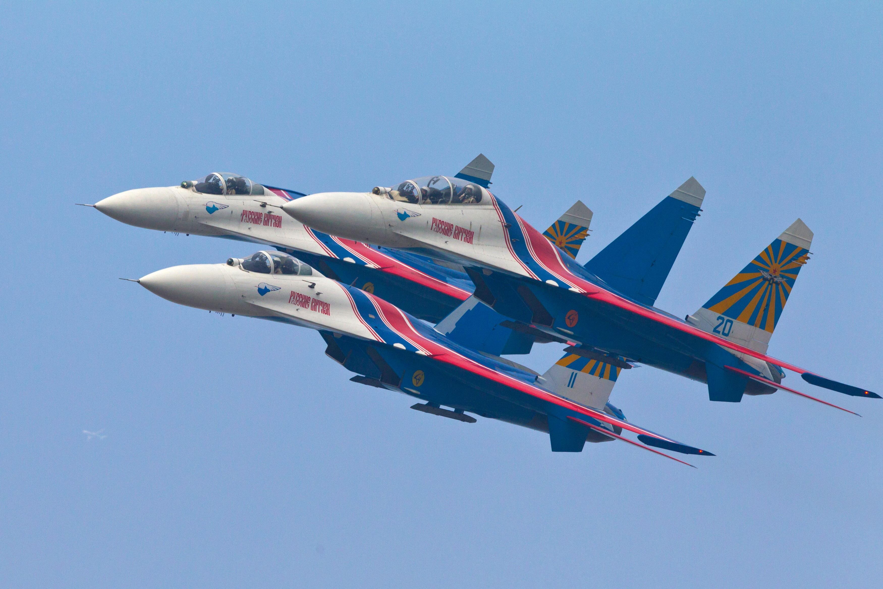 BALTIC SEA - APRIL 12: In this handout photo provided by the U.S. Navy, A Russian Sukhoi Su-24 attack aircraft makes a low altitude pass by USS Donald Cook (DDG 75) on April 12, 2016 in the Baltic Sea. Donald Cook, an Arleigh Burke-class guided-missile destroyer forward deployed to Rota, Spain, is conducting a routine patrol in the U.S. 6th Fleet area of operations in support of U.S. national security interests in Europe. (Photo by U.S. Navy via Getty Images)ZHUHAI, CHINA - NOVEMBER 13: (CHINA OUT) Su-27 jets of the Russian Airforce 'Knigths' Aerobatic team performs air show on November 13, 2014 in Zhuhai, Guangdong province of China. The 10th China International Aviation & Aerospace Exhibition organized by Zhuhai Airshow Co., Ltd. was held on November 11 and it will last to November 16 in Zhuhai. (Photo by VCG/VCG via Getty Images)A Russian Tupolev Tu-95 turboprop-powered strategic bomber flies above the Kremlin in Moscow, on May 7, 2015, during a rehearsal for the Victory Day military parade. A strategic bomber with seven people on board crashed in far eastern Russia on July 14 but its crew apparently managed to parachute out and a search for them was underway, the defence ministry said. AFP PHOTO / ALEXANDER NEMENOV (Photo credit should read ALEXANDER NEMENOV/AFP/Getty Images)A Russian Sukhoi Su-35 bomber lands at the Russian Hmeimim military base in Latakia province, in the northwest of Syria on May 4, 2016.