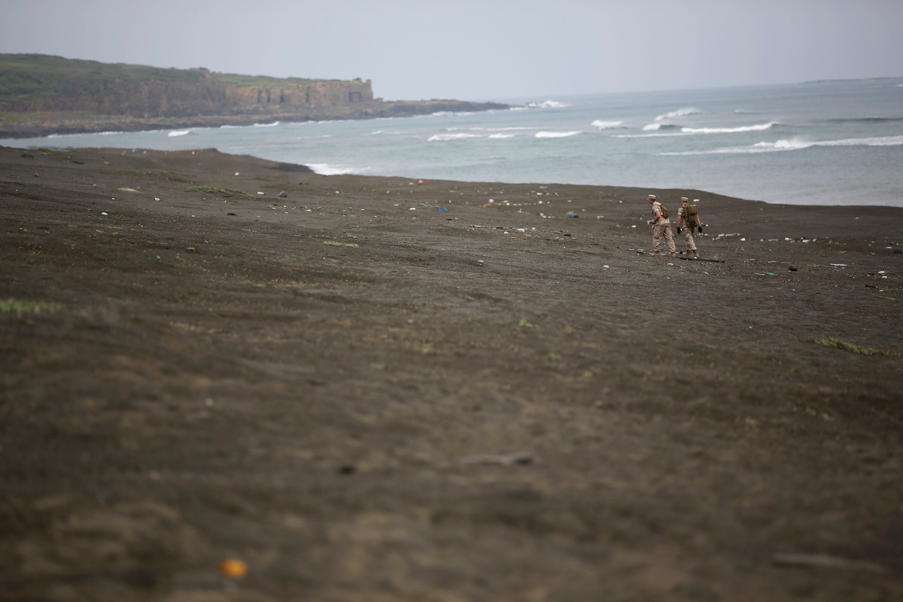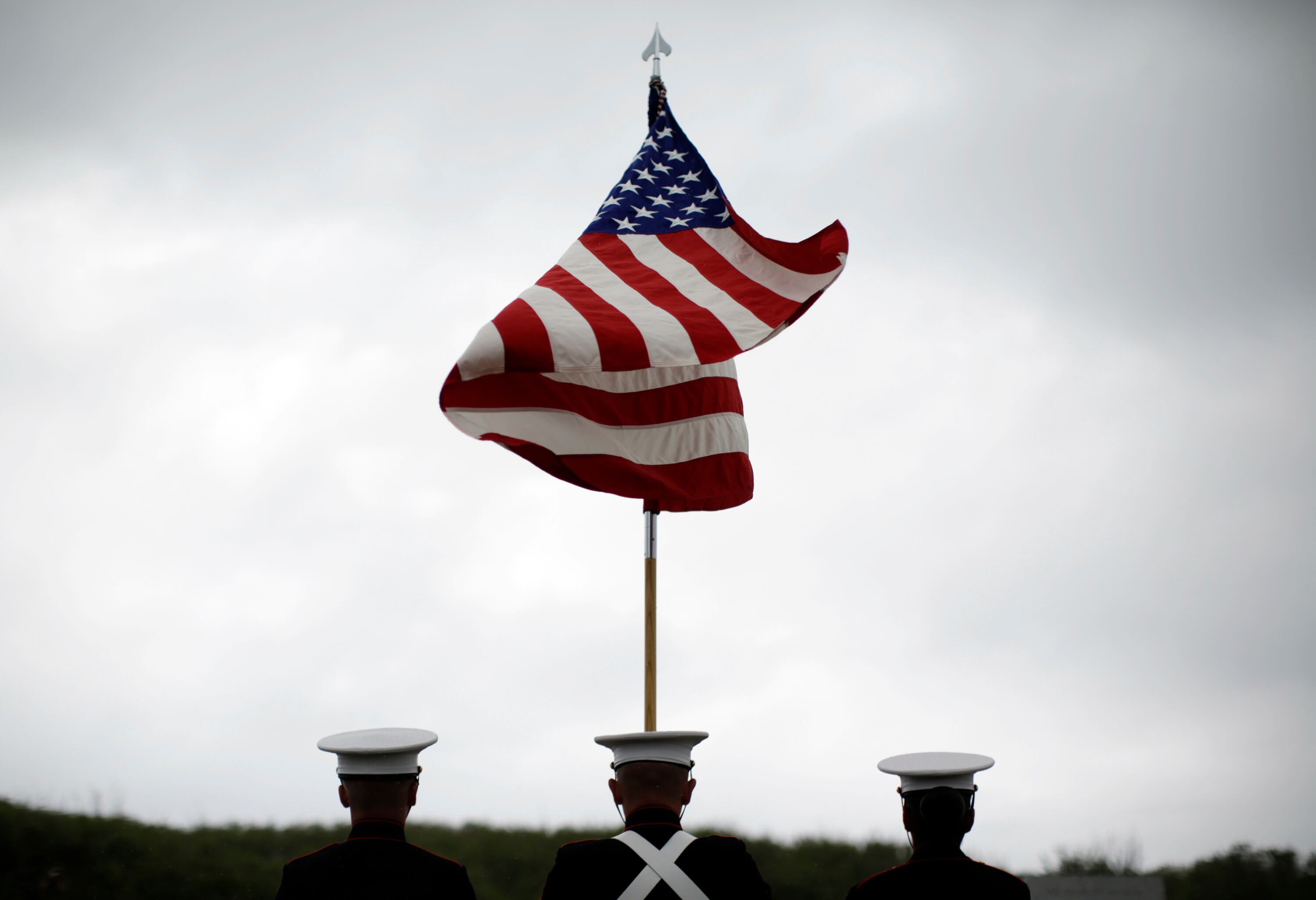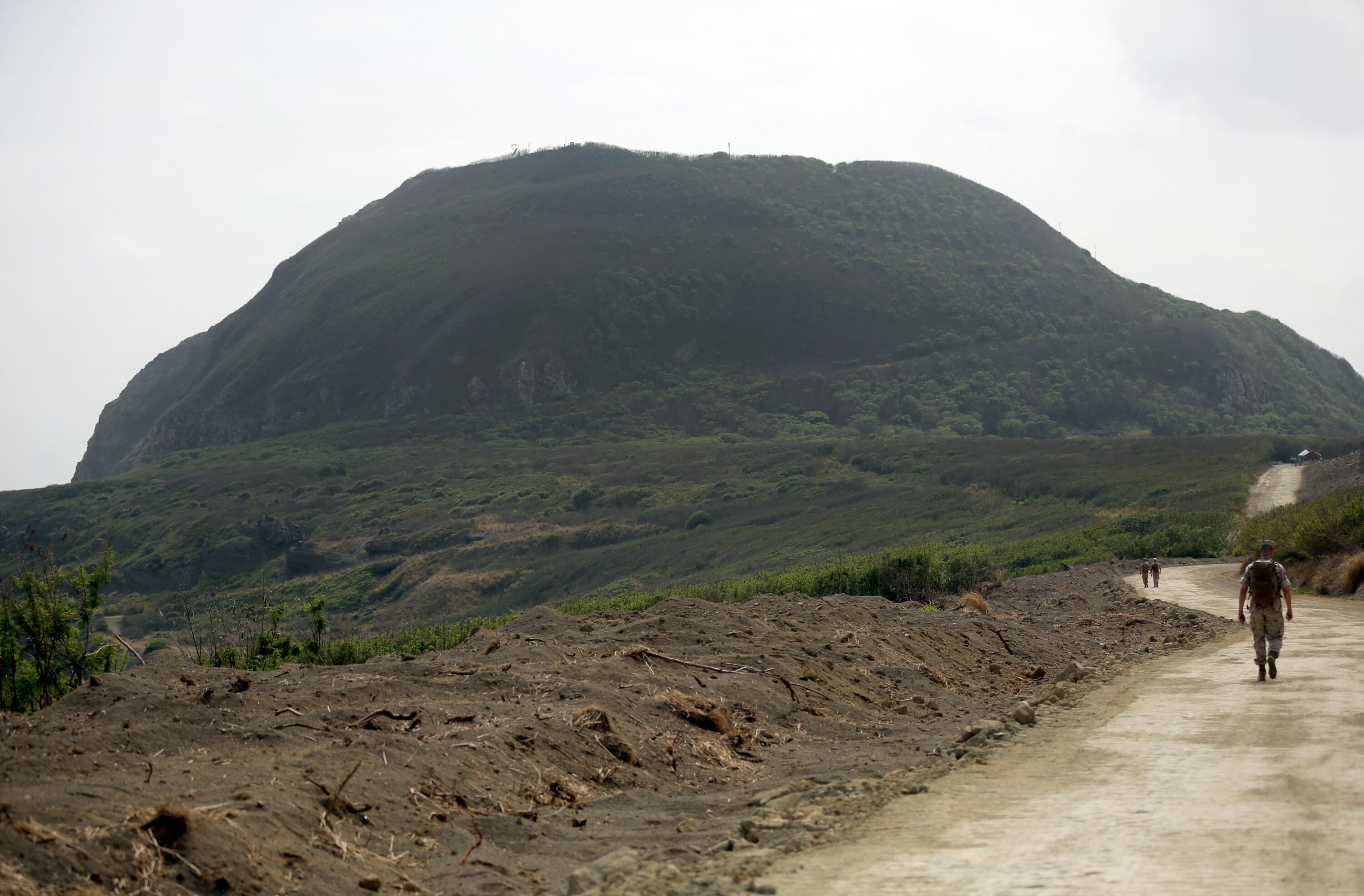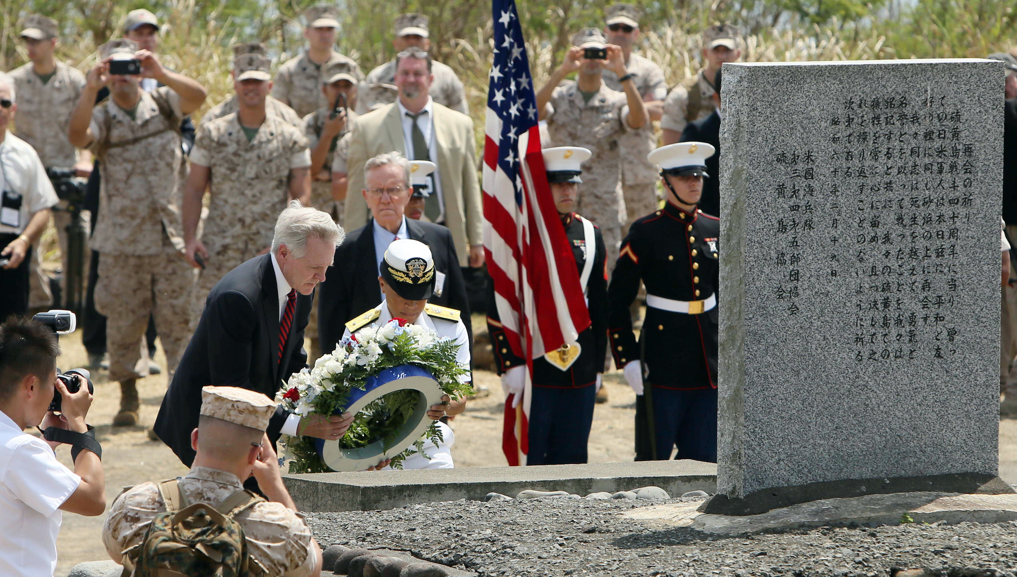 The color guard holds the flag of the U.S. during a ceremony commemorating the 70th anniversary of the Battle of Iwo Jima, now known as Ioto, Japan, Saturday, March 21, 2015. The battle is one of WWII's bloodiest and most iconic battles. (AP Photo/Eugene Hoshiko)Iwo Jima, now known officially as Ioto, is seen from an airplane in Japan, Saturday, March 21, 2015. The U.S. and Japan held the ceremony Saturday to mark the 70th anniversary of one of World War II's bloodiest and most iconic battles. (AP Photo/Eugene Hoshiko)U.S. Marines walk on Invasion Beach near the site of a ceremony commemorating the 70th anniversary of the Battle of Iwo Jima, now known as Ioto, Japan, Saturday, March 21, 2015. The battle is one of WWII's bloodiest and most iconic battles. (AP Photo/Eugene Hoshiko)U.S. Marines walk toward Mt. Suribachi near the site of a ceremony commemorating the 70th anniversary of the Battle of Iwo Jima, now known as Ioto, Japan, Saturday, March 21, 2015. The battle is one of WWII's bloodiest and most iconic battles. (AP Photo/Eugene Hoshiko)U.S. veterans pay respect at the Iwo Jima battle monument during a ceremony commemorating the 70th anniversary of the Battle of Iwo Jima on Iwo Jima, now known officially as Ioto, Japan Saturday, March 21, 2015. (AP Photo/Eugene Hoshiko)A U.S. veteran with uniform attends a ceremony commemorating the 70th anniversary of the Battle of Iwo Jima, now known officially as Ioto, Japan Saturday March 21, 2015. (AP Photo/Eugene Hoshiko)A U.S. veteran is comforted by a U.S. solider at the memorial statue during a ceremony commemorating the 70th anniversary of the Battle of Iwo Jima on Iwo Jima, now known officially as Ioto, Japan Saturday, March 21, 2015. (AP Photo/Eugene Hoshiko)U.S. veterans offer a wreath during a ceremony commemorating the 70th anniversary of the Battle of Iwo Jima on Iwo Jima, now known officially as Ioto, Japan Saturday, March 21, 2015. Dozens of aging U.S. veterans gathered on the tiny, barren island of Iwo Jima on Saturday to mark the 70th anniversary of one of the bloodiest and most iconic battles of World War II.(AP Photo/Japan Pool) JAPAN OUTU.S. Navy Secretary Ray Mabus, left in the middle, offers a wreath during a ceremony commemorating the 70th anniversary of the Battle of Iwo Jima on Iwo Jima, now known officially as Ioto, Japan Saturday, March 21, 2015. Dozens of aging U.S. veterans gathered on the tiny, barren island of Iwo Jima on Saturday to mark the 70th anniversary of one of the bloodiest and most iconic battles of World War II.(AP Photo/Japan Pool) JAPAN OUTJapan's Defense Minister Gen Nakatani, right, and other Japanese officials offer a wreath during a ceremony commemorating the 70th anniversary of the Battle of Iwo Jima on Iwo Jima, now known officially as Ioto, Japan Saturday, March 21, 2015. Dozens of aging U.S. veterans gathered on the tiny, barren island of Iwo Jima on Saturday to mark the 70th anniversary of one of the bloodiest and most iconic battles of World War II.(AP Photo/Japan Pool) JAPAN OUTThe color guard of the United States Marines and Japan Self Defense Force hold the flags of the U.S. and Japan during a ceremony commemorating the 70th anniversary of the Battle of Iwo Jima, now known as Ioto, Japan, Saturday, March 21, 2015. The battle is one of WWII's bloodiest and most iconic battles. (AP Photo/Eugene Hoshiko)