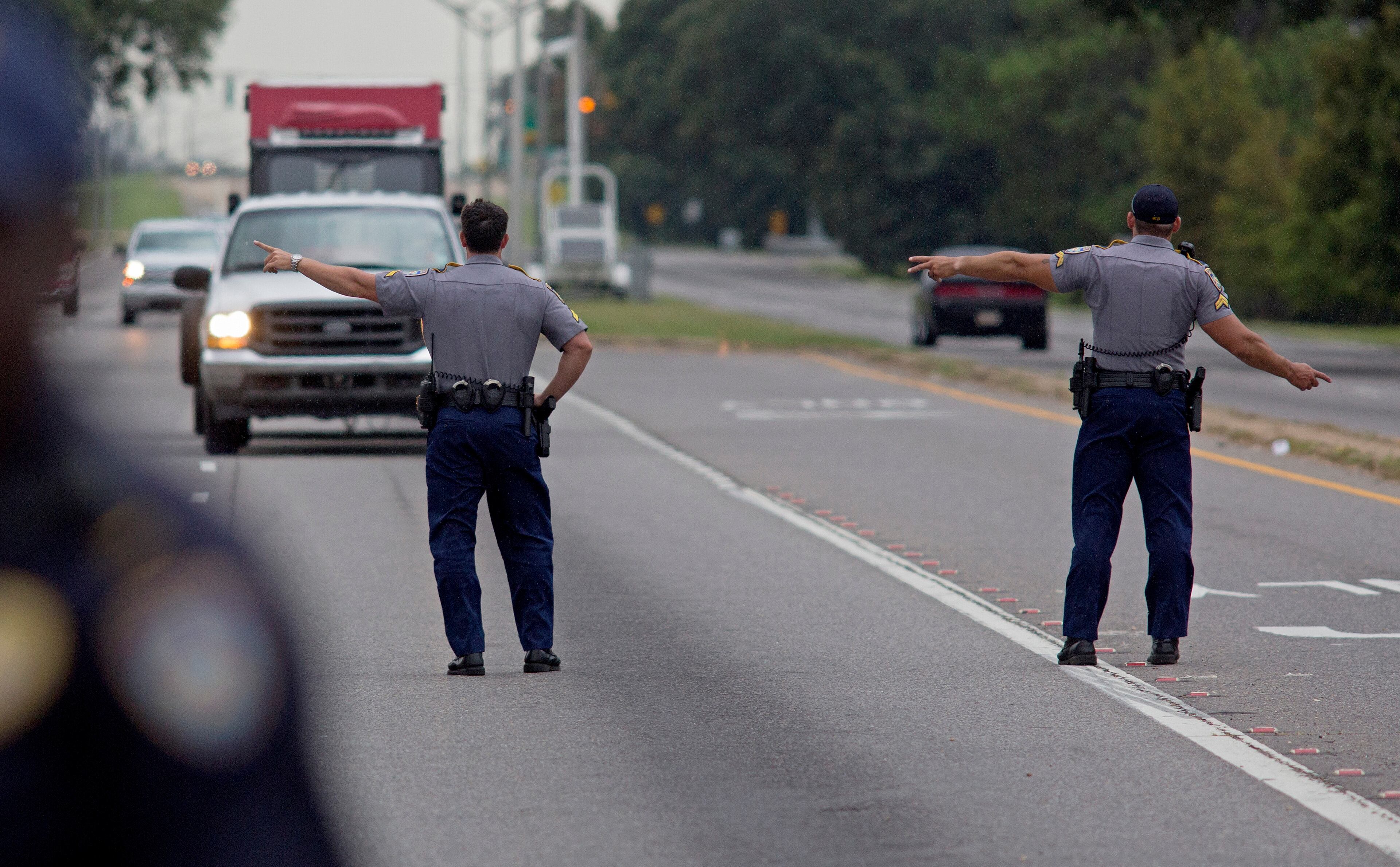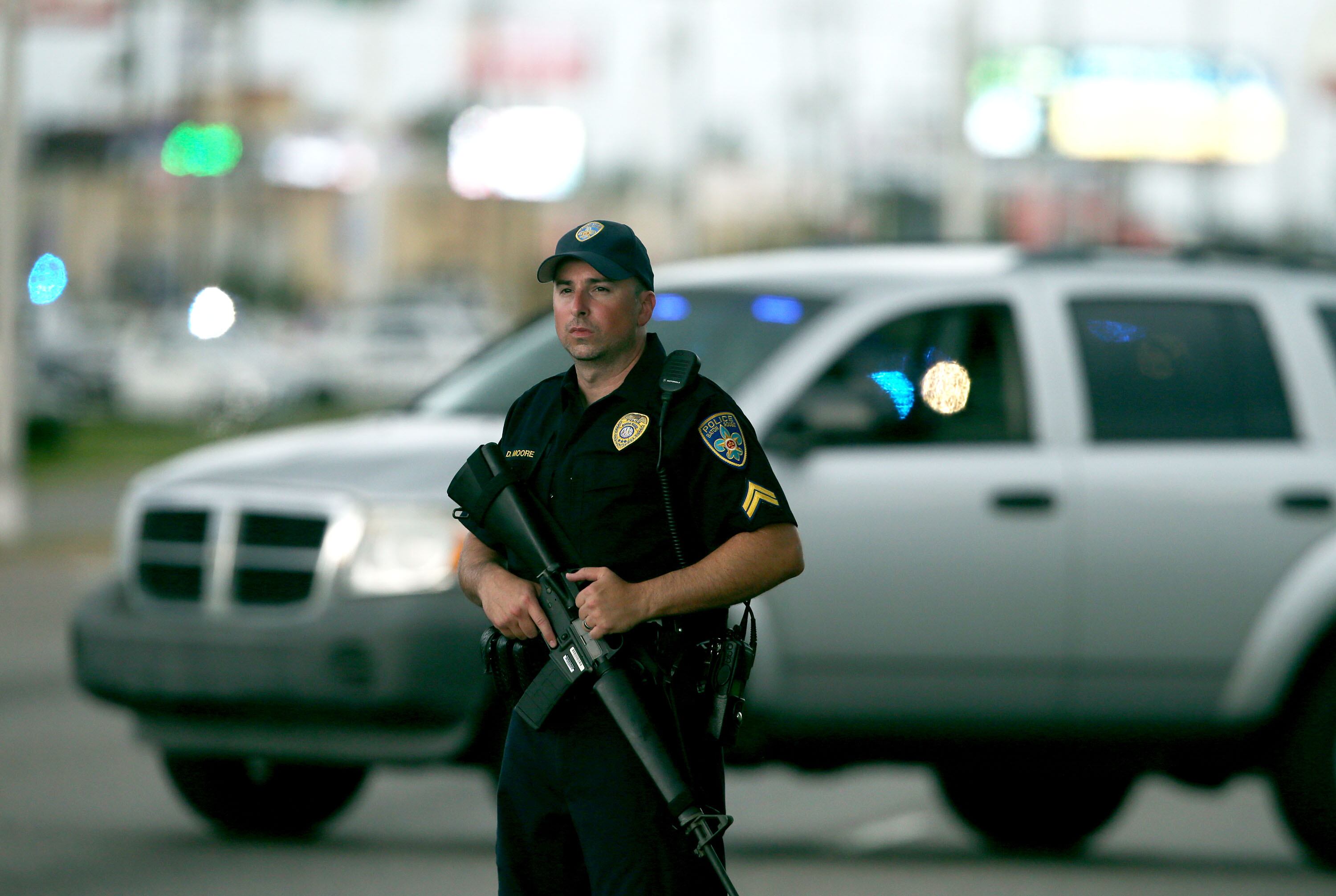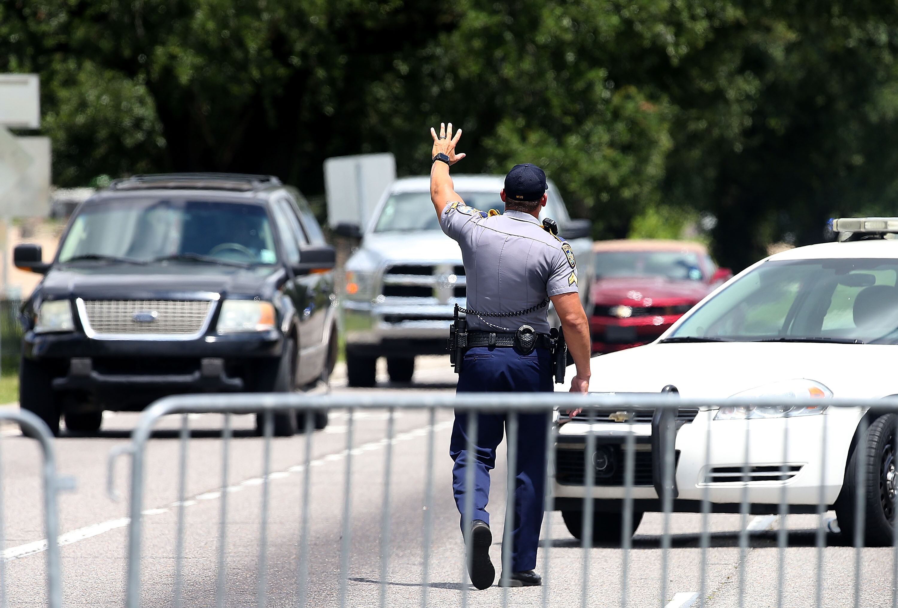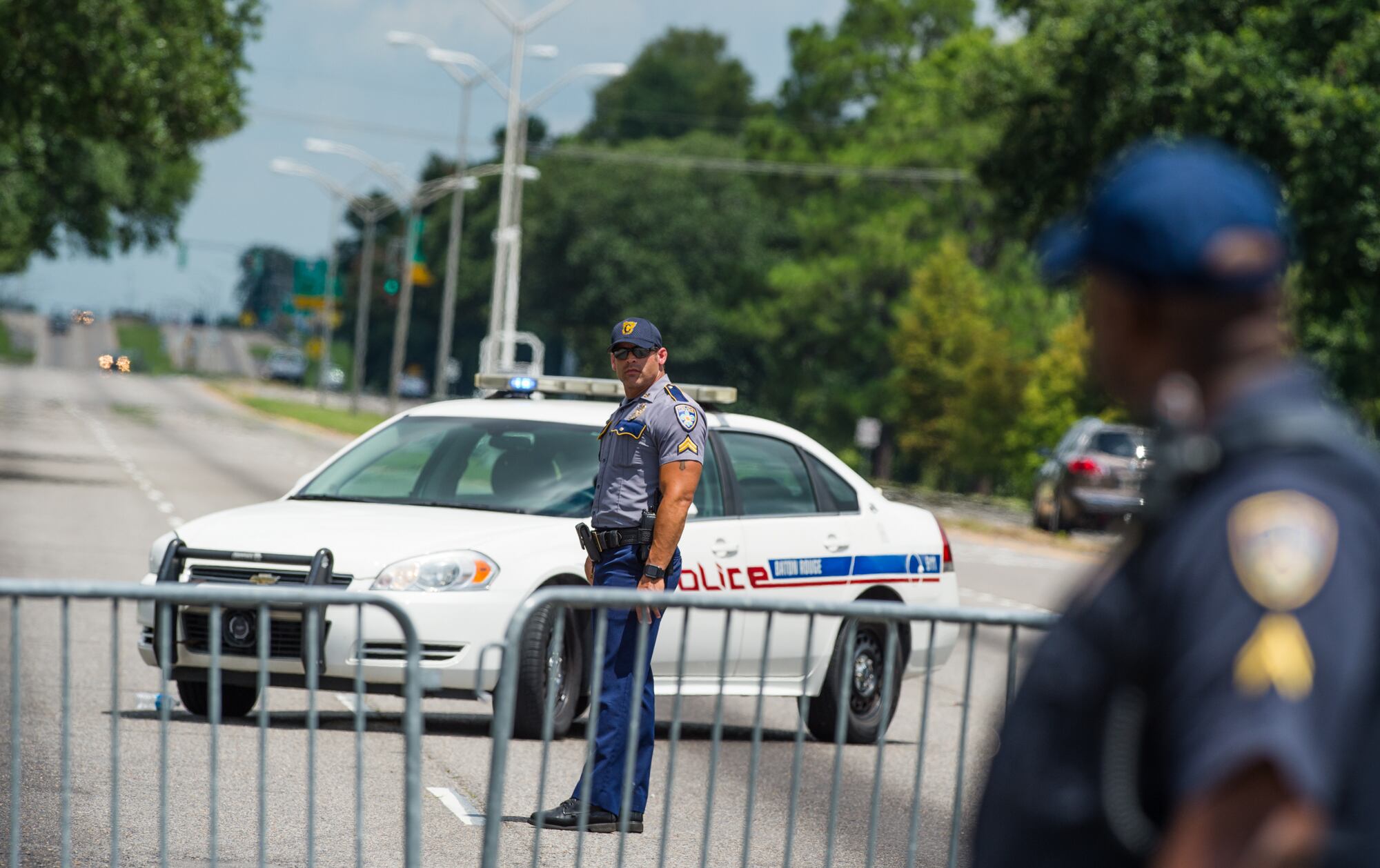 A police helicopter flies over the crime scene where Baton Rouge police were shot, in Baton Rouge, La., Sunday, July 17, 2016. Multiple law enforcement officers were killed and wounded Sunday morning in a shooting near a gas station. (AP Photo/Gerald Herbert)FBI patrol the perimeter of the crime scene in an armored vehicle where Baton Rouge police were shot, in Baton Rouge, La., Sunday, July 17, 2016. Multiple police officers were killed and wounded Sunday morning in a shooting near a gas station in Baton Rouge, less than two weeks after a black man was shot and killed by police here, sparking nightly protests across the city. (AP Photo/Gerald Herbert)BATON ROUGE, LA - JULY 17: Law enforcement officers block the entrance to the Louisiana State Police headquarters after 3 police officers were killed early this morning on July 17, 2016 in Baton Rouge, Louisiana. According to reports, one suspect has been killed by police. (Photo by Sean Gardner/Getty Images)Storm clouds move in as a police helicopter crisscross the sky looking for more possible shooters as Baton Rouge Police respond to a shooting on police officers near Old Hammond Highway and Drusilla Lane in Baton Rouge on Sunday, July 17, 2016. Multiple law enforcement officers were killed and wounded Sunday morning in a shooting near a gas station in Baton Rouge, less than two weeks after a black man was shot and killed by police here, sparking nightly protests across the city. (Chris Grange/NOLA.com The Times-Picayune via AP)Baton Rouge police respond to active shooter near Hammond Aire Shopping Center in Baton Rouge, Sunday, July, 17, 2016. Multiple law enforcement officers were killed and wounded Sunday morning in a shooting near a gas station in Baton Rouge, less than two weeks after a black man was shot and killed by police here, sparking nightly protests across the city. (Scott Clause/The Daily Advertiser via AP)BATON ROUGE, LA - JULY 17: An East Baton Rouge Police officer patrols Airline Hwy after 3 police officers were killed early this morning on July 17, 2016 in Baton Rouge, Louisiana. According to reports, one suspect has been killed while others are still being sought by police. (Photo by Sean Gardner/Getty Images)BATON ROUGE, LA - JULY 17: Baton Rouge Police officers patrol Airline Hwy after 3 police officers were killed early this morning on July 17, 2016 in Baton Rouge, Louisiana. According to reports, one suspect has been killed while others are still being sought by police. (Photo by Sean Gardner/Getty Images)BATON ROUGE, LA - JULY 17: East Baton Rouge Police officers patrol Airline Hwy after 3 police officers were killed early this morning on July 17, 2016 in Baton Rouge, Louisiana. According to reports, one suspect has been killed while others are still being sought by police. (Photo by Sean Gardner/Getty Images)Baton Rouge Police block Airline Highway after police were shot in Baton Rouge, La., Sunday, July 17, 2016. At least three officers are confirmed dead and at least three others wounded after the shooting, a sheriff's office spokeswoman said Sunday. (AP Photo/Max Becherer)BATON ROUGE, LA - JULY 17: An East Baton Rouge Police officer patrols Airline Hwy after 3 police officers were killed early this morning on July 17, 2016 in Baton Rouge, Louisiana. According to reports, one suspect has been killed while others are still being sought by police. (Photo by Sean Gardner/Getty Images)BATON ROUGE, LA - JULY 17: Baton Rouge Police officers patrol Airline Hwy after 3 police officers were killed early this morning on July 17, 2016 in Baton Rouge, Louisiana. According to reports, one suspect has been killed while others are still being sought by police. (Photo by Sean Gardner/Getty Images)BATON ROUGE, LA - JULY 17: East Baton Rouge Police officers patrol Airline Hwy after 3 police officers were killed early this morning on July 17, 2016 in Baton Rouge, Louisiana. According to reports, one suspect has been killed while others are still being sought by police. (Photo by Sean Gardner/Getty Images)State Police block direct traffic off Airline Highway after Baton Rouge police were shot in Baton Rouge, La., on Sunday, July 17, 2016. Multiple law enforcement officers were killed and wounded Sunday morning in a shooting near a gas station in Baton Rouge, less than two weeks after a black man was shot and killed by police here, sparking nightly protests across the city. (AP Photo/Max Becherer)Baton Rouge Police Department Officer Markell Morris holds a bouquet of flowers and a Superman action figure that a citizen left at the Our Lady of the Lake Hospital where the police officers were brought this morning, Sunday, July 17, 2016. Multiple law enforcement officers were killed and wounded Sunday morning in a shooting near a gas station in Baton Rouge. (Henrietta Wildsmith/The Times via AP)Baton Rouge Police stand at a checkpoint at the entrance of Our Lady Of The Lake Medical Center, Sunday, July 17, 2016, in Baton Rouge, La. Multiple law enforcement officers were killed and wounded Sunday morning in a shooting near a gas station in Baton Rouge. (Hilary Scheinuk/The Advocate via AP)Police guard the emergency room entrance of Our Lady Of The Lake Medical Center, where wounded officers were brought, in Baton Rouge, La., Sunday, July 17, 2016. Multiple law enforcement officers were killed and wounded Sunday morning in a shooting near a gas station in Baton Rouge. (AP Photo/Gerald Herbert)Police guard the emergency room entrance of Our Lady Of The Lake Medical Center, where wounded officers were brought, in Baton Rouge, La., Sunday, July 17, 2016. Multiple law enforcement officers were killed and wounded Sunday morning in a shooting near a gas station in Baton Rouge, less than two weeks after a black man was shot and killed by police here, sparking nightly protests across the city. (AP Photo/Gerald Herbert)Baton Rouge police officer Randy Bonaventure takes a bouquet of flowers at the Our Lady of the Lake Hospital where the police off