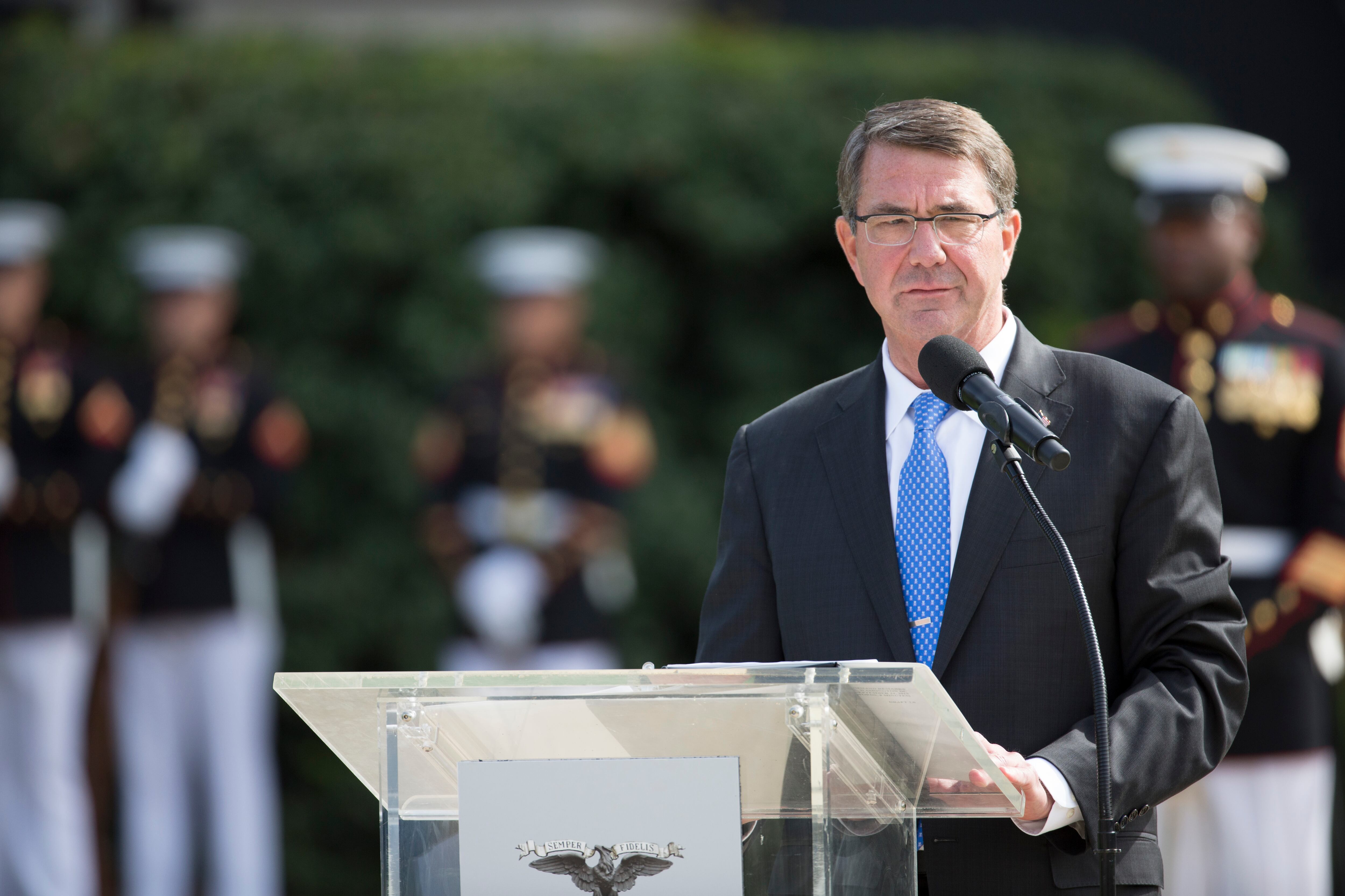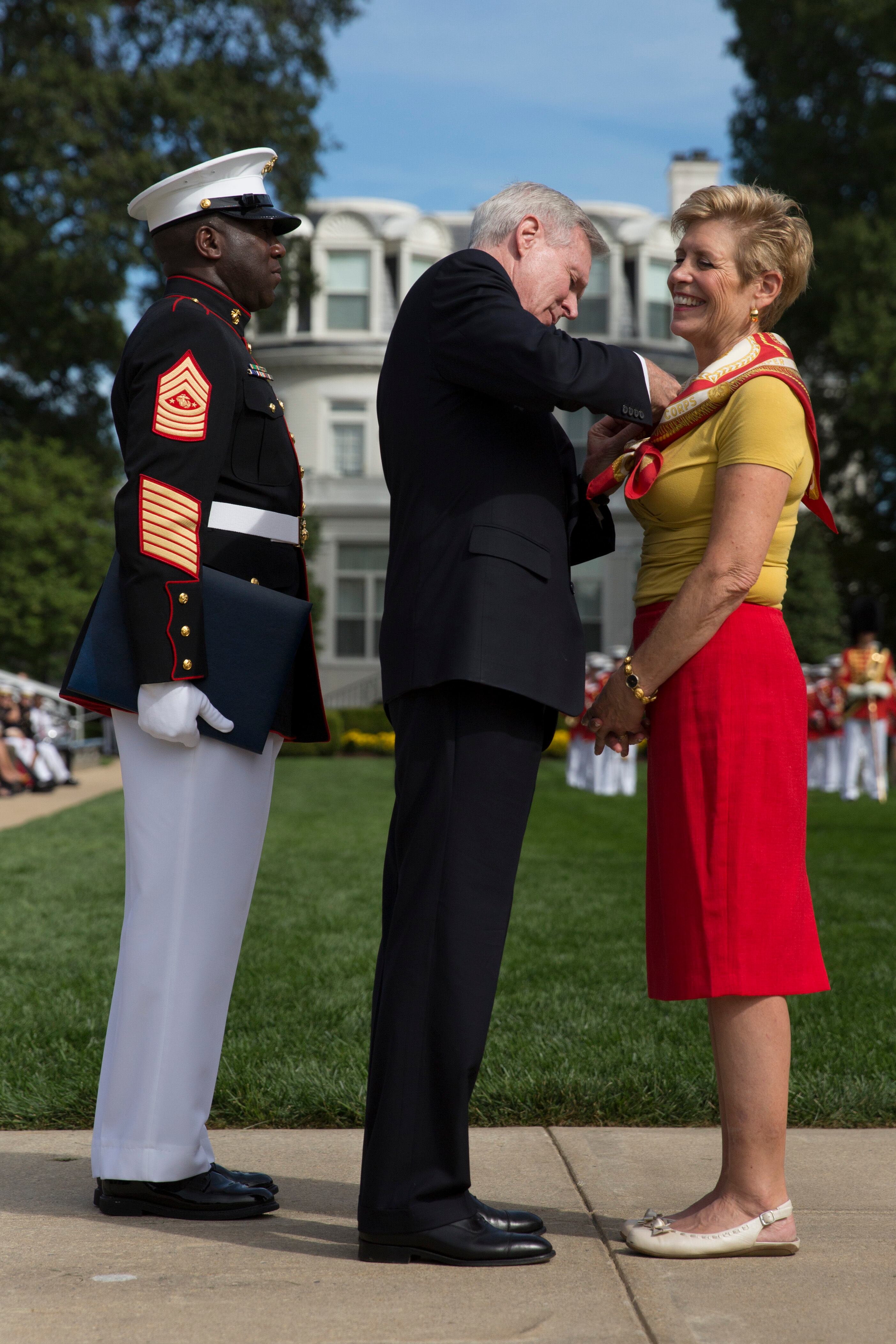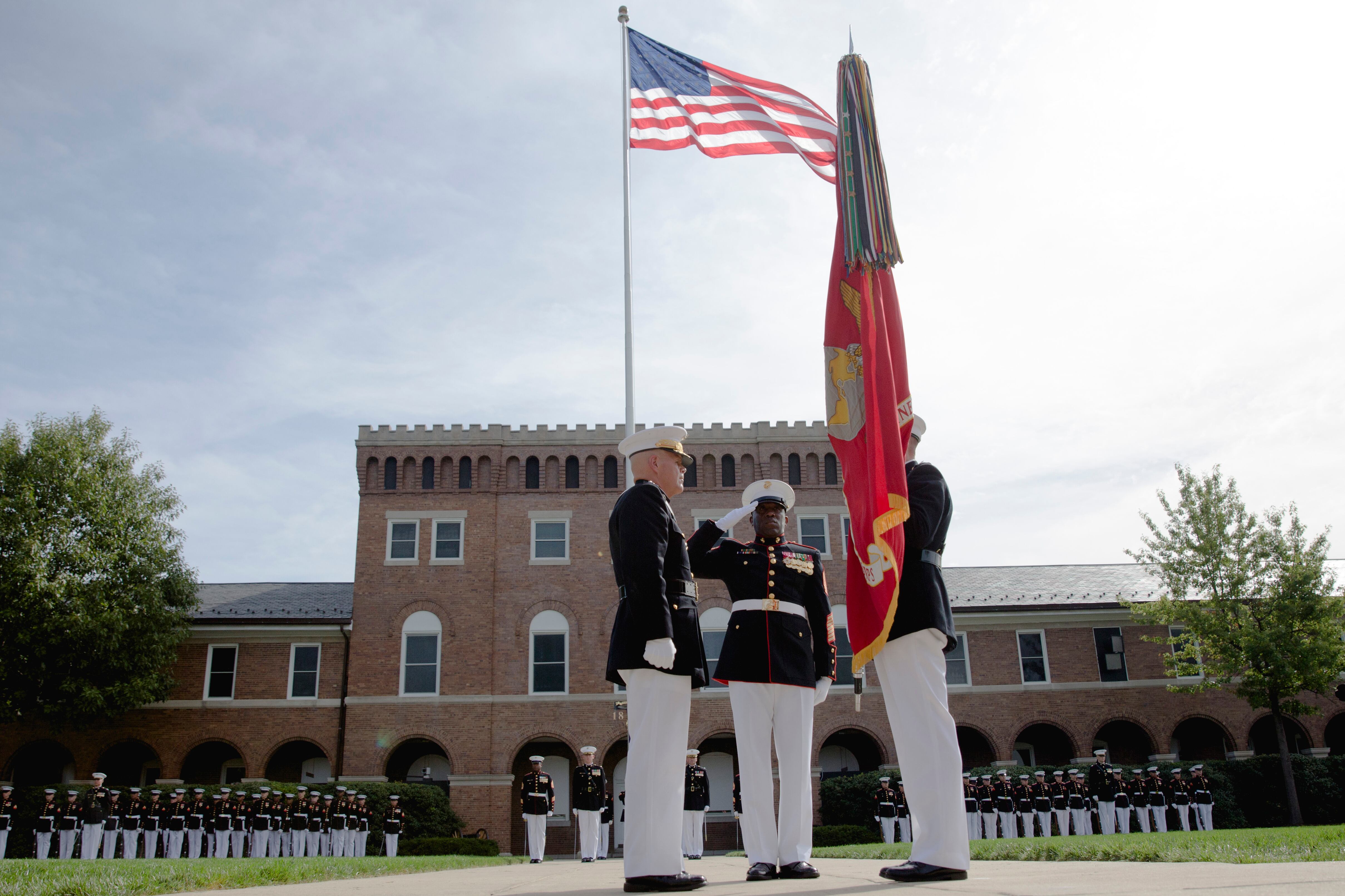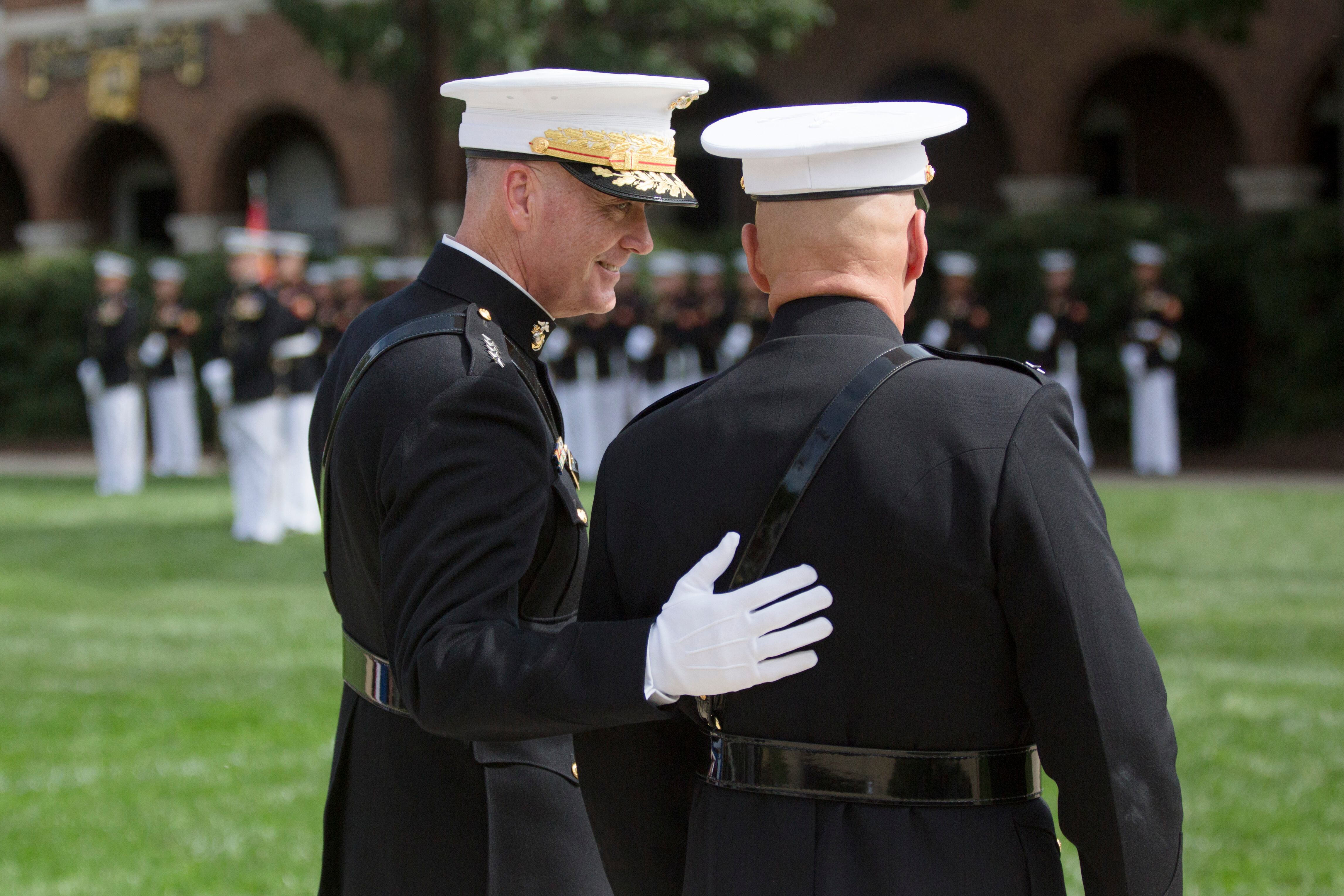 Marine Commandant Gen. Joseph Dunford Jr., the 36th commandant of the Marine Corps (right) transfers the battle colors to Gen. Gen. Robert Neller as Sergeant Major of the Marine Corps Ronald Green at the Commandant's change of command at Marine Corps Barracks Washington, Sept. 24, 2015. (Daniel Woolfolk/ Marine Corps Times)Gen. Joseph Dunford at the Commandant's change of command at Marine Corps Barracks Washington, Sept. 24, 2015. He transferred command to Gen. Robert Neller and will become the Chairman of the Joints Chief of Staff. (Daniel Woolfolk/ Marine Corps Times)Marine Commandant Gen. Joseph Dunford Jr., the 36th commandant of the Marine Corps (right) transfers the battle colors to Gen. Gen. Robert Neller at the Commandant's change of command at Marine Corps Barracks Washington, Sept. 24, 2015. (Daniel Woolfolk/ Marine Corps Times)Gen. Mark A. Welsh III , Chief of Staff of the U.S. Air Force, (center) attended the Commandant's change of command at Marine Corps Barracks Washington, Sept. 24, 2015. (Daniel Woolfolk/ Marine Corps Times)Ellyn Dunford, wife of Gen. Joseph Dunford, received a Distinguished Public Service Award from Navy Secretary Ray Mabus at Marine Corps Barracks Washington, Sept. 24, 2015 for her efforts in helping Marines. (Daniel Woolfolk/ Marine Corps Times)"The Commandant's Own" United States Marine Drum & Bugle Corps played Commandant's change of command at Marine Corps Barracks Washington, Sept. 24, 2015. (Daniel Woolfolk/ Marine Corps Times)Marines take part in the Commandant's change of command at Marine Corps Barracks Washington, Sept. 24, 2015. (Daniel Woolfolk/ Marine Corps Times)"The Commandant's Own" United States Marine Drum & Bugle Corps played Commandant's change of command at Marine Corps Barracks Washington, Sept. 24, 2015. (Daniel Woolfolk/ Marine Corps Times)Marines take part in the Commandant's change of command at Marine Corps Barracks Washington, Sept. 24, 2015. (Daniel Woolfolk/ Marine Corps Times)Defense Secretary Ashton Carter speaks at the Commandant's change of command at Marine Corps Barracks Washington, Sept. 24, 2015. (Daniel Woolfolk/ Marine Corps Times)Navy Secretary Ray Mabus shakes hands with Gen. Joseph Dunford who transferred over his role as commandant to Gen. Robert Neller at Marine Corps Barracks Washington, Sept. 24, 2015. (Daniel Woolfolk/ Marine Corps Times)Gen. Robert Neller at the Commandant's change of command at Marine Corps Barracks Washington, Sept. 24, 2015. (Daniel Woolfolk/ Marine Corps Times)Former commandant of the Marine Corps retired general James Amos greets the outgoing commandant, Gen. Joseph Dunford at the Commandant's change of command at Marine Corps Barracks Washington, Sept. 24, 2015. Dun ford will become the chairman of the Joint Chiefs of Staff. (Daniel Woolfolk/ Marine Corps Times)Members of the Silent Drill Platoon take part in the parade in review at the Commandant's change of command at Marine Corps Barracks Washington, Sept. 24, 2015. (Daniel Woolfolk/ Marine Corps Times)Gen. Joseph Dunford congratulates Gen. Robert Neller at the Commandant's change of command at Marine Corps Barracks Washington, Sept. 24, 2015. Dunford transferred command to Gen. Robert Neller and will become the Chairman of the Joints Chief of Staff. (Daniel Woolfolk/ Marine Corps Times)Members of the Silent Drill Platoon take part in the parade in review at the Commandant's change of command at Marine Corps Barracks Washington, Sept. 24, 2015. (Daniel Woolfolk/ Marine Corps Times)Members of "The Commandant's Own" —the Marine Corps Drum & Bugle Corps take part in the Commandant's change of command at Marine Corps Barracks Washington, Sept. 24, 2015. (Daniel Woolfolk/ Marine Corps Times)