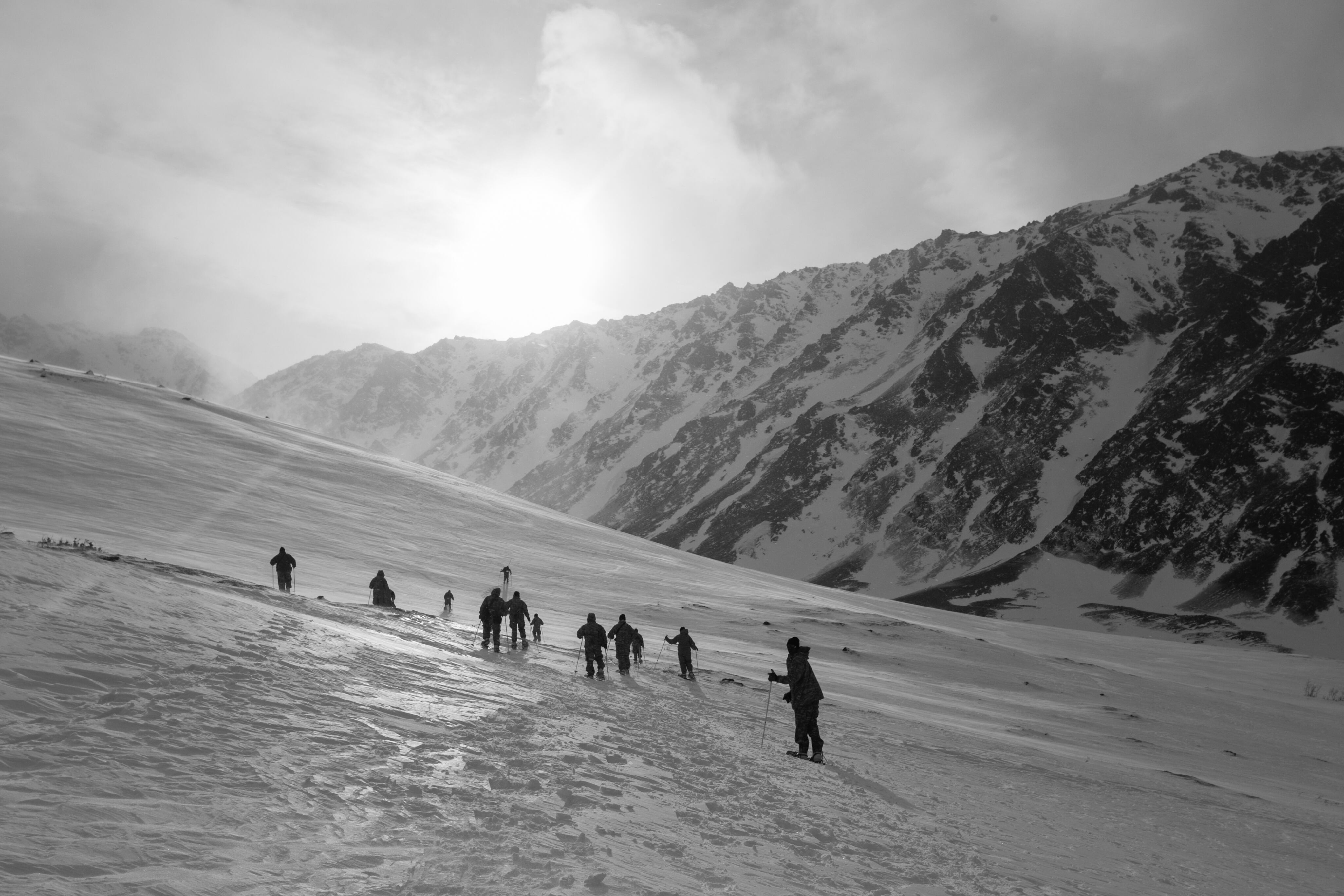 Alaska Army National Guard Soldiers assigned to the 207th Engineer Utility Detachment, Joint Base Elmendorf-Richardson, gather while performing avalanche recognition and awareness training in Snowhawk Valley, Alaska, Feb. 20. Guard members regularly train to respond to natural and man-made disasters in order to provide civil support to communities in conjunction with Defense Support of Civil Authorities. (Alaska Army National Guard photo by Staff Sgt. Jack Carlson III)