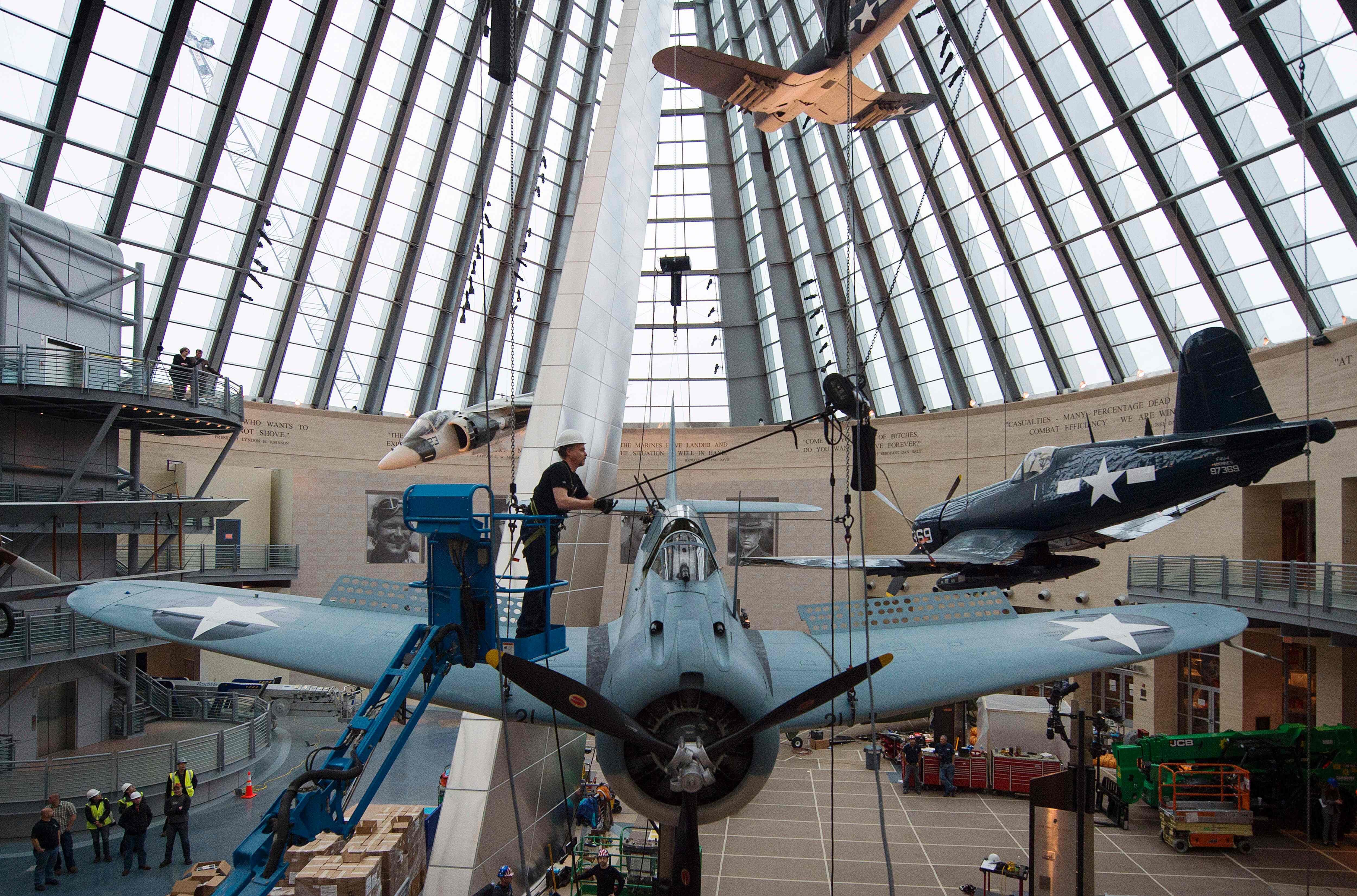 The aircraft transferred from the Marine Corps to the US Navy Carrier Qualification Training Unit in Glenview, Illinois in 1943. It was lost in a training accident that same year when the plane crashed and sank to the bottom of Lake Michigan. A team from the National Museum of Naval Aviation recovered the plane in 1991, 48 years after it crashed. / AFP / JIM WATSONJIM WATSON/AFP/Getty Images160206-N-NT265-412 PHILIPPINE SEA (Feb. 6, 2016) – A Sailor assigned to the forward-deployed Arleigh Burke-class guided-missile destroyer USS Mustin (DDG 89) fires an M240 machine gun during a live-fire exercise. Mustin is on patrol in the 7th Fleet area of operations in support of security and stability in the Indo-Asia Pacific. (U.S. Navy photo by Mass Communication Specialist 2nd Class Christian Senyk/Released)Marine Gen. Joseph F. Dunford Jr., chairman of the Joint Chiefs of Staff, speaks with an instructor at the 25th Infantry Division's Tropic Lightning Academy and Jungle Operations Training Center in Hawaii, Feb. 9th, 2016. The JOTC trains soldiers on survival, communication, navigation, waterborne and patrol base operations, in a jungle environment. DoD Photo by Navy Petty Officer 2nd Class Dominique A. PineiroSoldiers with Alpha Company, 3rd Battalion, 172nd Infantry Regiment, 86th Infantry Brigade Combat Team (Mountain), Vermont Army National Guard, cross country ski at Ethan Allen Firing Range, Jericho, Vt., Feb. 6, 2016. The Soldiers participated in a combination of skiing and live-fire exercises, testing not only their abilities to ski and shoot, but also their ability to shoot under stress with unfamiliar weapons. (U.S. Air National Guard photo by Tech. Sgt. Sarah Mattison)EASTERN COAST OKINAWA (Feb. 7, 2016) - Marines assigned to the 31st Marine Expeditionary Unit (MEU) launch CRRCs from the well deck of amphibious dock landing ship USS Germantown (LSD 42). Germantown is assigned to the Bonhomme Richard Amphibious Ready Group (ARG) and is participating in amphibious integration training (AIT) and a certification exercise (CERTEX) with the embarked 31st MEU. (U.S. Navy photo by Mass Communication Specialist 3rd Class James Vazquez/Released)Soldiers with the 25th Infantry Division patrol the area in a humvee while conducting assaults in a military operations on urban terrain training environment aboard Marine Corps Training Area Bellows, Feb. 5, 2016. The purpose of the training, which served as part of exercise Lightning Forge, a 10-day test of the brigade’s ability to respond at a moment’s notice, was to provide the brigade with an opportunity to test their ability to locate, kill or capture high valued targets while maneuvering in an urban environment. Members of the 25th Infantry Division utilized MCTAB due to its extensive, complex training grounds, which are able to help provide the soldiers with a realistic, high-speed training environment. (U.S. Marine Corps photo by Lance Cpl. Harley Thomas)A former Marine claps as active-duty service members with 2nd Marine Division march in the Division’s 75th anniversary parade in downtown Jacksonville, N.C., Feb. 6, 2016. The celebration serves as a time to remember the Marines and sailors who served and continue to serve in 2nd Marine Division, while thanking the local community for their support. (U.S. Marine Corps photo by Cpl. Joey Mendez/Released)A recovering U.S. veteran rides his custom mountain bike as part of a Ride 2 Recovery program event Feb. 2, 2016, at Blue Diamond, Nev. The program is dedicated to helping wounded and recovering veterans by bringing the veterans together to lift their spirits and even provide custom made bikes for the disabled free of charge. (U.S. Air Force photo/Senior Airman Christian Clausen) Sgt. Maj. of the Army Daniel Dailey speaks to Soldiers at the 10th Mountain Division Sustainment Brigade after running for physical fitness with them Feb. 4, 2016. Dailey made his first trip to 10th Mountain Division and Fort Drum, Feb. 3 and 4.The Coast Guard Ceremonial Honor Guard marches down the streets of New Orleans during the 2016 Krewe of Rex Mardi Gras parade, Feb. 9, 2016. The Coast Guard Ceremonial Honor Guard participates in multiple military events around the country. (U.S. Coast Guard photo by Petty Officer 2nd Class Ryan Tippets)Defense Secretary Ash Carter is greeted by Maj. Gen. Jay Silveria, the U.S. Air Force Warfare Center commander, upon his arrival to Nellis Air Force Base, Nev., Feb. 4, 2016. CarterÕs visit consisted of briefings and meetings with Airmen focused on readiness; and comes a week before President Barack Obama will release his administrationÕs 2017 defense budget. (U.S. Air Force photo/Senior Airman Joshua Kleinholz)
