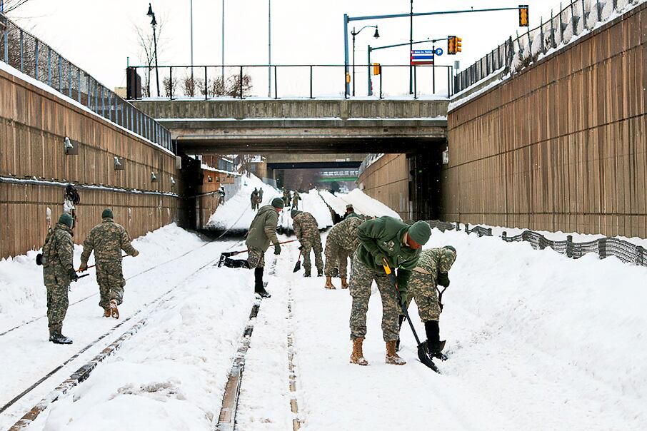 The Thunderbirds Delta Formation flies over the Daytona International Speedway during the Daytona 500 opening ceremony Feb. 22, 2015, in Daytona Beach, Fla. (U.S. Air Force photo by Senior Airman Jason Couillard)Soldiers help the Massachusetts Bay Transportation Authority remove snow at a train stop in Boston, Mass., Feb. 19, 2015. The soldiers are assigned to the Massachusetts National Guard's Company G, 186th Brigade Support Battalion.