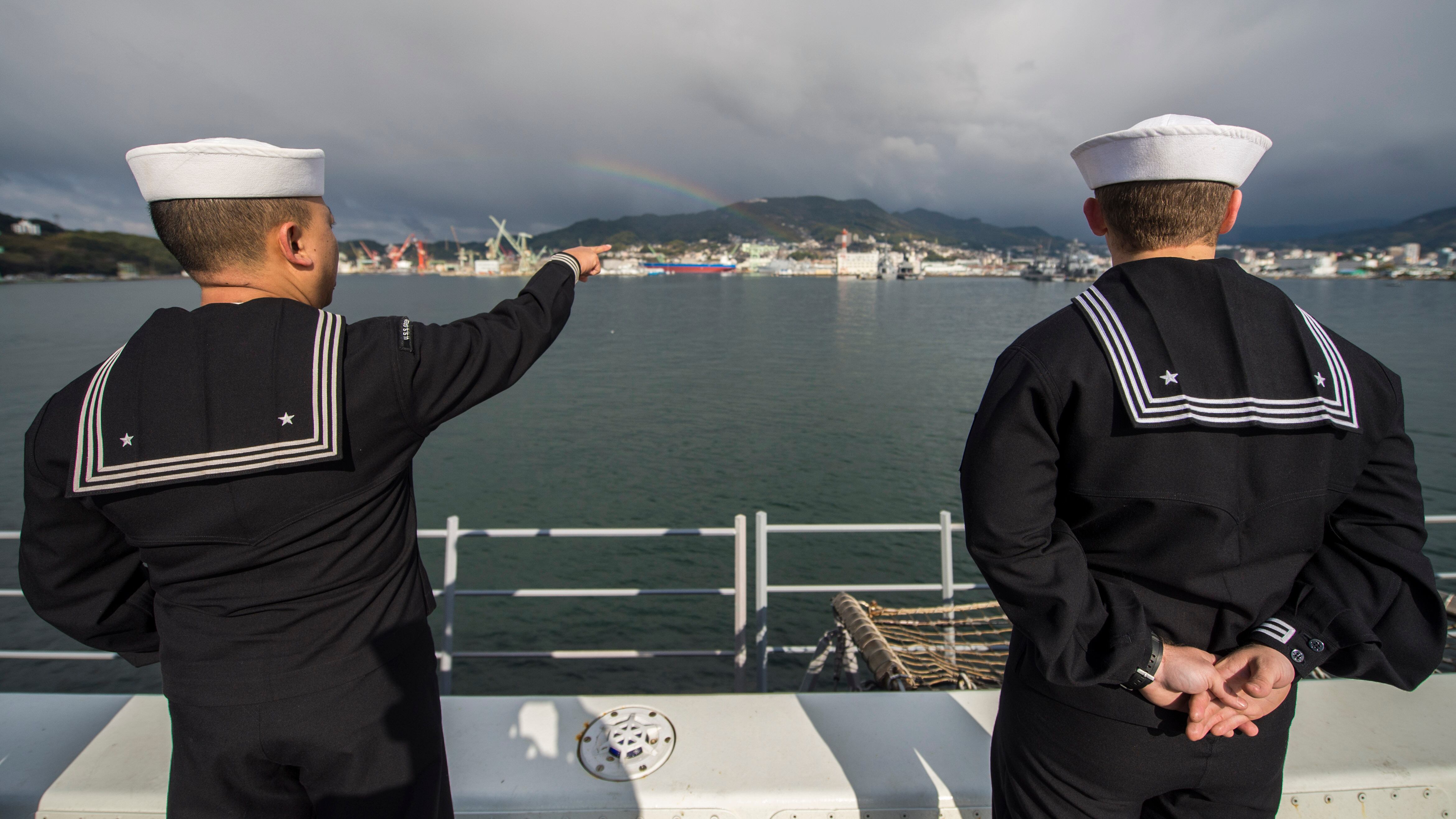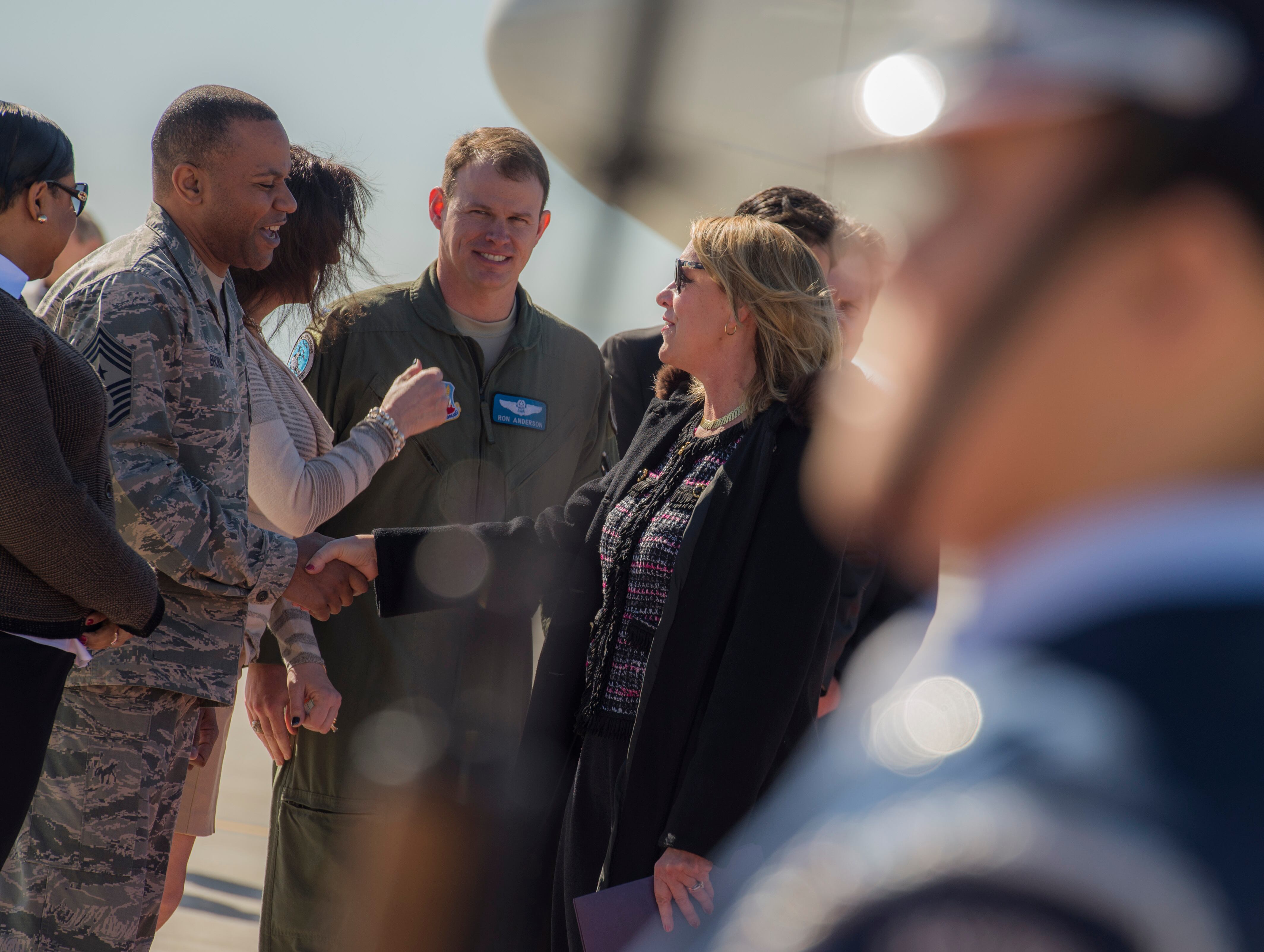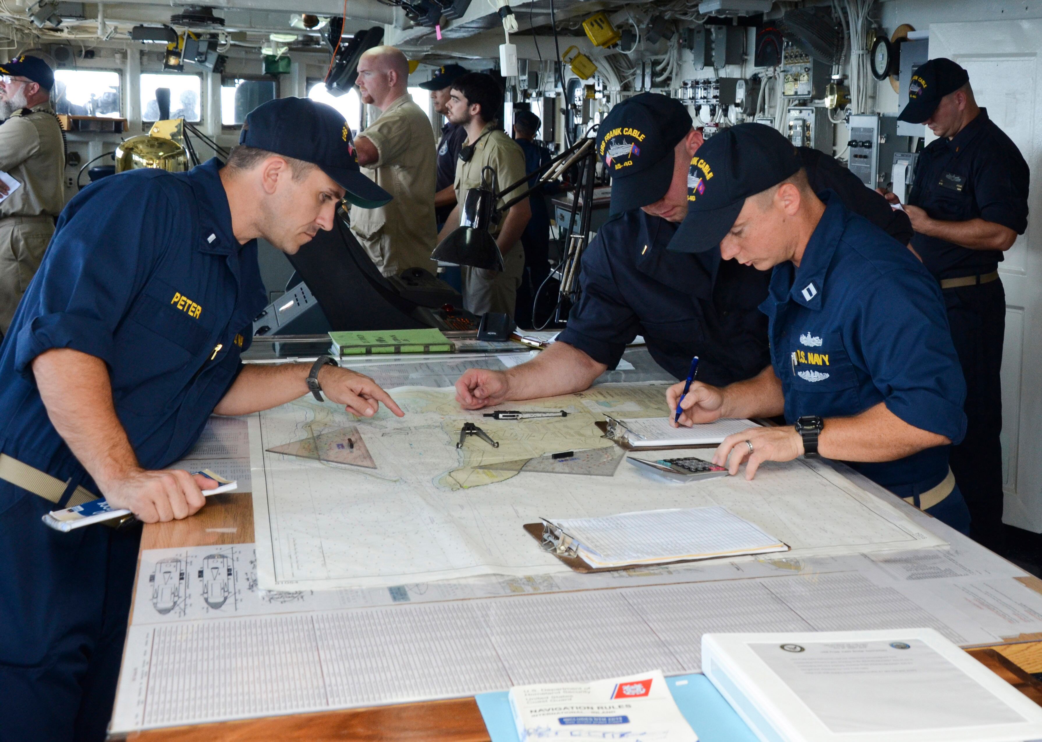 Photo by Rob Curtis, StaffFrom left, Sergeant Major of the Army Daniel Dailey, Chief Master Sergeant of the Air Force James Cody, Sergeant Major of the Marine Corps Ronald Green and Master Chief Petty Officer of the Navy Michael Stevens talk before a hearing about the quality of life in the military with the Military Construction, Veterans Affairs and Related Agencies subcommittee of the House Committee of Appropriations at the Rayburn House Office Building in Washington, D.C., on Wednesday, February 25, 2015. (Mike Morones/Staff)Secretary of the Air Force Deborah Lee James shakes hands with Chief Master Sgt. David Brown upon her arrival at Mountain Home Air Force Base, Idaho, Feb. 18, 2015. During her visit James was the guest speaker at the annual awards ceremony and spent time meeting with the Airmen who accomplish the mission every day. Brown is the 366th Fighter Wing command chief. (U.S. Air Force photo/Airman 1st Class Jessica H. Smith) APRA HARBOR, Guam (Feb. 20, 2015) Lt.j.g. Ryan Peter, left, Ensign Thomas Scoggins and Lt. Eric Moore, officers aboard the submarine tender USS Frank Cable (AS 40), review sea charts while leaving port. Frank Cable, forward deployed to the island of Guam, conducts maintenance and support of submarines and surface vessels deployed to the U.S. 7th Fleet area of responsibility and is currently on a regularly scheduled underway period. (U.S. Navy photo by Mass Communication Specialist Seaman Allen Michael McNair/Released) 150220-N-YM720-321