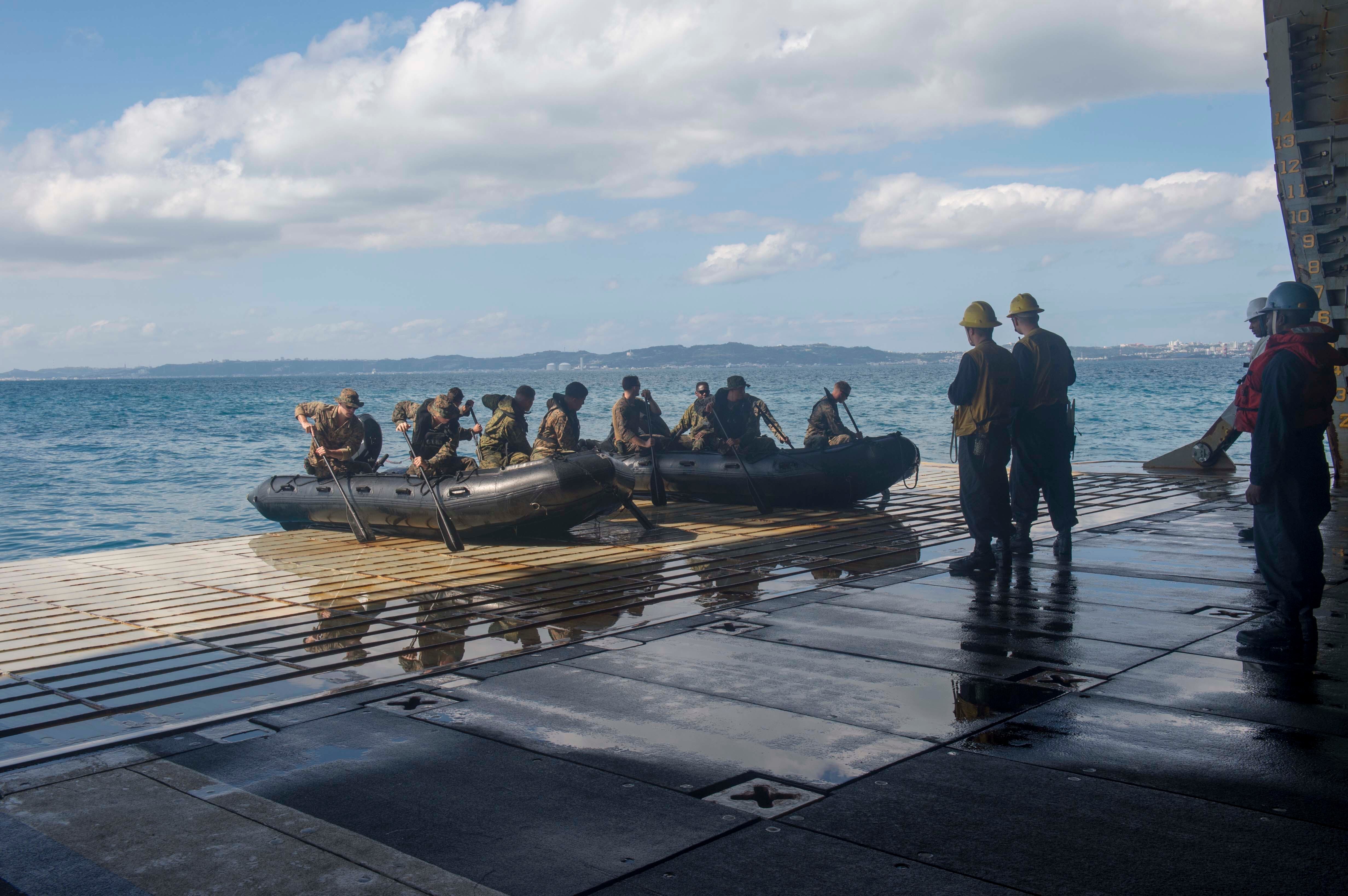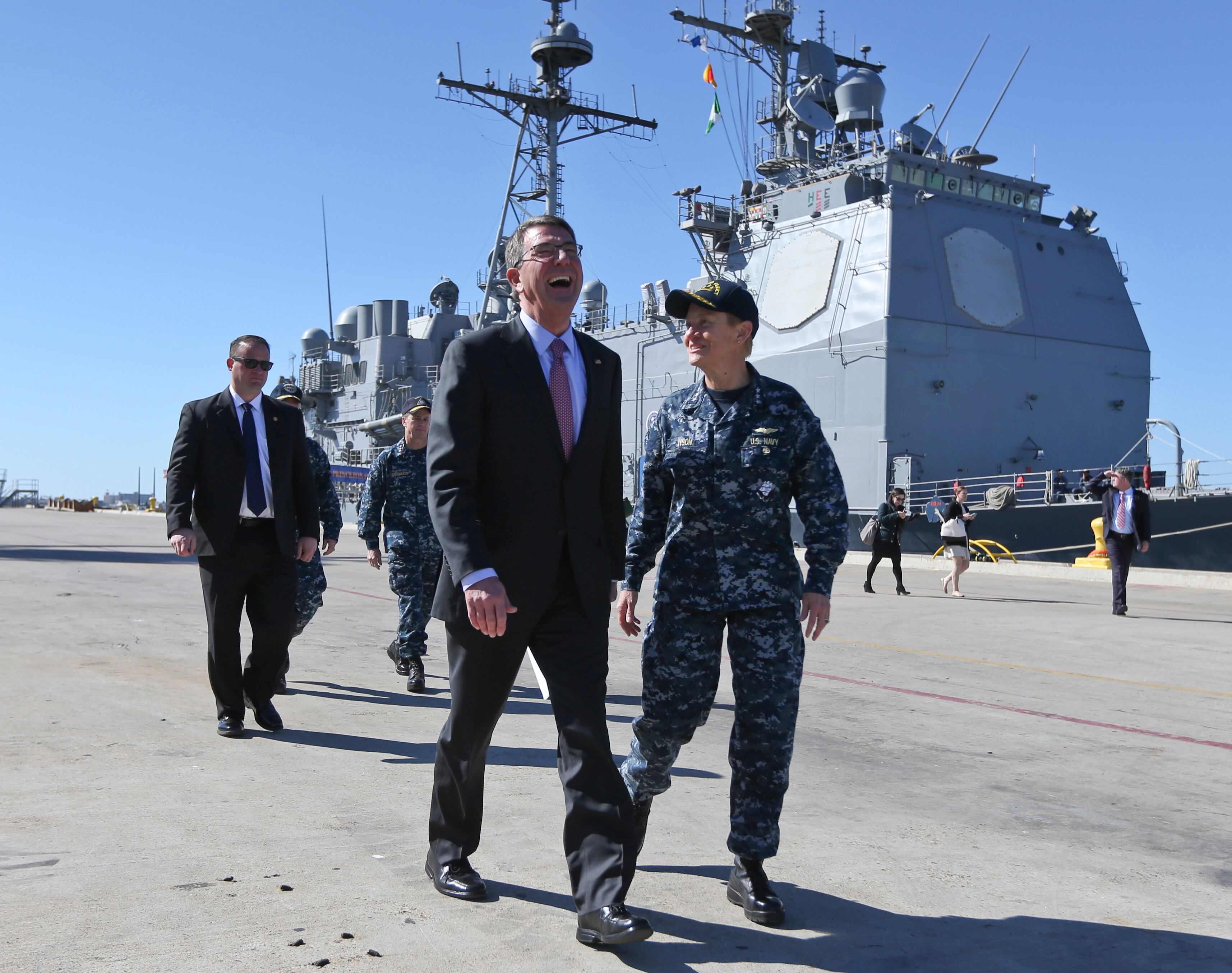 Marines with Alpha Company, 2nd Assault Amphibian Battalion, rush toward a CH-53E Super Stallion with a simulated avalanche victim at the Mountain Warfare Training Center in Bridgeport, Calif., Jan. 20, 2016. Marines across II Marine Expeditionary Force and 2d Marine Expeditionary Brigade took part in the training in preparation for Exercise Cold Response 16 in Norway this March. The exercise will feature military training including maritime, land and air operations that underscore NATO's ability to defend against any threat in any environment. (U.S. Marine Corps photo by Cpl. Dalton A. Precht/released)Japan Ground Self-Defense Force (JGSDF) soldiers conduct fast-roping during helicopter rope suspension training during Exercise Iron Fist 2016 aboard Camp Pendleton, Calif., Feb. 1, 2016. Fast-roping is a specialized insertion method, by which service members move from a hovering helicopter to an objective on the ground by sliding down a rope anchored to the helicopter. Iron Fist 2016 is an annual, bilateral amphibious training event between the USMC and JGSDF. (U.S. Marine Corps photo by Cpl. Xzavior T. McNeal/Released)Marine Corps recruits climb over a wall at Marine Corps Recruit Depot San Diego, Jan. 25, 2016. Drill instructors monitored the recruitsÕ progress to make sure they were maneuvering over the obstacle correctly. Marine Corps photo by Lance Cpl. Angelica I. Annastas A U.S. Air Force F-16 Fighting Falcon from the 18th Aggressor Squadron at Eielson Air Force Base, Alaska, flies in support of Forceful Tiger Jan. 28, 2016, near Okinawa, Japan. The 18th AGRS, which opened Aug. 24, 2007, provides challenging, yet realistic threat replication training in order to prepare Air Force, joint and allied aircrews for potential aerial combat. (U.S. Air Force photo by Staff Sgt. Maeson L. Elleman)Sgt. Maj. of the Army Daniel A. Dailey speaks to Soldiers from Company A, 1st Battalion, 327th Infantry Regiment, 1st Brigade Combat Team, 101st Airborne Division (Air Assault), following a live fire exercise at Fort Campbell, Ky., Jan. 28, 2016. Dailey gave the infantry Soldiers feedback about their training and encouraged them to attend Ranger School. (U.S. Army photo by Sgt. William White, 101st Airborne Division Public Affairs)160131-N-IK388-012 NAKAGUSUKU BAY, Japan (Jan.31, 2016) – Sailors launch combat rubber raiding crafts (CRRC) from the edge of the well deck of amphibious assault ship USS Bonhomme Richard (LHD 6) during an amphibious warfare (AMW) well deck certification. Bonhomme Richard is the lead ship of the Bonhomme Richard Amphibious Ready Group and is forward-deployed in the U.S. 7th Fleet area of operation. (U.S. Navy photo by Mass Communication Specialist 2nd Class Stacy M. Atkins Ricks /Released)Secretary of Defense Ashton Carter has a laugh while walking with Vice-Admiral Nora Tyson of the Third Fleet after touring several Navy ships at the San Diego Naval Base Wednesday, Feb. 3, 2016, in San Diego. (AP Photo/Lenny Ignelzi)U.S. Soldiers of 1st Battalion, 4th Infantry Regiment, role-playing as enemy combatants, return fire while conducting a simulated attack during exercise Allied Spirit IV at the U.S. Army’s Joint Multinational Readiness Center in Hohenfels Training Area, Germany, Feb. 2, 2016. Exercise Allied Spirit IV is a U.S. Army Europe-directed, 7th Army Joint Multinational Training Command-conducted multinational exercise that is designed to prepare forces in Europe to operate together by exercising tactical interoperability and testing secure communications within NATO Alliance members and partner nations. (U.S. Army photo by Sgt. Matthew Hulett/Released)SASEBO, Japan (Feb. 4, 2016) Sailors prepare to combat a simulated fire during a damage control drill aboard the amphibious transport dock ship USS Green Bay (LPD 20). Green Bay is attached to the Bonhomme Richard Amphibious Ready Group (ARG) and is currently in a selective restricted availability (SRA). (U.S. Navy photo by Mass Communication Specialist 2nd Class Chris Williamson/Released)U.S. Army soldiers stand guard at Taesungdong freedom village near the border village of Panmunjom in Paju, South Korea, Thursday, Feb. 4, 2016. South Korea and Japan vowed to shoot down any debris that falls on their territories from a long-range rocket that North Korea plans to fire this month, with Seoul saying Thursday that it has detected launch preparations by Pyongyang. (AP Photo/Ahn Young-joon)A C-2A Greyhound launches from the flight deck of the aircraft carrier USS Dwight D. Eisenhower in the Atlantic Ocean, Jan. 31, 2016. The Eisenhower is preparing for an inspection and upcoming carrier qualifications. Navy photo by Petty Officer 3rd Class Anderson W. Branch Airman 1st Class Elijah Afraid of Lightening, 4th Equipment Maintenance Squadron aircraft structural maintenance journeyman, removes mission oriented protective posture gear from Airman 1st Class Benjamin Schaab, 4th EMS aircraft structural maintenance journeyman, Jan. 29, 2016, at Seymour Johnson Air Force Base, N.C. As part of exercise Coronet Warrior 16-01, the Airmen demonstrated their ability to survive and operate in a chemical environment for wing inspection team members. (Air Force photo/Staff Sgt. Chuck Broadway)