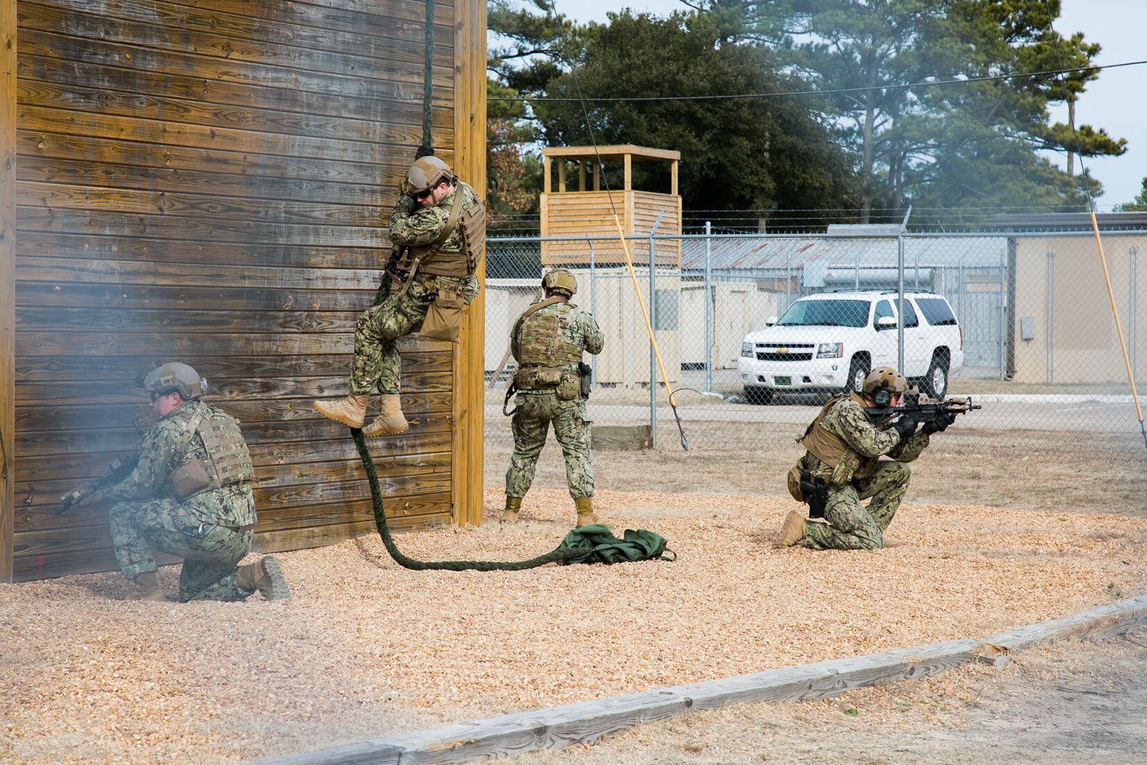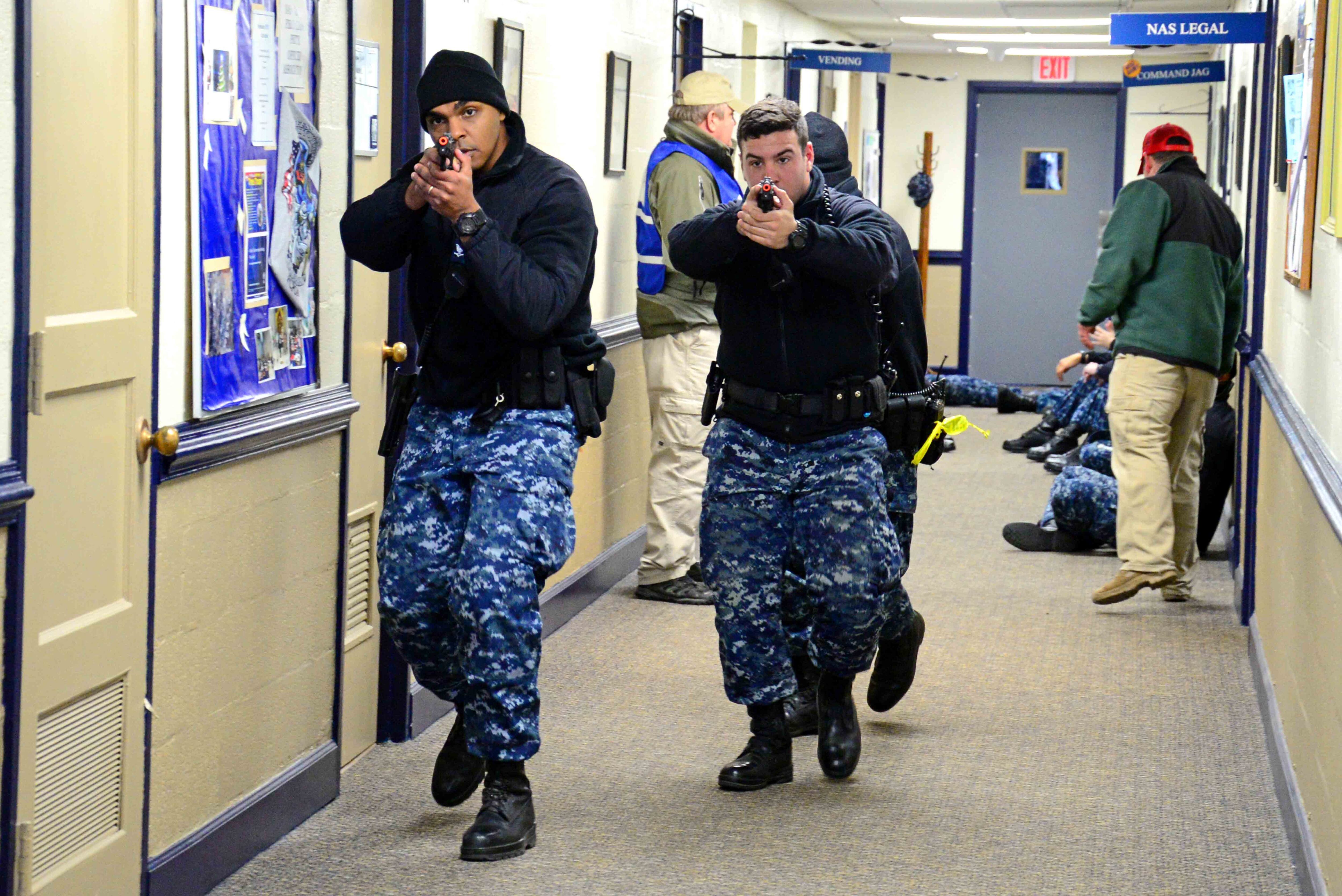 https://plus.google.comExplosive Ordnance Disposal Technicians fast rope from a tower during a training evolution at Joint Expeditionary Base Little Creek-Fort Story Jan. 29. Navy EOD is the worlds premier combat force for countering explosive hazards engaged in warfighting in every theater, providing capable and ready forces to the Maritime, Joint and Land Component Commanders from the United States and forward deployed locations around the globe. (U.S. Navy photo by Mass Communication Specialist 2nd Class Randy Savarese/Released)VIRGINIA BEACH, Va. (Feb. 3, 2015) Master-at-Arms 3rd Class Wilkyns Nova and Master-at-Arms Seaman Michael Angelo clear a hallway in response to an active shooter drill at Naval Air Station Oceana as part of Exercise Solid Curtain-Citadel Shield 2015 (SC-CS15). SC-CS15 is the Navys largest annual force protection exercise designed to test the services security forces to respond to threats to installations and units. (U.S. Navy photo by Mass Communication Specialist 2nd Class Alysia R. Hernandez/Released) 150203-N-IS680-215