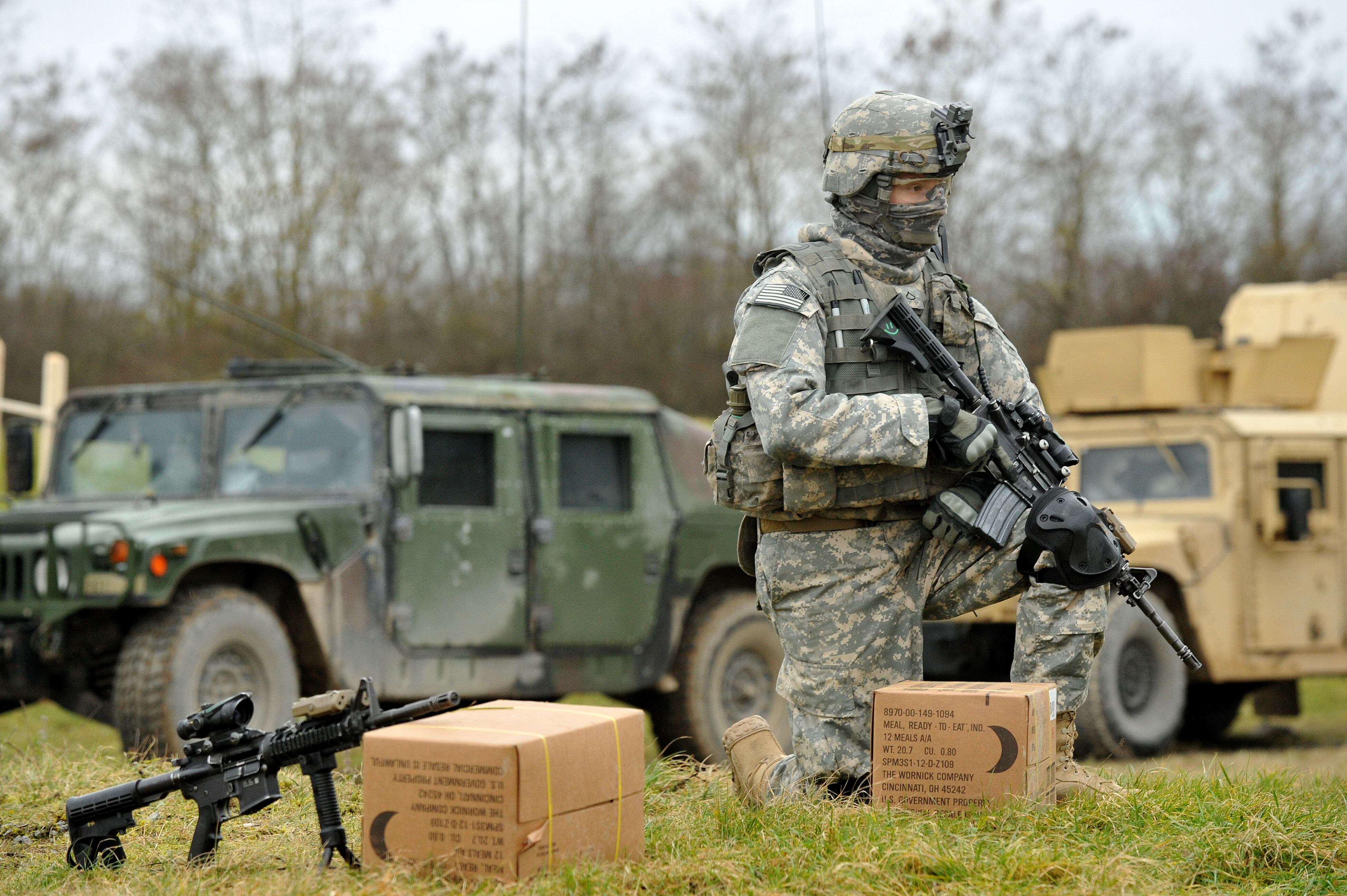 U.S. Army photo by Sgt. 1st Class David WheelerU.S. Army paratrooper Pvt. James Lemke, assigned to 1st Squadron, 91st Cavalry Regiment, 173rd Airborne Brigade, takes a knee Jan. 28, 2015 during weapons qualification at the Infantry Training Area in Hammelburg, Germany. Paratroopers from the brigade combined with allied troops from the German Armed Forces United Nations Training Centre for a two-day exercise. (U.S. Army photo by Visual Information Specialist Markus Rauchenberger/released)Marines, assigned to Battalion Landing Team (BLT) 2/4 of the 31st Marine Expeditionary Unit (31st MEU), prepare to launch combat rubber raiding craft (CCRC) from the well-deck of the forward-deployed amphibious assault ship USS Bonhomme Richard (LHD 6). Bonhomme Richard is currently deployed in the U.S. 7th Fleet area of operations. (U.S. Navy photo by Mass Communication Specialist 3rd Class Kevin V. Cunningham)U.S. Marines with 1st Battalion, 4th Marines, Camp Pendleton, Calif., prepare to advance on an objective at a training event Feb. 1, 2015, during Integrated Training Exercise 2-15 at Twentynine Palms Marine Corps Air Ground Combat Center (MCAGCC), Calif. MCAGCC conducts relevant live-fire combined arms training, urban operations, and Joint/Coalition level integration training that promotes operational forces readiness. (U.S. Air Force photo by Master Sgt. Donald R. Allen/Released)SAN DIEGO (Feb. 3, 2015) Steelworker 1st Class Honer Villanueva, assigned to Naval Mobile Construction Battalion (NMCB) 3, cuts rebar beams with an oxygen acetylene torch during a seaplane ramp construction project. Seaplanes had heavy use around Coronado, Calif. during World War II and Underwater Construction Team (UTC) 2 is rebuilding the ramp for future operations. (U.S. Navy photo by Mass Communication Specialist 2nd Class Mark El-Rayes/Released) 150203-N-TQ272-039
