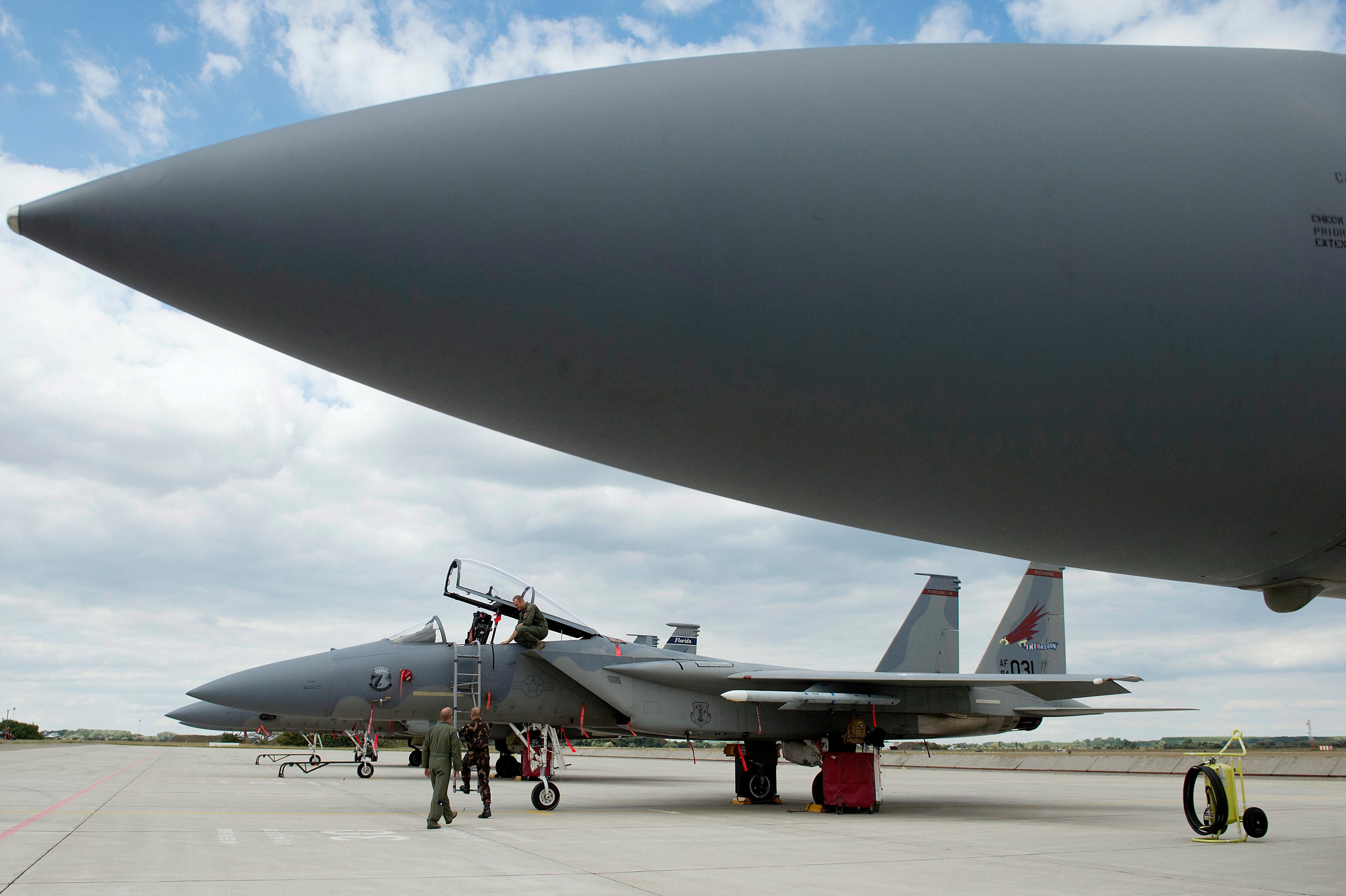 South Korean soldiers play the roles of both South Korean forces and invading North Korean soldiers during a re-enactment of the 1950 battle of Nakdong River to mark the 65th anniversary at the town of Waegwan in Chilgok county on September 10, 2015. The Korean peninsula is the world's last Cold War frontier as Stalinst North Korea and pro-Western South Korea have been technically at war since the 1950-53 Korean War. AFP PHOTO / JUNG YEON-JEJUNG YEON-JE/AFP/Getty ImagesArmy Reserve Drill Sergeant of the Year contestant, Staff Sgt. Russell Vidler, 98th Training Division (IET), leaps over the high wall on the Fit to Win obstacle course on the third day of the four-day TRADOC Drill Sergeant of the Year competition held at Fort Jackson, S.C., Sept. 7-10, 2015. Vidler is in a head-to-head competition with Staff Sgt. Mark Mercer, 95th Training Division (IET), for the title of Army Reserve's top drill sergeant. (U.S. Army photo by Sgt. 1st Class Brian Hamilton)U.S. Air Force F-16 Fighting Falcons from the 408th Fighter Squadron, Spangdahlem Air Base, Germany conduct aerial refueling with a KC-135 Stratotanker from the 100th Air Refueling Wing, RAF Mildenhall Air Base, England during a training sortie Sept. 9, 2015, over the United Kingdom. (U.S. Air Force photo by Tech. Sgt. Jason Robertson/Released)150909-N-ZZ999-003 ATLANTIC OCEAN (Sept. 9, 2015) – Damage Controlman 3rd Class Lillie Bland operates a fog machine to simulate smoke during a mass casualty drill in the hangar bay of the aircraft carrier USS Dwight D. Eisenhower (CVN 69). Dwight D. Eisenhower is underway conducting flight deck certifications. (U.S. Navy photo by Mass Communication Specialist Seaman Anderson W. Branch/Released)Cpl. Drew Blincoe plays morning reveille at Civic Space Park in Phoenix, Sept. 9, 2015, part of Marine Week Phoenix. Marine Week Phoenix gives the people of Phoenix an opportunity to see Marine Corps history, traditions and values.Deputy Secretary of Defense Bob Work is given a tour of the subterranean Norwegian Joint Headquarters by Norwegian Secretary of State Øystein Bø, right, and Lt. Gen. Morten Haga Lunde near Bodo, Norway, Sept. 9, 2015. (DoD Photo by Glenn Fawcett/Released)A Marine with 1st Battalion, 5th Marine Regiment scans out of a window for a simulated enemy in the Infantry Immersion Trainer during Exercise Dawn Blitz at Marine Corps Base Camp Pendleton, Calif. Sept. 7, 2015. Dawn Blitz is a multinational training exercise being conducted by Expeditionary Strike Group Three and 1st Marine Expeditionary Brigade to build U.S., Japan, Mexico and New Zealand’s amphibious operations and command and control capabilities through live, simulated and constructive military training activities.A U.S. Marine Corps Mounted Color Guard presents the colors for the National Anthem at the opening ceremony for Marine Week Phoenix at Civic Space Park, Sept. 9, 2015. More than 800 Marines are participating in Marine Week Phoenix to give the citizens of the greater Phoenix area the opportunity to meet the individual Marines and celebrate community, country and Corps. (U.S. Marine Corps Combat Camera photo by Cpl Allison J. Herman/Released)American military personnel walk next to an American fighter jets at Szentgyorgyi Dezso Air Base in Kecskemet, 85 kms (52 miles) southeast from Budapest, Hungary, Tuesday, Sept. 8, 2015. The US Airforce are scheduled to perform joint defence exercises over the coming days. (Szilard Koszticsak/MTI via AP)The Rev. Sam Godfrey, left, and Col. Mitchell I. Lewis, a chaplain with the U.S. Army Corps of Engineers, say a prayer Wednesday, Sept 9, 2015 during the Vicksburg District's Blessing of the Fleet on the Yazoo River Diversion Canal at Vicksburg City Front. The Blessing of the Fleet dates back to medieval times and is a tradition the Vicksburg District conducts for its Mat Sinking Unit prior to their departure for revetment and dredging season. (Justin Sellers/The Vicksburg Post via AP)