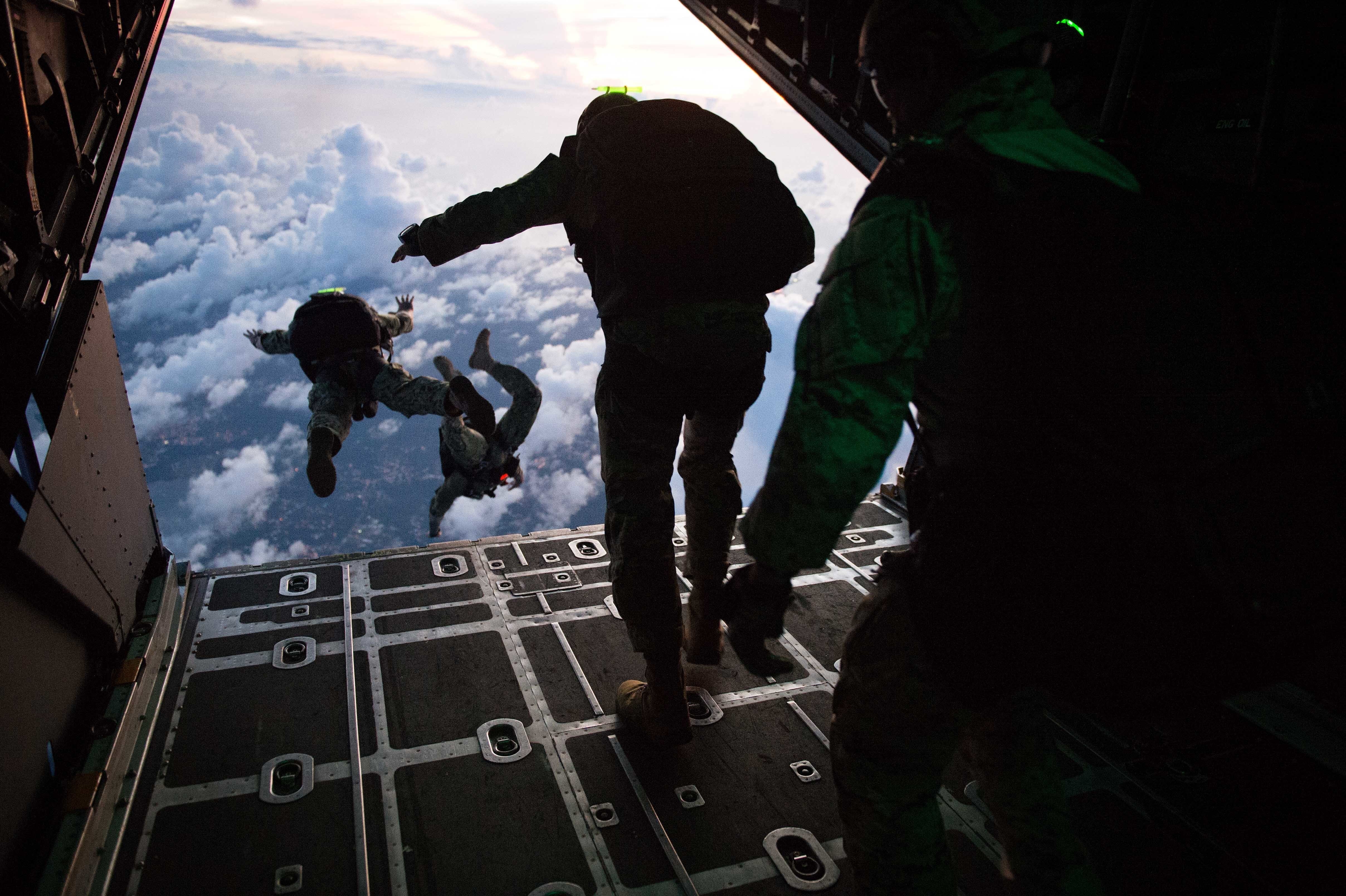 1511104-N-AX546-005 MEDITERRANEAN SEA (Nov. 4, 2015) USS Porter (DDG 78) transits the Strait of Gibraltar Nov. 4, 2015. Porter, an Arleigh Burke-class guided-missile destroyer, forward-deployed to Rota, Spain, is on routine patrol conducting naval operations in the U.S. 6th Fleet area of operations in support of U.S. national security interests in Europe. (U.S. Navy photo by Mass Communication Specialist 1st Class Sean Spratt/Released)U.S. Army Alaska Soldiers with Bravo Company, 3-21 Infantry Regiment, 1st Stryker Brigade scanning the Arctic tundra outside Deadhorse, Alaska, during Operation Arctic Pegasus, Nov. 4, 2015. Arctic Pegasus is U.S. Army Alaska's annual joint exercise designed to test rapid-deployment and readiness in the Arctic. The exercise marks the first time Strykers have deployed above the Arctic Circle. 1st Stryker Brigade Combat Team is the Army's northernmost unit and has the unique capability to deploy and operate in extreme cold regions.An American Air Force C-17 delivers paratroopers at Exercise Trident Juncture Nov. 4, 2015 near Zaragoza Spain. (Daniel Woolfolk/Staff)151104-N-UF697-105 YOKOSUKA, Japan (Nov. 4, 2015) Marines assigned to Fleet Anti-Terrorism Security Team Pacific (FASTPAC) fast-rope from an MH-60S Seahawk helicopter, attached to the “Golden Falcons” of Helicopter Sea Combat Squadron (HSC) 12, during a certification exercise at Commander Fleet Activities Yokosuka. FASTPAC companies maintain forward-deployed platoons at Navy installations around the world to provide crisis response capabilities and anti-terrorism and weapons training to security personnel. (U.S. Navy photo by Mass Communication Specialist 2nd Class Kevin V. Cunningham/Released)Explosive Ordnance Disposal (EOD) Technicians, assigned to Explosive Ordnance Disposal Mobile Unit (EODMU) 5, perform a free fall jump from a C-130 Hercules during military free fall jump sustainment training in Santa Rita, Guam, Nov. 4, 2015. EODMU-5 periodically conducts parachute operations to maintain proficiency. EODMU-5 is assigned to Commander, Task Force 75 (CTF 75), the primary expeditionary task force responsible for the planning and execution of coastal riverine operations, explosive ordnance disposal, diving engineering and construction, and underwater construction in the U.S. 7th fleet area of responsibility. (U.S. Navy Combat Camera photo by Petty Officer 1st Class Ace Rheaume/RELEASED)Airman 1st Class Gabriel Bongat, 36th Aircraft Maintenance Unit weapons load crew member, uses a speed handle on an F-16 Fighting Falcon assigned to the 36th Fighter Squadron Nov. 4, 2015, at Osan Air Base, Republic of Korea. Members of the 36th AMU are participating in the large-scale readiness exercise Vigilant Ace 16. During the exercise, Airmen launch and recover aircraft continuously during their 12-hour shifts. Vigilant Ace 16 is designed to enhance the interoperability of the U.S. and Republic of Korea Air Forces. (U.S. Air Force photo/Staff Sgt. Benjamin Sutton)An F-16 Fighting Falcon assigned to the 36th Fighter Squadron is pushed inside a hardened facility by members of the 36th Aircraft Maintenance Unit Nov. 4, 2015, at Osan Air Base, Republic of Korea. More than eight squadrons from three separate bases across Pacific Air Forces are participating in Vigilant Ace 16. Vigilant Ace 16 is a large-scale exercise designed to enhance the interoperability of the U.S. and Republic of Korea Air Forces. (U.S. Air Force photo/Staff Sgt. Benjamin Sutton)U.S. Marines with Marine Air Support Squadron (MASS) 1, participate in a formation run at Marine Corps Air Station Cherry Point, N.C., Nov. 4, 2015. MASS-1 conducted a 24-hour, 240 mile relay to honor former and fallen Marines before their 240th Birthday Ball later that evening. (U.S. Marine Corps photo by Lance Cpl. Austin A. Lewis/Released)The USS Theodore Roosevelt can be seen in the background as Secretary of Defense Ash Carter flies in a V-22 Osprey after visiting the aircraft carrier with Malaysian Minister of Defense Hishammuddin Hussein Nov. 5, 2015. (Photo by Senior Master Sgt. Adrian Cadiz)(Released)