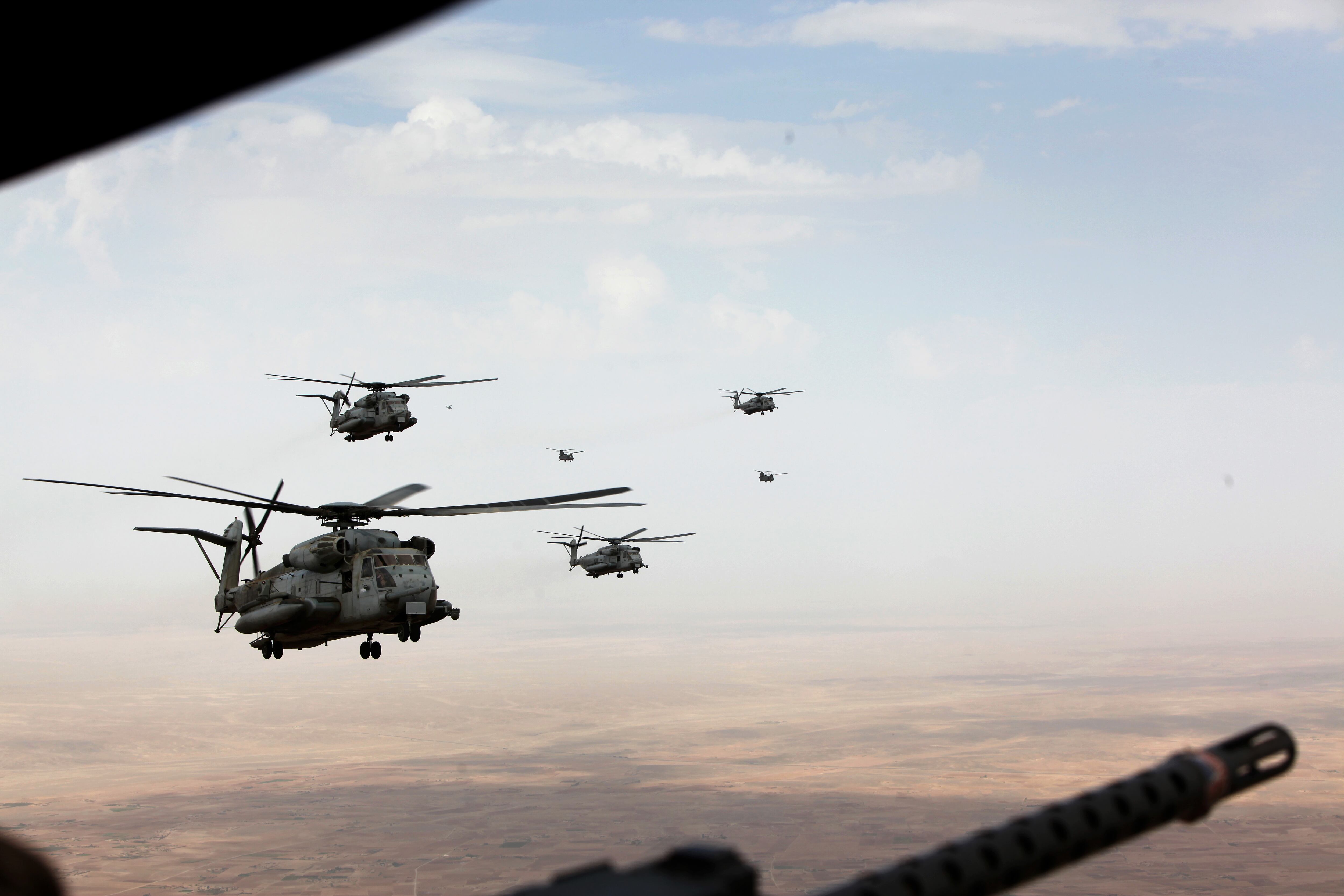 In this photograph taken on October 25, 2014, US Marines talk with each other as they prepare to withdraw from the Camp Bastion-Leatherneck complex at Lashkar Gah in Helmand province. British forces October 26 handed over formal control of their last base in Afghanistan to Afghan forces, ending combat operations in the country after 13 years which cost hundreds of lives. The Union Jack was lowered at Camp Bastion in the southern province of Helmand, while the Stars and Stripes came down at the adjacent Camp Leatherneck -- the last US Marine base in the country. AFP PHOTO/WAKIL KOHSARWAKIL KOHSAR/AFP/Getty ImagesMarine Corps and Royal Air Force helicopters fly in formation after departing Camp Bastion, Afghanistan, Oct. 27, 2014. The Marine Corps ended operations in Helmand province and transferred the base to the Afghan National Army. (U.S. Marine Corps photo by Staff Sgt. John Jackson/Released)US Marines board a C-130J Super Hercules transport aircraft headed to Kandahar as British and US forces withdraw from the Camp Bastion-Leatherneck complex at Lashkar Gah in Helmand province on October 27, 2014. British forces October 26 handed over formal control of their last base in Afghanistan to Afghan forces, ending combat operations in the country after 13 years which cost hundreds of lives. The Union Jack was lowered at Camp Bastion in the southern province of Helmand, while the Stars and Stripes came down at the adjacent Camp Leatherneck -- the last US Marine base in the country. AFP PHOTO/WAKIL KOHSAR