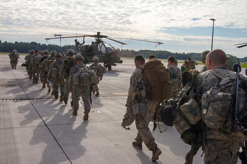 U.S. Army and Polish special operations forces conduct close-quarters combat training Sept. 10, 2014, during Jackal Stone 2014 at a training site at Smith Barracks in Baumholder, Germany. Jackal Stone is an annual joint special operations exercise designed to enhance capabilities and interoperability among the participating special operations forces as well as to build mutual respect while sharing doctrinal concepts, training concepts and various tactics, techniques and procedures. (DoD photo by Spc. Benjaman Pollhein, U.S. Army/Released)Paratroopers of 1st Battalion, 503rd Infantry Regiment, 173rd Airborne Brigade depart Lielvarde Airbase, Latvia, Sept. 8, 2014, at the conclusion of NATO Exercise Steadfast Javelin II. NATO paratroopers occupied the airbase for several days to launch follow-on operations after seizing it the night of Sept. 5. Steadfast Javelin II is a NATO exercise involving over 2,000 troops from 10 nations, and takes place across Estonia, Germany, Latvia, Lithuania and Poland. The exercise focuses on increasing interoperability and synchronizing complex operations between allied air and ground forces through airborne and air assault missions. (U.S. Army photo by Sgt. Michael T. Crawford/Released)U.S. Soldiers and cadre members conduct physical readiness training at the Noncommissioned Officer Academy in Grafenwoehr, Germany, Sept. 10, 2014. (DoD photo by Markus Rauchenberger, U.S. Army/Released)Sgt. Rico L. Rose simulates firing a PL-87 Stinger missile during a 2nd Low Altitude Air Defense Battalion’s section leader course and team leader course at Marine Corps Air Station Cherry Point, N.C., Sept. 11, 2014. Rose is a gunner with the battalion and a native of Appomattox, Va.The U.S. and Royal Marines, along with their Navy counterparts, conduct a live-fire range near Inverness, Scotland during Exercise Tartan Eagle 2014. Tartan Eagle brings U.S. Marine Security Forces and Royal Marine Fleet Protection Group together to continue a 20-year partnership of cooperation in the tactical training procedures and recovery of nuclear weapons. The three-week exercise puts each nation side-by-side in close quarter battle exercises, live fire competition, room clearing and a vertical assault course.A Harpoon missile is launched from the guided missile cruiser USS Shiloh (CG 67) during Valiant Shield 2014 in the Pacific Ocean Sept. 15, 2014. Valiant Shield is a biennial U.S. Air Force, Navy and Marine Corps exercise held in Guam, focusing on real-world proficiency in sustaining joint forces at sea, in the air, on land and in cyberspace. (DoD photo by Mass Communication Specialist 3rd Class Kevin V. Cunningham, U.S. Navy/Released)TAMPA, FL - SEPTEMBER 17: Soldiers reach out to greet U.S. President Barack Obama during a visit to the U.S. Central Command at the MacDill Air Force Base on September 17, 2014 in Tampa, Florida. Obama visited the base to receive a briefing from his top commanders at CENTCOM, on the strategy to degrade and destroy ISIL. (Photo by Joe Raedle/Getty Images)