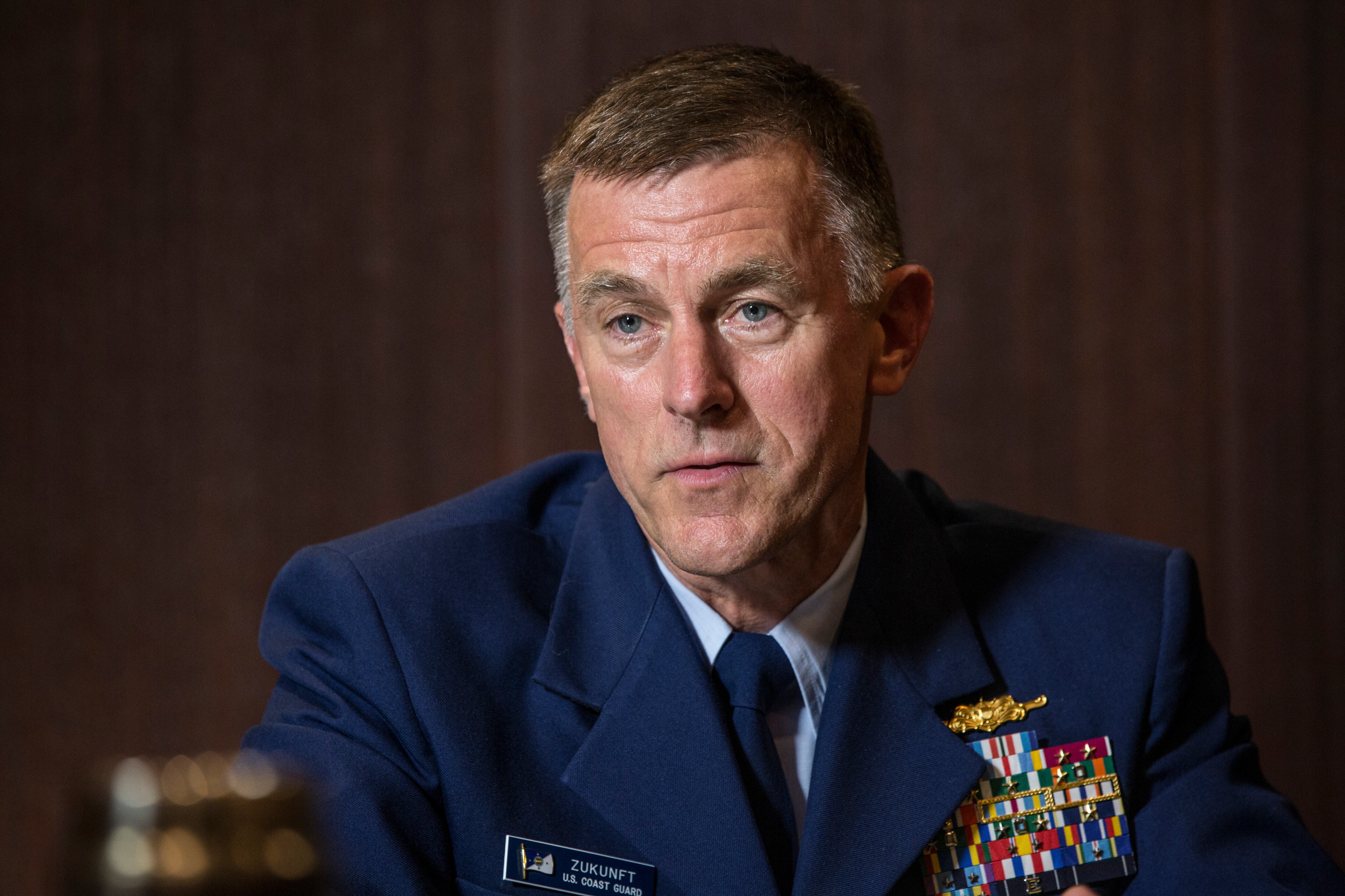 Photo by Rob Curtis, StaffAdmiral Paul Zukunft, the 25th Commandant of the U.S. Coast Guard, speaks with the editorial board of the Military Times at the Military Times offices, Wednesday, March 11, 2015.