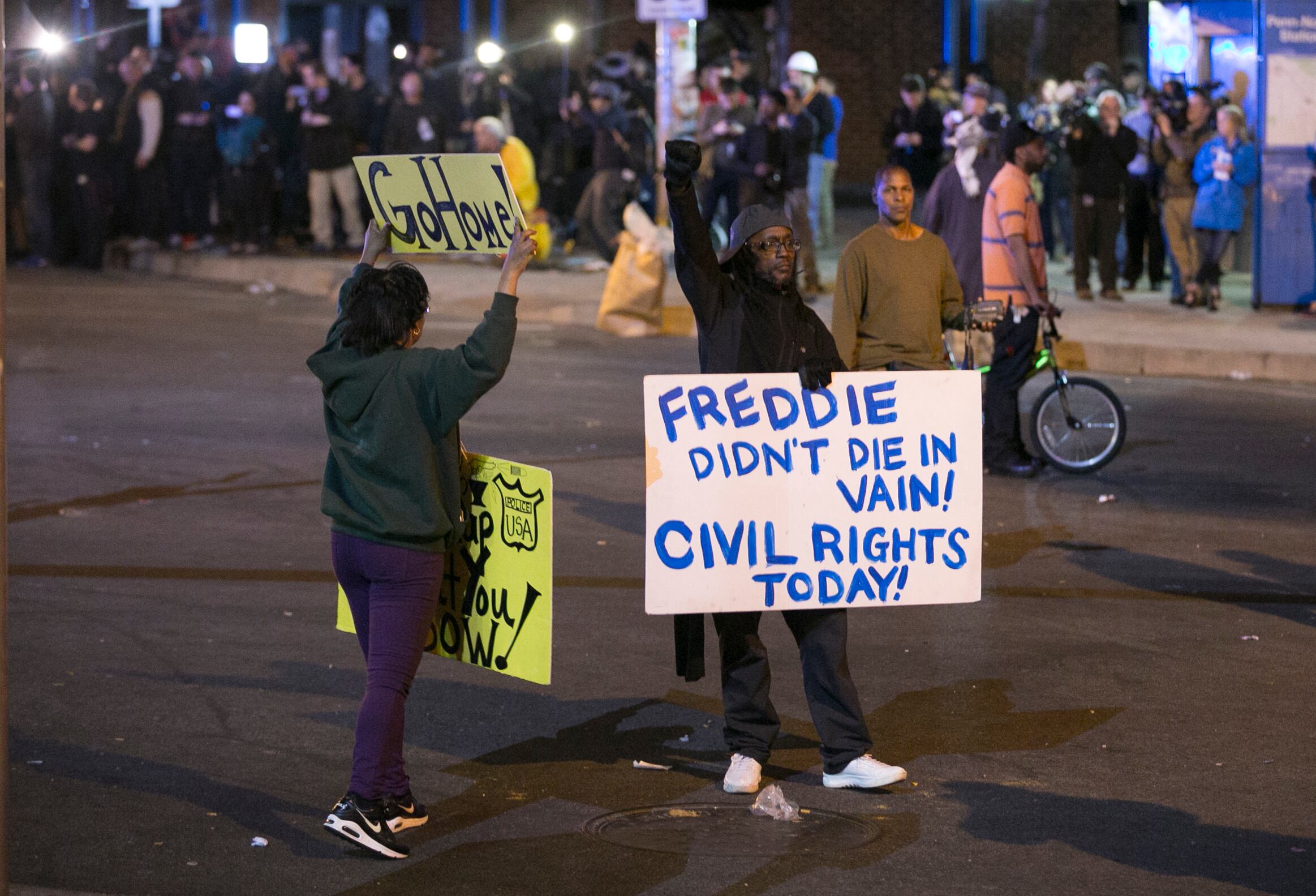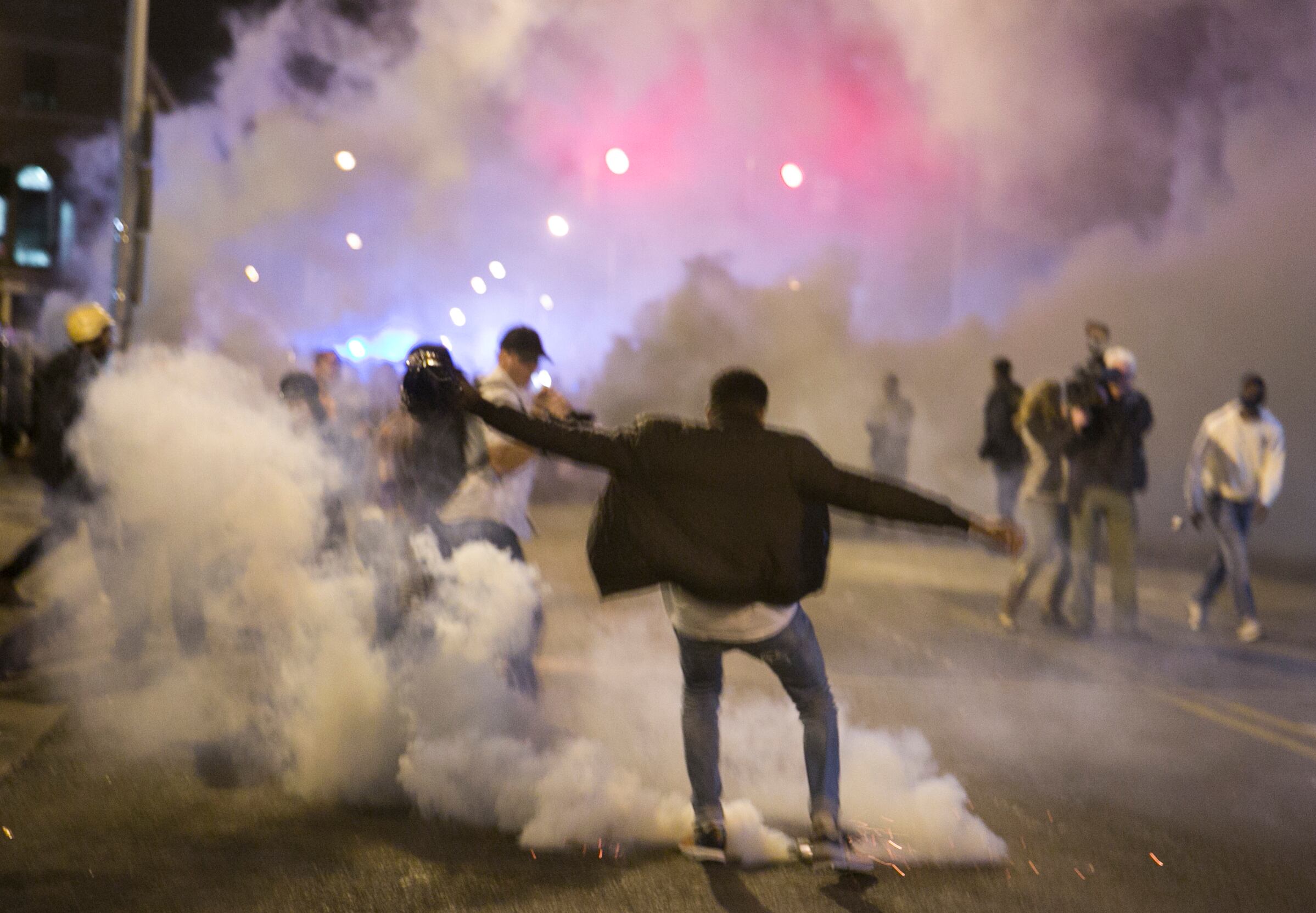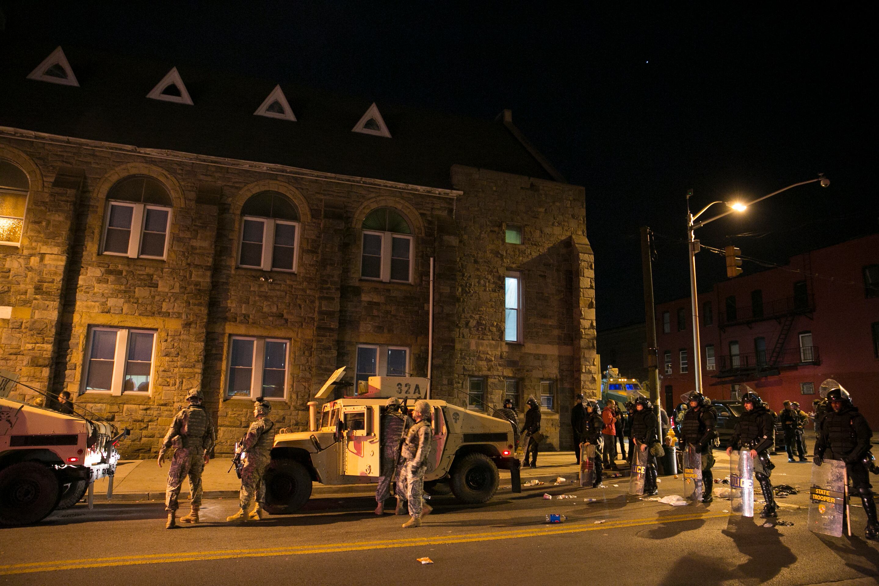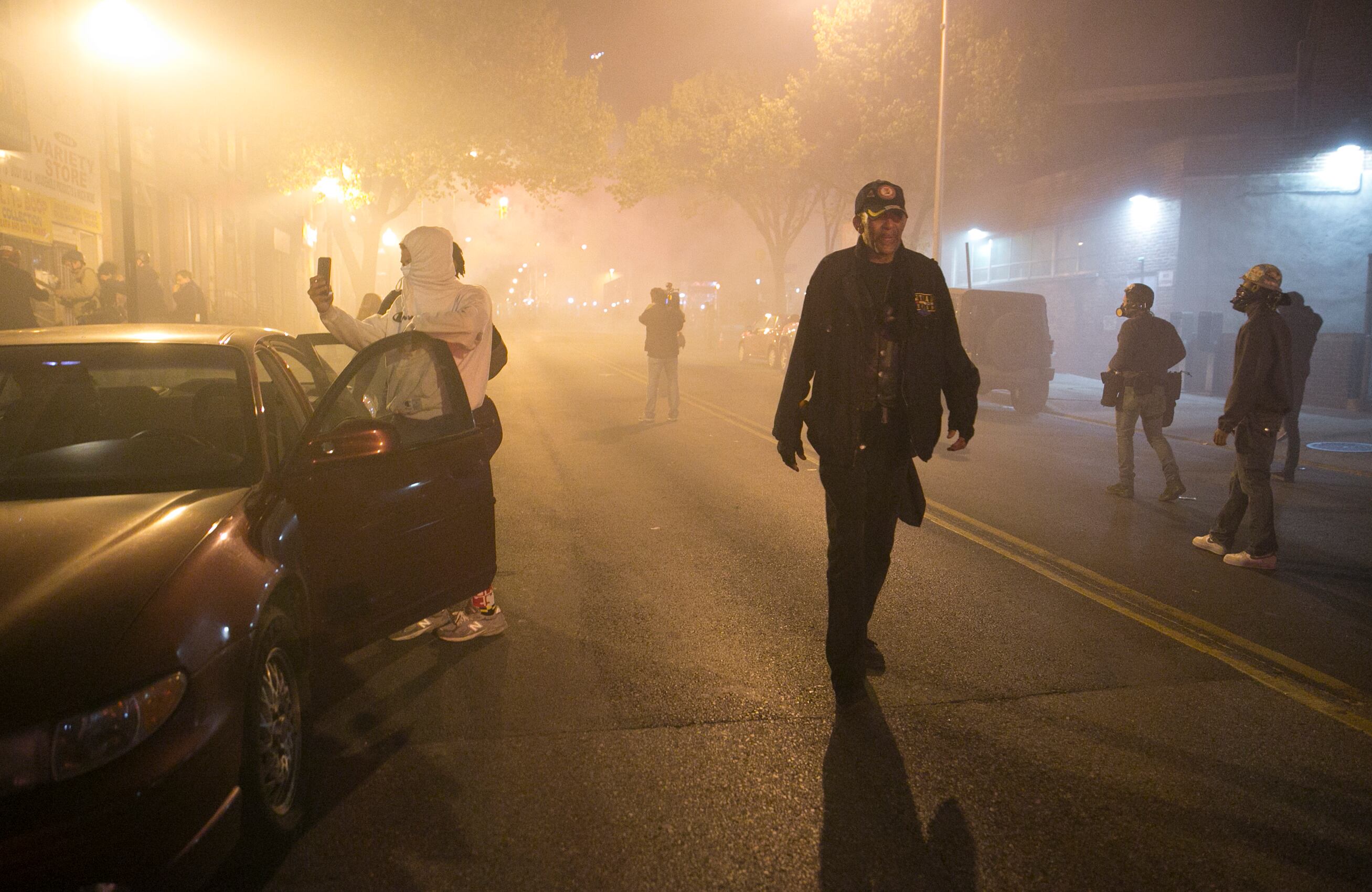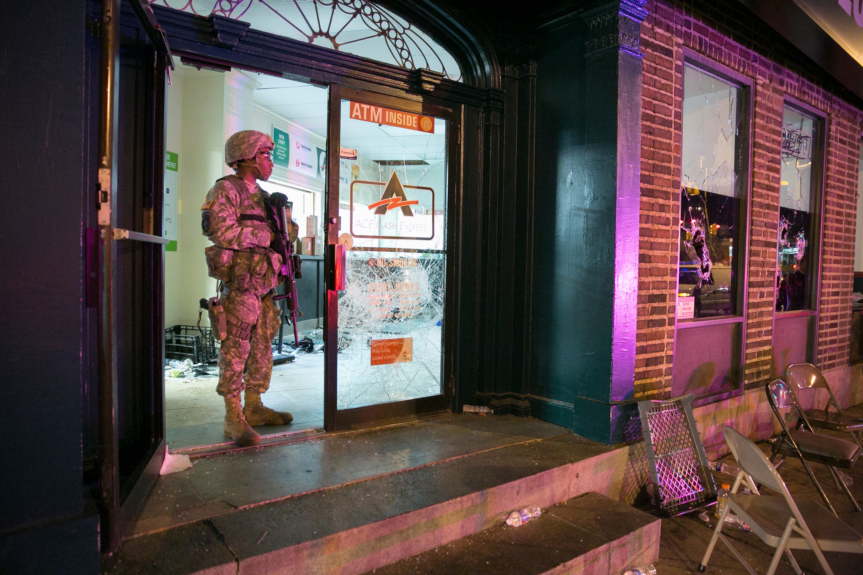 Sgt. D.S. Dickerson, a soldier with the Maryland National Guard's 200th Military Police Company stands in front of a damaged storefront in Baltimore, Md., on Wednesday, April 29, 2015. Maryland governor Larry Hogan activated the Guard after rioting in the wake of the funeral of Freddie Gray who died in police custody. (Mike Morones/Staff)Soldiers from the Maryland National Guard's 200th Military Police Company stand guard and enforce a curfew at the location of earlier rioting in Baltimore, Md., on Wednesday, April 29, 2015. Maryland governor Larry Hogan activated the Guard after rioting in the wake of the funeral of Freddie Gray who died in police custody. (Mike Morones/Staff)Maryland National Guard soldiers patrol around the Inner Harbor in Baltimore, Md., on Tuesday, April 28, 2015. Maryland governor Larry Hogan activated the Guard after rioting in the wake of the funeral of Freddie Gray who died in police custody. (Mike Morones/Staff)Neighborhood residents stand in front of police to dissuade further violence at the site of earlier rioting in Baltimore, Md., on Tuesday, April 28, 2015. (Mike Morones/Staff)Neighborhood residents stand in front of police to dissuade further violence at the site of earlier rioting in Baltimore, Md., on Tuesday, April 28, 2015. (Mike Morones/Staff)Protesters stand at the intersection of Pennsylvania Avenue and West North Avenue in Baltimore, Md., on Tuesday, April 28, 2015. Maryland governor Larry Hogan activated the Guard after rioting in the wake of the funeral of Freddie Gray who died in police custody. (Mike Morones/Staff)Maryland National Guard soldiers patrol around Baltimore, Md., on Tuesday, April 28, 2015. Maryland governor Larry Hogan activated the Guard after rioting in the wake of the funeral of Freddie Gray who died in police custody. (Mike Morones/Staff)Vietnam veteran Robert Valentine encourages people to go home as a curfew goes into effect in Baltimore, Md., on Tuesday, April 28, 2015. (Mike Morones/Staff)Police in riot gear move forward to disperse a crowd and enforce a curfew in Baltimore, Md., on Tuesday, April 28, 2015. Maryland governor Larry Hogan activated the Guard after rioting in the wake of the funeral of Freddie Gray who died in police custody. (Mike Morones/Staff)Police in riot gear use smoke and pepper spray to disperse a crowd and enforce a curfew in Baltimore, Md., on Tuesday, April 28, 2015. Maryland governor Larry Hogan activated the Guard after rioting in the wake of the funeral of Freddie Gray who died in police custody. (Mike Morones/Staff)Vietnam veteran Robert Valentine moves away from the intersection where police used smoke and pepper balls to disperse a crowd in Baltimore, Md., on Tuesday, April 28, 2015. (Mike Morones/Staff)A protester kicks a smoke grenade as police move in to disperse a crowd in Baltimore, Md., on Tuesday, April 28, 2015. Maryland governor Larry Hogan activated the Guard after rioting in the wake of the funeral of Freddie Gray who died in police custody. (Mike Morones/Staff)Soldiers from the Maryland National Guard's 200th Military Police Company stand guard and enforce a curfew at the location of earlier rioting in Baltimore, Md., on Wednesday, April 29, 2015. Maryland governor Larry Hogan activated the Guard after rioting in the wake of the funeral of Freddie Gray who died in police custody. (Mike Morones/Staff)