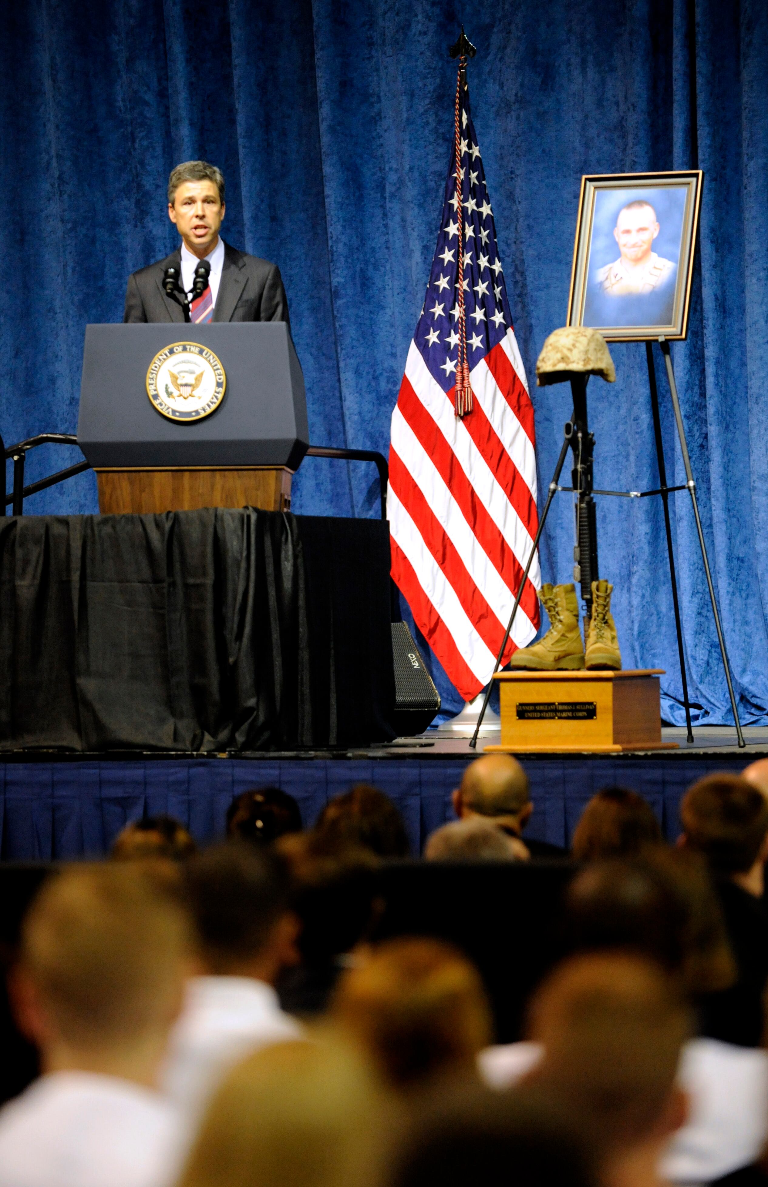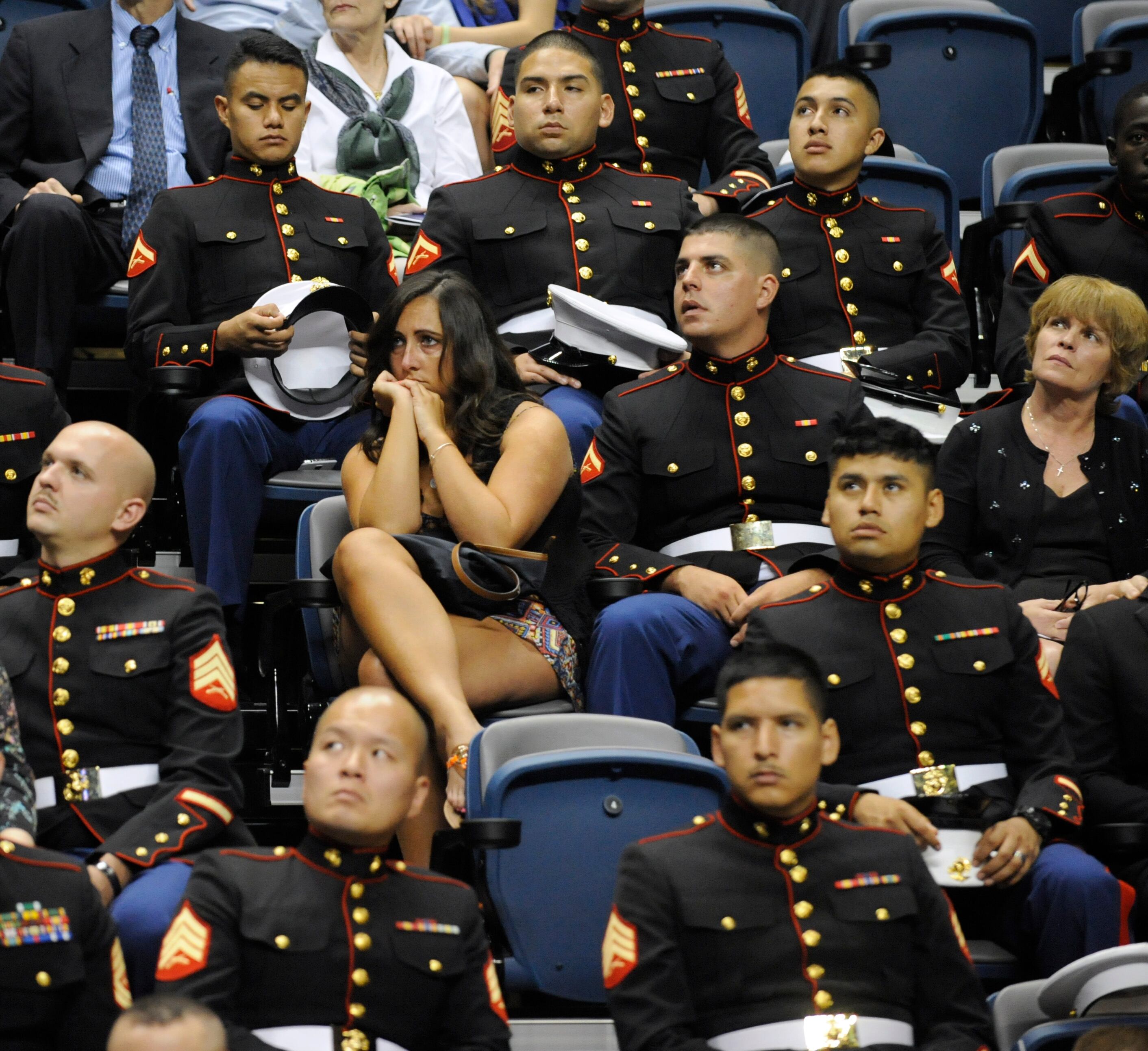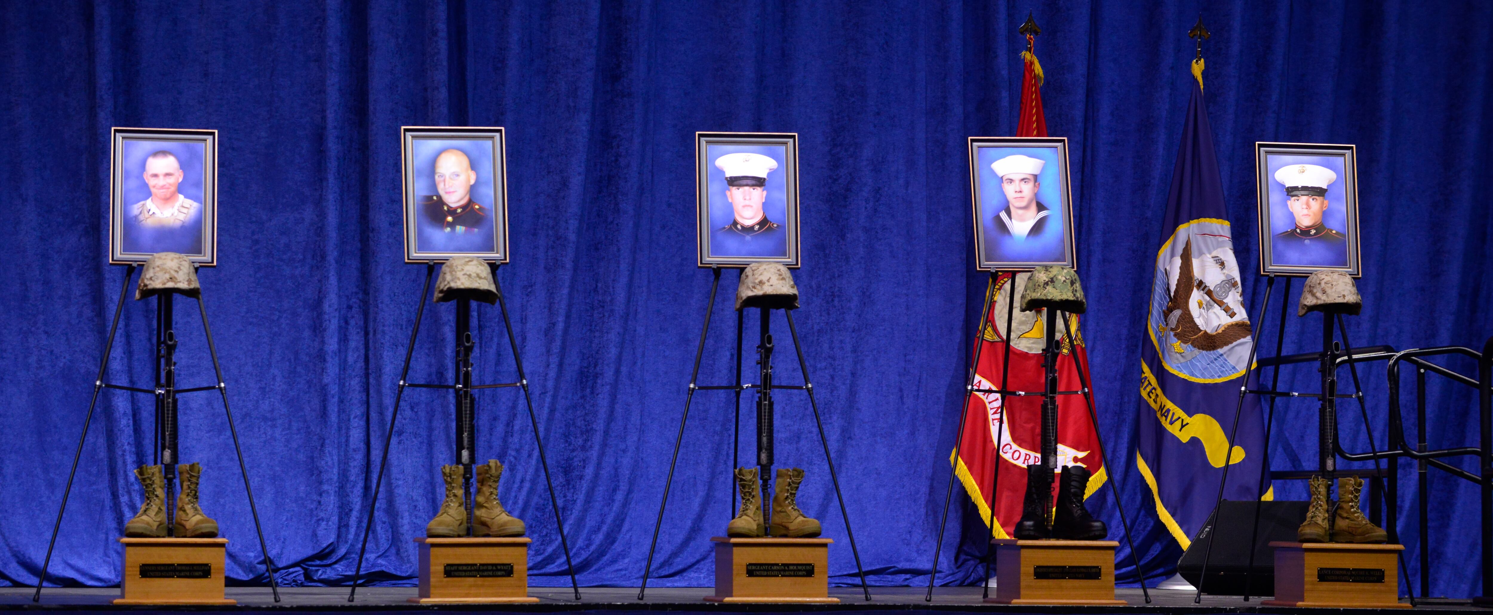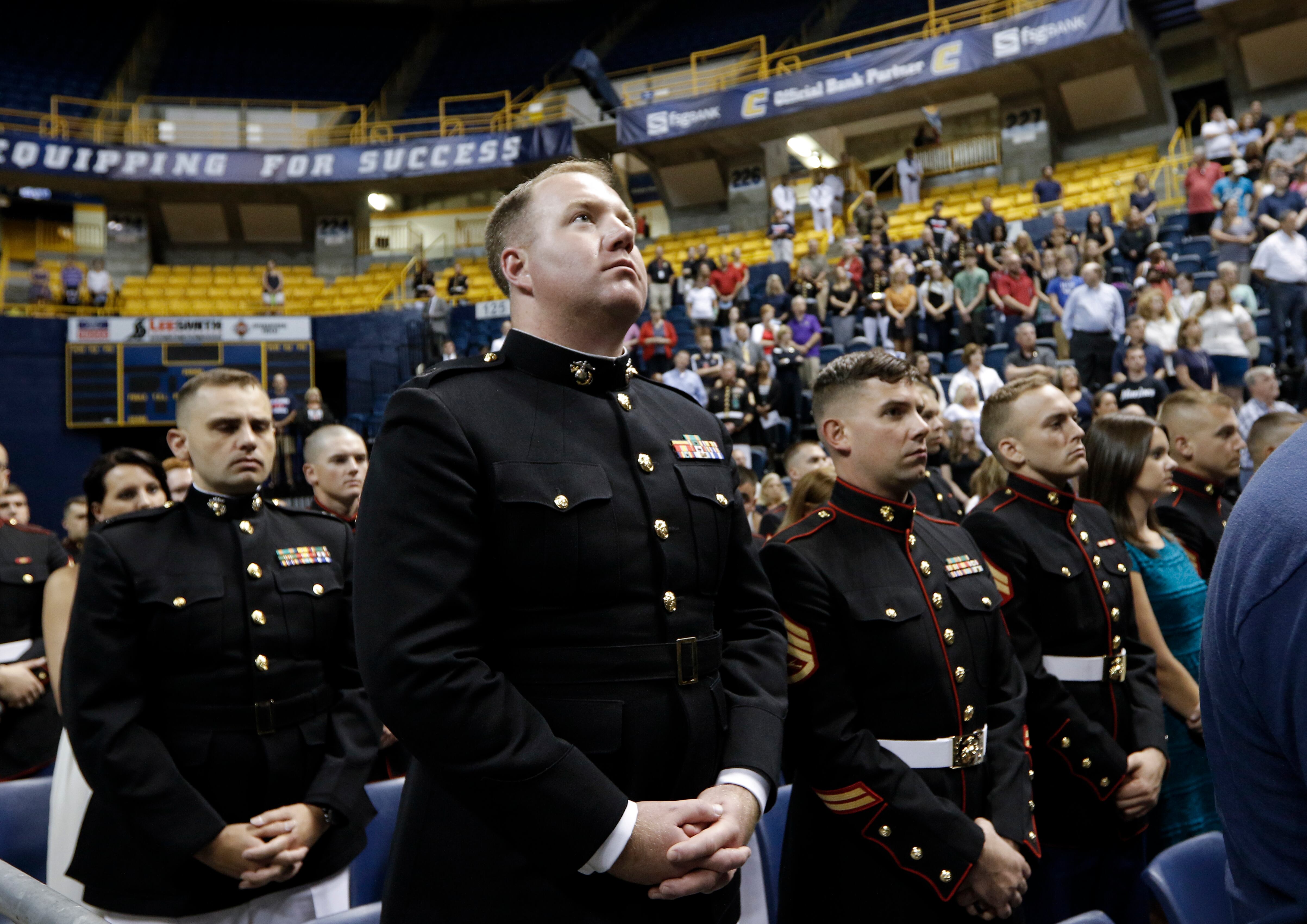 CHATTANOOGA, TN - AUGUST 15: U.S. Vice President Joe Biden pauses as he speaks at a memorial service to honor those killed In Chattanooga shooting at University of Tennessee at Chattanooga's McKenzie Arena on August 15, 2015 in Chattanooga, Tennessee. The military is putting on the ceremony to honor the sailor and four Marines killed and to say thank you to the men and women who helped responded when Mohammad Abdulazeez shot up a military recruitment center and a Navy operations support center before being killed by law enforcement, (Photo by Jason Davis/Getty Images)A woman touches the boots on the battlefield cross for Gunnery Sgt. Thomas Sullivan at a memorial for the five military servicemen killed in the July, 16, attacks on two military facilities held Saturday, Aug. 15, 2015, at McKenzie Arena in Chattanooga, Tenn. Vice President Joseph Biden and Secretary of Defense Ash Carter spoke along with representatives from the U.S. Navy and Marine Corps. (Doug Strickland/Chattanooga Times Free Press via AP) U.S. Marines stand during taps at a memorial for the five military servicemen killed in the July, 16, attacks on two military facilities held Saturday, Aug. 15, 2015, at McKenzie Arena in Chattanooga, Tenn. Vice President Joseph Biden and Secretary of Defense Ash Carter spoke along with representatives from the U.S. Navy and Marine Corps. (Doug Strickland/Chattanooga Times Free Press via AP) U.S. Navy officers pay their respects at the battlefield crosses for the fallen servicemen at a memorial for the five military servicemen killed in the July, 16, attacks on two military facilities held Saturday, Aug. 15, 2015, at McKenzie Arena in Chattanooga, Tenn. Vice President Joseph Biden and Secretary of Defense Ash Carter spoke along with representatives from the U.S. Navy and Marine Corps. (Doug Strickland/Chattanooga Times Free Press via AP) Marines, family and friends listen to the Benediction at a memorial service Saturday, Aug. 15, 2015, in Chattanooga, Tenn. The service is for four Marines and a sailor killed as a result of attacks on a military recruiting station and a Naval operations center July 16 in Chattanooga. (AP Photo/Mark Gilliland)Navy Sailors appauld as Vice President Joe Biden finishes his speech at a memorial service Saturday, Aug. 15, 2015, in Chattanooga, Tenn. The service is for four Marines and a sailor killed as a result of attacks on a military recruiting station and a Naval operations center July 16 in Chattanooga. (AP Photo/Mark Gilliland)CHATTANOOGA, TN - AUGUST 15: U.S. Secretary of Defense Ash Carter speaks at a memorial service to honor those killed In Chattanooga shooting at University of Tennessee at Chattanooga's McKenzie Arena on August 15, 2015 in Chattanooga, Tennessee. The military is putting on the ceremony to honor the sailor and four Marines killed and to say thank you to the men and women who helped responded when Mohammad Abdulazeez shot up a military recruitment center and a Navy operations support center before being killed by law enforcement, (Photo by Jason Davis/Getty Images)Sailors and their families at a memorial service Saturday, Aug. 15, 2015, in Chattanooga, Tenn. The service is for four Marines and a sailor killed as a result of attacks on a military recruiting station and a Naval operations center July 16 in Chattanooga. (AP Photo/Mark Gilliland)Chattanooga Mayor Andy Berke speaks to the crowd at a memorial service Saturday, Aug. 15, 2015, in Chattanooga, Tenn. The service is for four Marines and a sailor killed as a result of attacks on a military recruiting station and a Naval operations center July 16 in Chattanooga. (AP Photo/Mark Gilliland)Sailors bow their head during the benediction at a memorial service Saturday, Aug. 15, 2015, in Chattanooga, Tenn. The service is for four Marines and a sailor killed as a result of attacks on a military recruiting station and a Naval operations center July 16 in Chattanooga. (AP Photo/Mark Gilliland)CHATTANOOGA, TN - AUGUST 15: Secretary of the Navy - Ray Mabus speaks at a memorial service to honor those killed In Chattanooga shooting at University of Tennessee at Chattanooga's McKenzie Arena on August 15, 2015 in Chattanooga, Tennessee. The military is putting on the ceremony to honor the sailor and four Marines killed and to say thank you to the men and women who helped responded when Mohammad Abdulazeez shot up a military recruitment center and a Navy operations support center before being killed by law enforcement, (Photo by Jason Davis/Getty Images)CHATTANOOGA, TN - AUGUST 15: Officer of Navy Operational Support Center Chattanooga - Lieutenant Commander Timothy White speaks at a memorial service to honor those killed In Chattanooga shooting at University of Tennessee at Chattanooga's McKenzie Arena on August 15, 2015 in Chattanooga, Tennessee. The military is putting on the ceremony to honor the sailor and four Marines killed and to say thank you to the men and women who helped responded when Mohammad Abdulazeez shot up a military recruitment center and a Navy operations support center before being killed by law enforcement, (Photo by Jason Davis/Getty Images)CHATTANOOGA, TN - AUGUST 15: (L-R) A memorial for Gunner Sergeant Thomas J. Sullivan, Staff Sergeant David A. Wyatt, Sergeant Carson A. Holmquist - United States Marine Corp, Logistics Specialist 2nd Class Randall S. Smith - United States Navy and Lance Corporal Squire K. Wells - United States Marine Corps is displayed on stage at a memorial service to honor those killed In Chattanooga shooting at University of Tennessee at Chattanooga's McKenzie Arena on August 15, 2015 in Chattanooga, Tennessee. The military is putting on the ceremony to honor the sailor and four Marines killed and to say thank you to the men and women who helped responded when Mohammad Abdulazeez shot up a military recruitment center and a Navy operations support center before being killed by law enforcement, (Photo by Jason Davis/Getty Images)