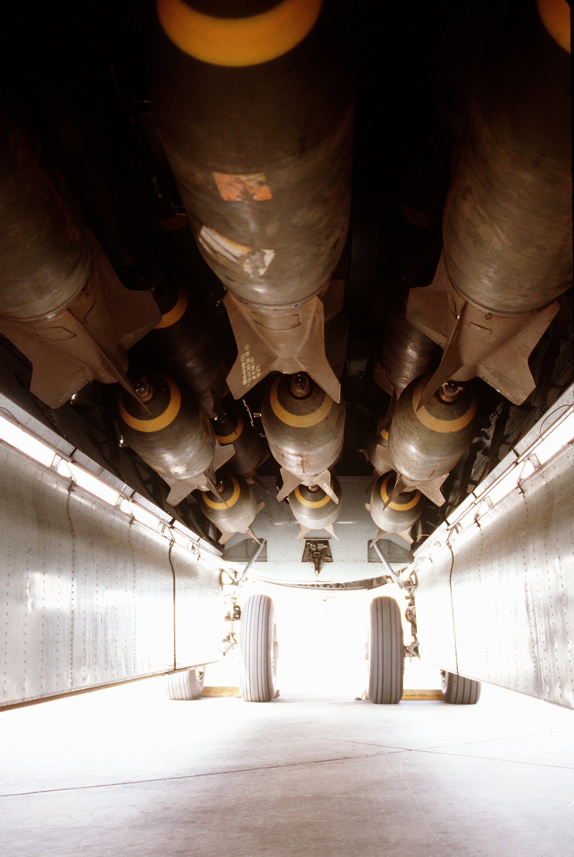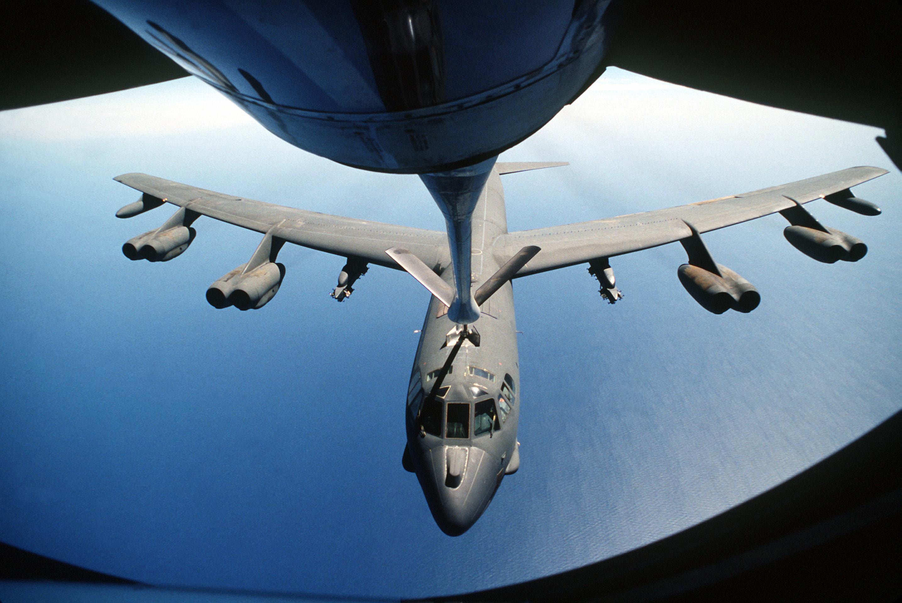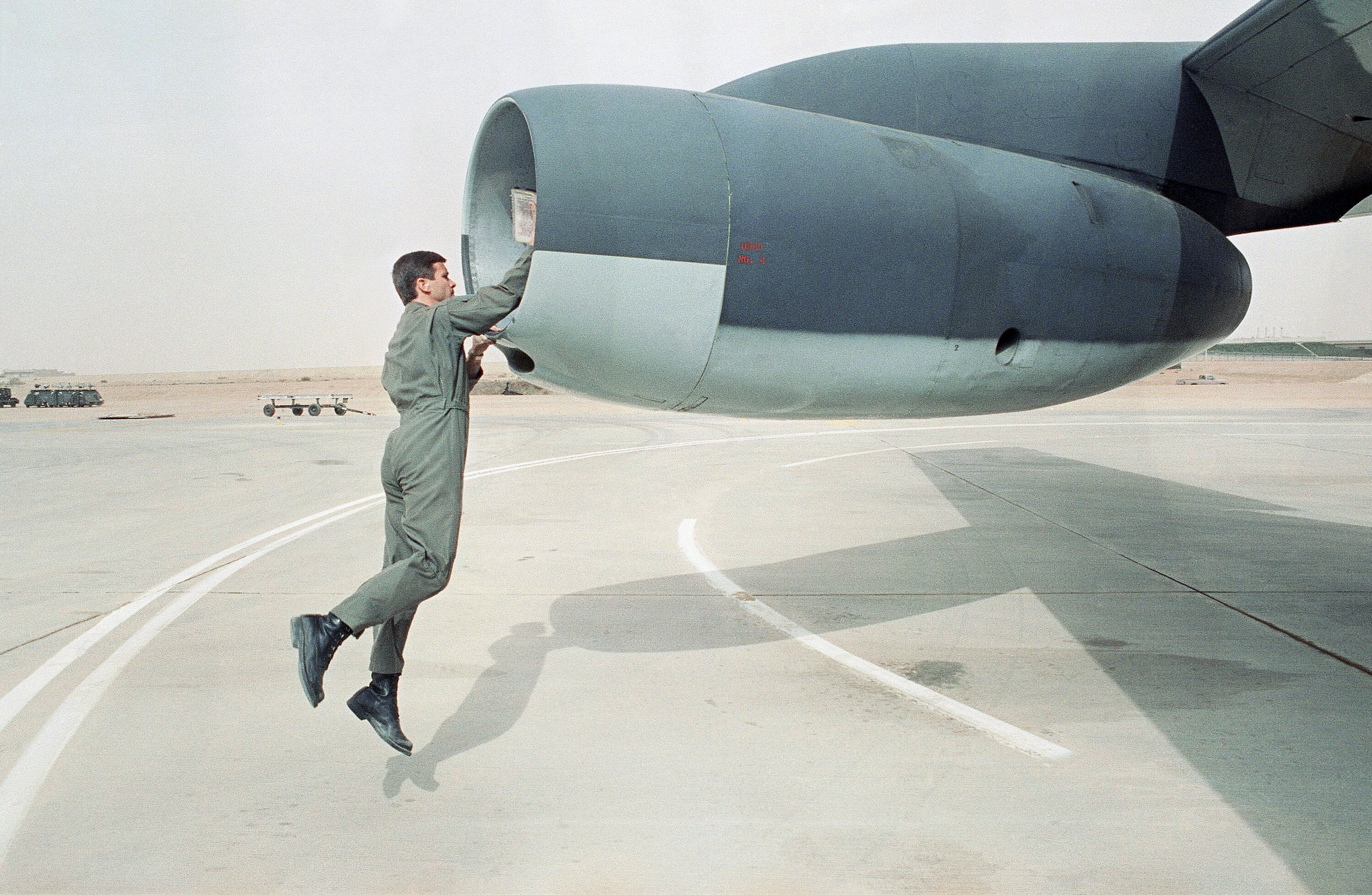 F-16A Fighting Falcon, F-15C Eagle and F-15E Strike Eagle fighter aircraft fly over burning oil field sites in Kuwait during Operation Desert Storm. (U.S. Air Force archive photo)A B-52G Stratofortress aircraft takes off on its return flight to the United States after being deployed during Operation Desert Storm.An air-to-air view of two U.S. Air Force F-15C Eagle fighter aircraft of the 33rd Tactical Fighter Wing, Eglin Air Force Base, Fla., and a Royal Saudi Air Force F-5E Tiger II fighter aircraft during a mission in support of Operation Desert Storm. The aircraft are armed with AIM-9 Sidewinder air-to-air missiles.U.S Air Force pilot Cpt. David Meinhart, of Plattsburgh, N.Y., jumps up to take a pre-flight look at the engine of his KC-135 tanker at an airbase in central Saudi Arabia on Monday, Feb. 4, 1991. Meinhart says he is too short to get a good look into the engines without leaping up. The tankers are being used to for aerial refueling of fighters for operation Desert Storm. (AP Photo)Ground crews service the F-117A aircraft of the 37th Tactical Fighter Wing (37th TFW) on the flight line. The 37th TFW was preparing to deploy to Saudi Arabia for Operation Desert Shield. A KC-135 Stratotanker aircraft boom operator refuels a B-52 Stratofortress aircraft, center, during air operations for Operation Desert Storm over Southwest Asia Feb. 1, 1991. (U.S. Air Force photo by Senior Airman Chris Putnam/Released)A close-up view of M-117 750-pound bombs loaded into the bomb bay of a B-52G Stratofortress aircraft prior to a bombing mission against Iraqi forces during Operation Desert Storm.Staff Sgt. Brian D. Land checks a .50-caliber tail turret gun on a B-52G Stratofortress aircraft during Operation Desert Shield.SOUTHWEST ASIA -- A B-52H Stratofortress drops a load of M-117 750lb bombs. During Desert Storm, B-52s delivered 40 percent of all the weapons dropped by coalition forces. B-52s struck wide-area troop concentrations, fixed installations and bunkers, and decimated the morale of Iraq's Republican Guard. In the Gulf War involved the longest strike mission in the history of aerial warfare when B-52s took off from Barksdale Air Force Base, La., launched conventional air launched cruise missiles and returned to Barksdale -- a 35-hour, non-stop combat mission. (U.S. Air Force photo)A 58th Tactical Fighter Squadron F-15 Eagle aircraft banks to the right following refueling during Operation Desert Storm. The aircraft is armed with four AIM-7 Sparrow missiles on the fuselage, an AIM-9 Sidewinder missile on the left wing and an AIM-120 advanced medium range air-to-air missile on the right wing. FILE PHOTO: An F-16C Fighting Falcon of the 388th Tactical Fighter Wing flies over the Red Sea during Operation Desert Storm. (Photo by USAF)F-117 stealth fighter aircraft of the 37th Tactical Fighter Wing stand on the flight line with canopies raised following their return from Saudi Arabia where they took part in Operation Desert Storm.