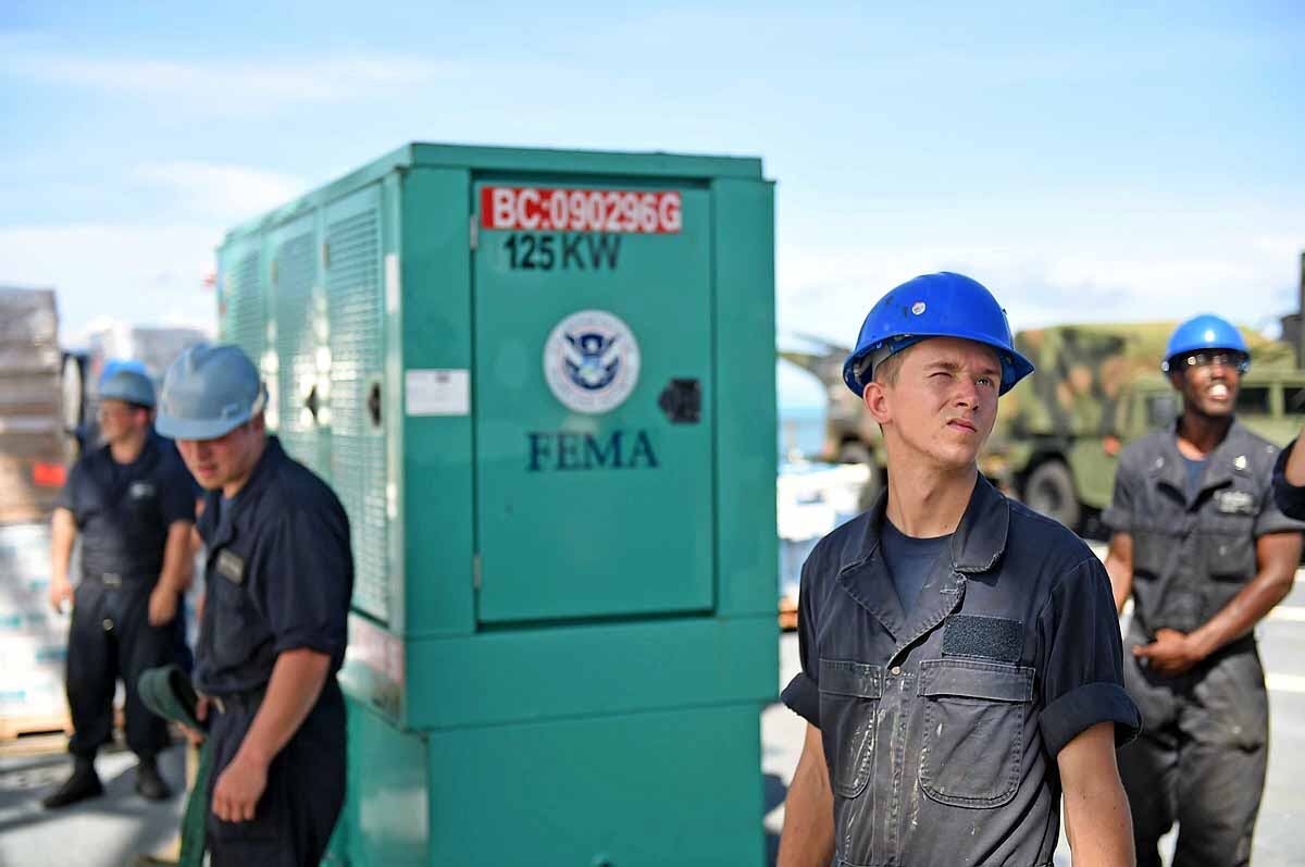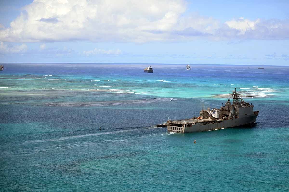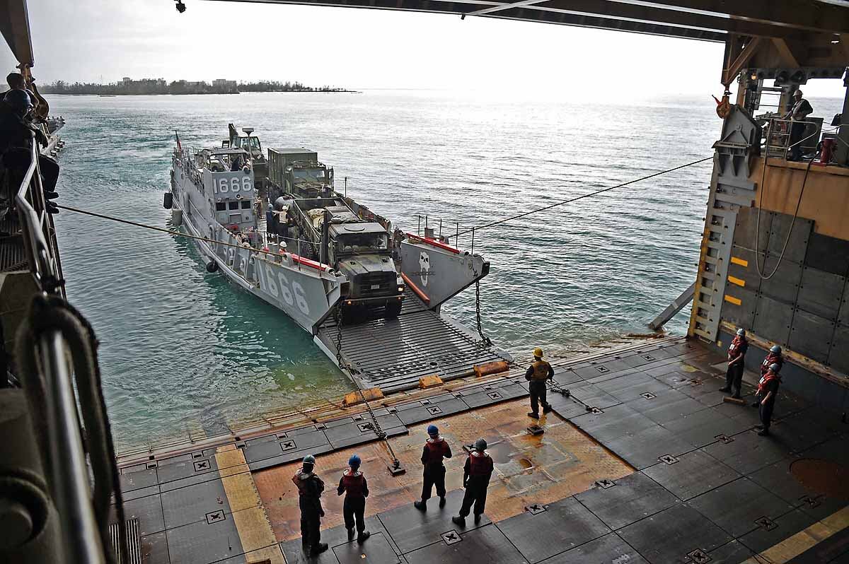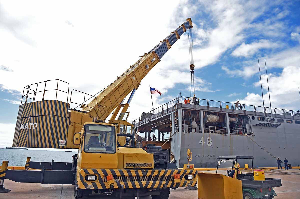 U.S. Marines and sailors with the 31st Marine Expeditionary Unit load into an MV-22B Osprey aboard the USS Bonhomme Richard (LHD 6), Aug. 8, 2015. The 31st MEU is staging Ospreys in Guam in support of typhoon recovery efforts in Saipan. The aircraft will be on standby in the event their aerial lift capacity is needed to distribute emergency supplies to remote areas. Saipan, the most populated island in the Commonwealth of the Northern Mariana Islands, was struck by Typhoon Soudelor Aug. 2-3. (U.S. Marine Corps photo by Cpl. Tyler Ngiraswei/ Released)SANTA RITA, Guam (Aug. 6, 2015) – USS Ashland (LSD 48) Sailors and 31st Marine Expeditionary Unit (MEU) Marines return to the ship Aug. 6 to prepare for deployment to Saipan. Ashland and the 31st MEU will support relief efforts in the aftermath of Typhoon Soudelor.SANTA RITA, Guam (Aug. 7, 2015) - USS Ashland (LSD 48) Commanding Officer Cmdr. Daniel Duhan briefs local media about the ship’s operations during a media availability on U.S. Naval Base Guam Aug. 7. Ashland and the 31st Marine Expeditionary Unit will support relief efforts in Saipan in the aftermath of Typhoon Soudelor, which devastated the island Aug. 2-3. (U.S. Navy photo by JoAnna Delfin/Released)FADANG, Saipan (Aug. 6, 2015) – Sgt. Matthew Butler and Sgt. Jorge Lopez, soldiers assigned to the 249th Engineer Battalion, disembark from a Helicopter Sea Combat (HSC) Squadron 25 MH-60 helicopter. The 249th Engineer Battalion, is working with the Federal Emergency Management Agency to provide electrical capabilities to critical facilities in Saipan following Typhoon Soudelor. (U.S. Navy photo by Mass Communications Specialist 2nd Class Jonathan T. Erickson/Released)U.S. Marines help guide locals to food and water at a shelter in Saipan, Aug. 9, 2015. The Marines with Echo Company, Battalion Landing Team 2nd Battalion, 5th Marines, 31st Marine Expeditionary Unit, are assisting local and federal agencies with typhoon relief efforts in Saipan after the island was struck by Typhoon Soudelor, Aug. 2-3. The MEU, along with the U.S. Navy ships of the Bonhomme Richard Amphibious Ready Group, was conducting training in the vicinity of the Mariana Islands when it was rerouted to assist in Saipan. (U.S. Marine Corps photo Cpl. Ryan C. Mains/Released)U.S. Marines move water bladders out of an MV-22B Osprey at Saipan International Airport, Saipan, Aug. 9, 2015. The water bladders, able to hold 3,000 gallons, allow the distribution of water to those affected by the recent typhoon. The Marines with Echo Company, Battalion Landing Team 2nd Battalion, 5th Marines, 31st Marine Expeditionary Unit, are assisting local and federal agencies with typhoon relief efforts in Saipan after the island was struck by Typhoon Soudelor, Aug. 2-3. The MEU, along with the U.S. Navy ships of the Bonhomme Richard Amphibious Ready Group, was conducting training in the vicinity of the Mariana Islands when it was rerouted to assist relief efforts in Saipan. (U.S. Marine Corps photo Cpl. Ryan C. Mains/Released)U.S. Marines help hand out food to locals at a shelter in Saipan, Aug. 9, 2015. The Marines with Echo Company, Battalion Landing Team 2nd Battalion, 5th Marines, 31st Marine Expeditionary Unit, are assisting local and federal agencies with typhoon relief efforts in Saipan after the island was struck by Typhoon Soudelor, Aug. 2-3. The MEU, along with the U.S. Navy ships of the Bonhomme Richard Amphibious Ready Group, was conducting training in the vicinity of the Mariana Islands when it was rerouted to assist in Saipan. (U.S. Marine Corps photo Cpl. Ryan C. Mains/Released)150808-N-KM939-370 SAIPAN HARBOR, Saipan (Aug. 8, 2015) - A crane lifts a pallet of supplies off the flight deck of the amphibious dock landing ship USS Ashland (LSD 48) during disaster relief efforts in Saipan after Typhoon Soudelor made landfall. Ashland is assigned to the Bonhomme Richard Expeditionary Strike Group and is on patrol in the U.S. 7th Fleet area of operations. (U.S. Navy photo by Mass Communications 3rd Class David A. Cox/Released)U.S. Marines help move boxes of water at Admiral Herbert G. Hopwood Junior High School in Saipan, Aug. 9, 2015. The Marines with Echo Company, Battalion Landing Team 2nd Battalion, 5th Marines, 31st Marine Expeditionary Unit, are assisting local and federal agencies with typhoon relief efforts in Saipan after the island was struck by Typhoon Soudelor, Aug. 2-3. The MEU, along with the U.S. Navy ships of the Bonhomme Richard Amphibious Ready Group, was conducting training in the vicinity of the Mariana Islands when it was rerouted to assist in Saipan. (U.S. Marine Corps photo Cpl. Ryan C. Mains/Released)150808-N-KM939-020 PACIFIC OCEAN (Aug. 8, 2015) - Quartermaster 2nd Class Thomas Hoffman from Los Angeles, looks through the "Big Eyes" on the amphibious dock landing ship USS Ashland (LSD 48) while entering Saipan Harbor where the ship will provide disaster relief in Saipan after Typhoon Soudelor made landfall. Ashland is assigned to the Bonhomme Richard Expeditionary Strike Group and is on patrol in the U.S. 7th Fleet area of operations. (U.S. Navy photo by Mass Communications 3rd Class David A. Cox/Released)150808-N-KM939-250 SAIPAN HARBOR, Saipan (Aug. 8, 2015) - Sailors wait for a crane to lower supplies from the flight deck of the amphibious dock landing ship USS Ashland (LSD 48) during disaster relief efforts in Saipan after Typhoon Soudelor made landfall. Ashland is assigned to the Bonhomme Richard Expeditionary Strike Group and is on patrol in the U.S. 7th Fleet area of operations. (U.S. Navy photo by Mass Communications 3rd Class David A. Cox/Released)150808-N-KM939-449 SAIPAN HARBOR, Saipan (Aug. 8, 2015) - Vehicles from the 31st Marine Expeditionary Unit (MEU) are unloaded from the well deck of the amphibious dock landing ship USS Ashland (LSD 48) via Landing Craft Utility vehicle during disaster relief efforts in Saipan after Typhoon Soudelor made landfall. Ashland is assigned to the Bonhomme
