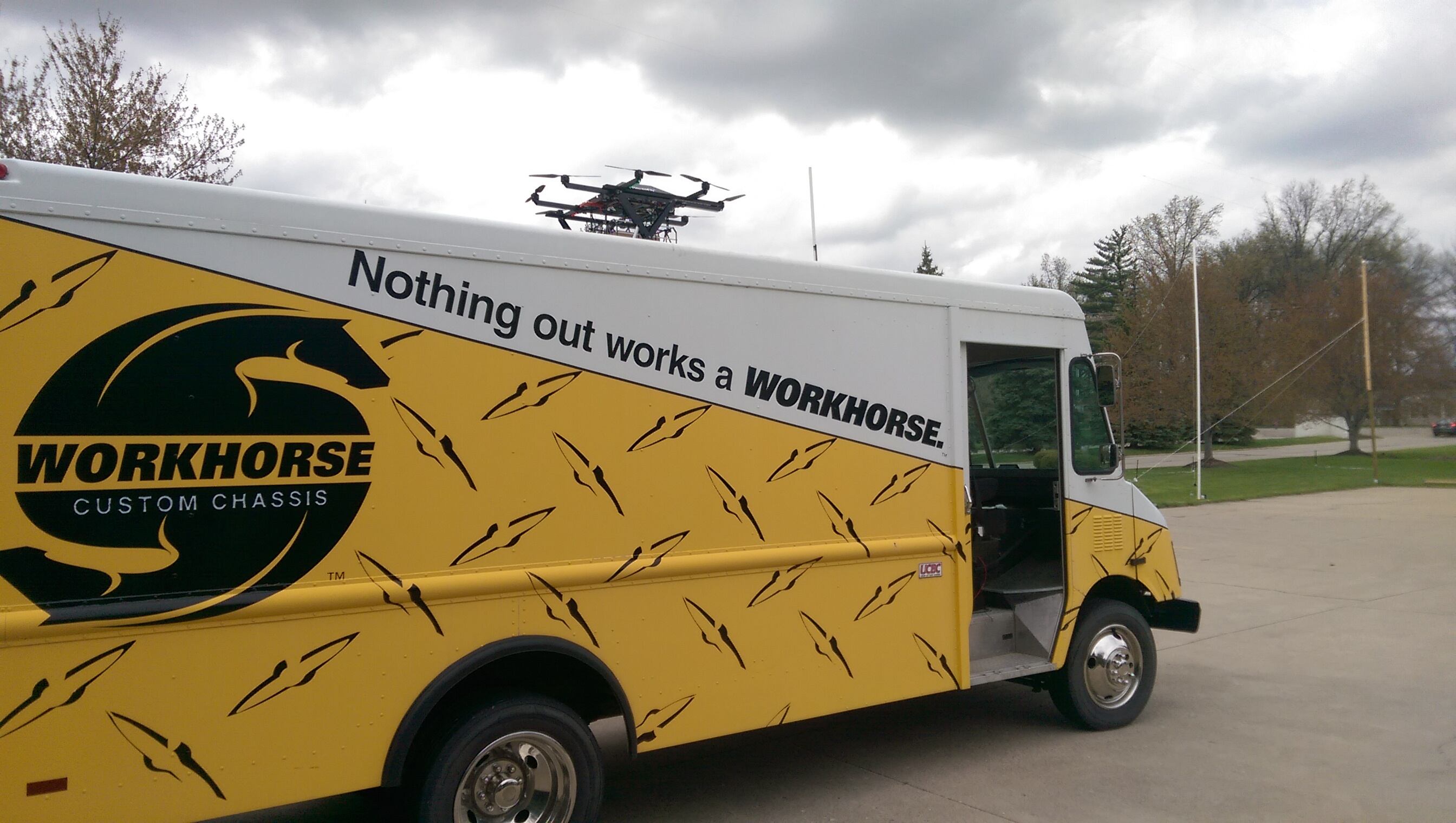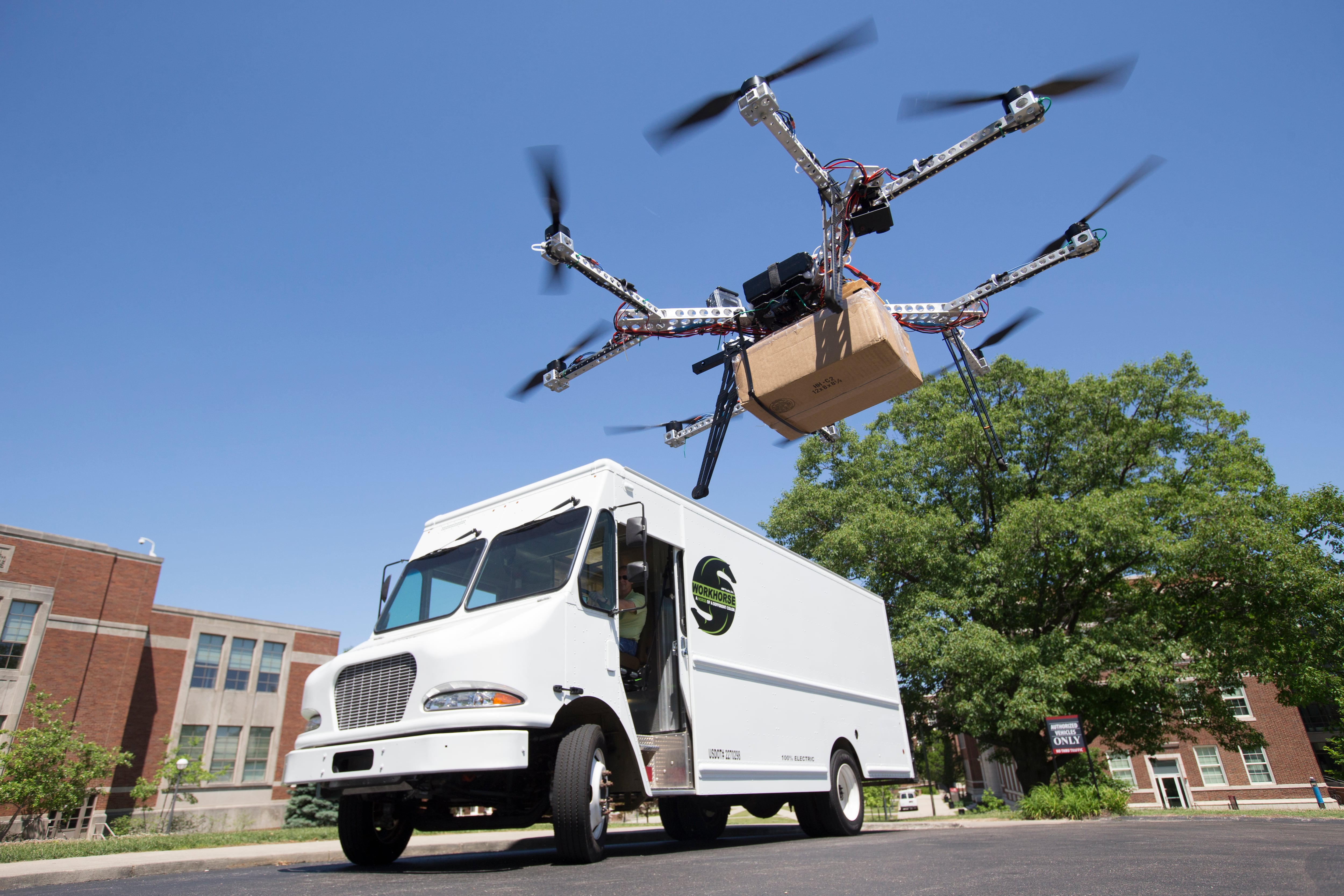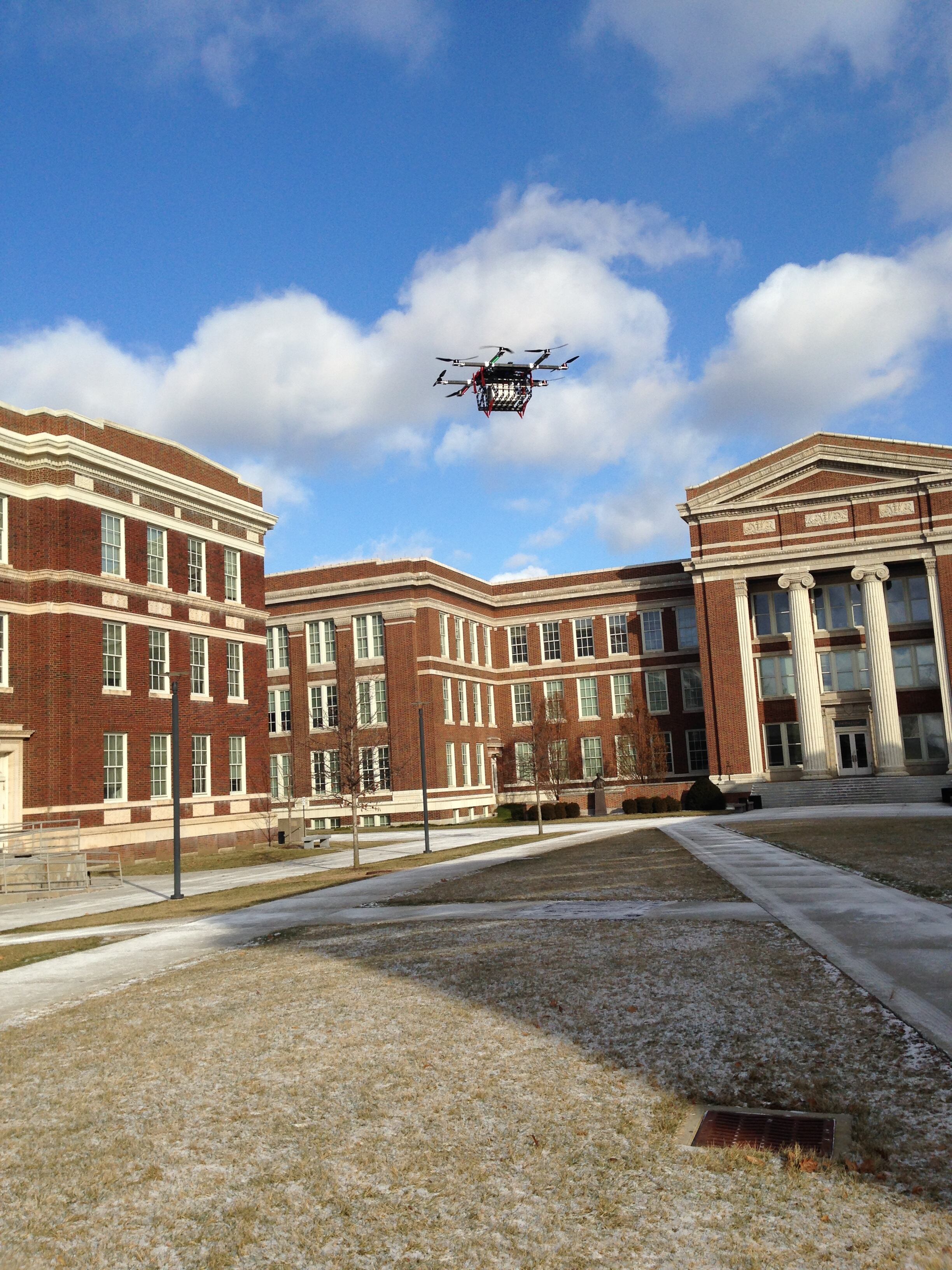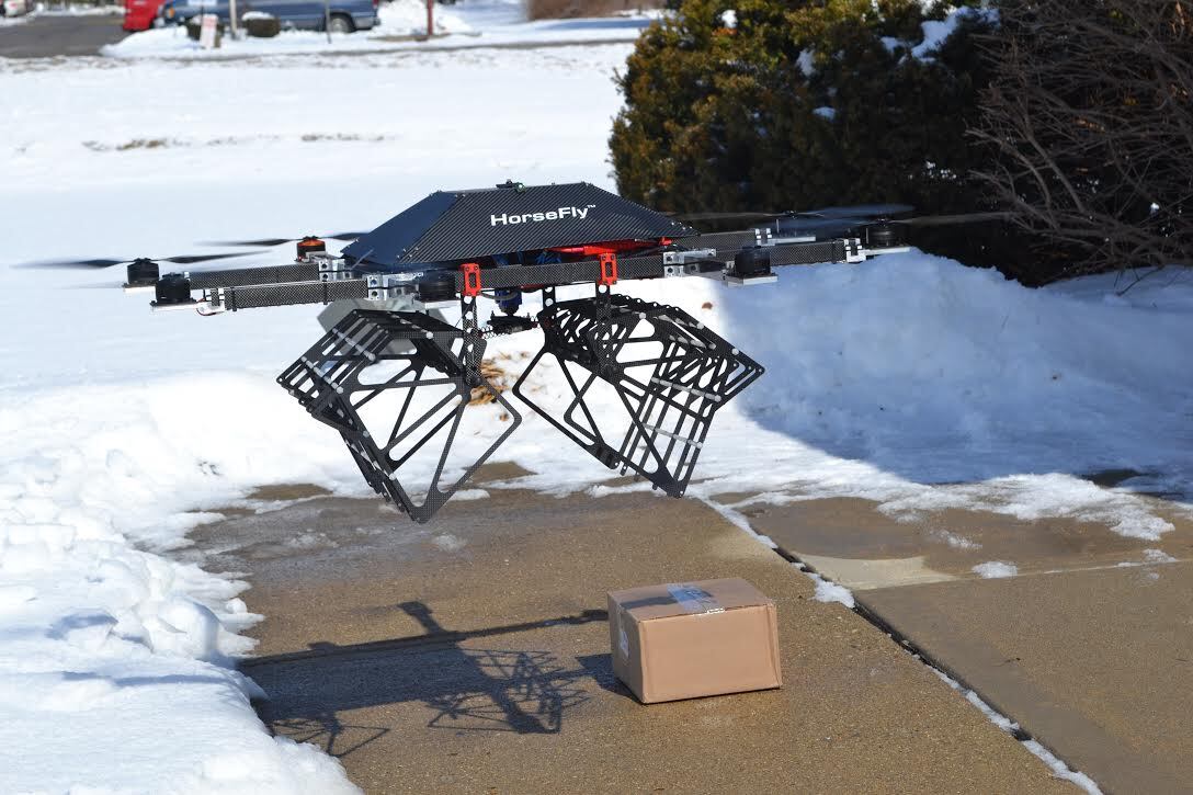 UC collaborates with AMP Electric Vehicles to create the ultimate unmanned aerial vehicle for safely delivering goods called HorseFly "octocopter" through an innovative partnership made possible by the University of Cincinnati Research Institute .UC collaborates with AMP Electric Vehicles to create the ultimate unmanned aerial vehicle for safely delivering goods called HorseFly "octocopter" through an innovative partnership made possible by the University of Cincinnati Research Institute .