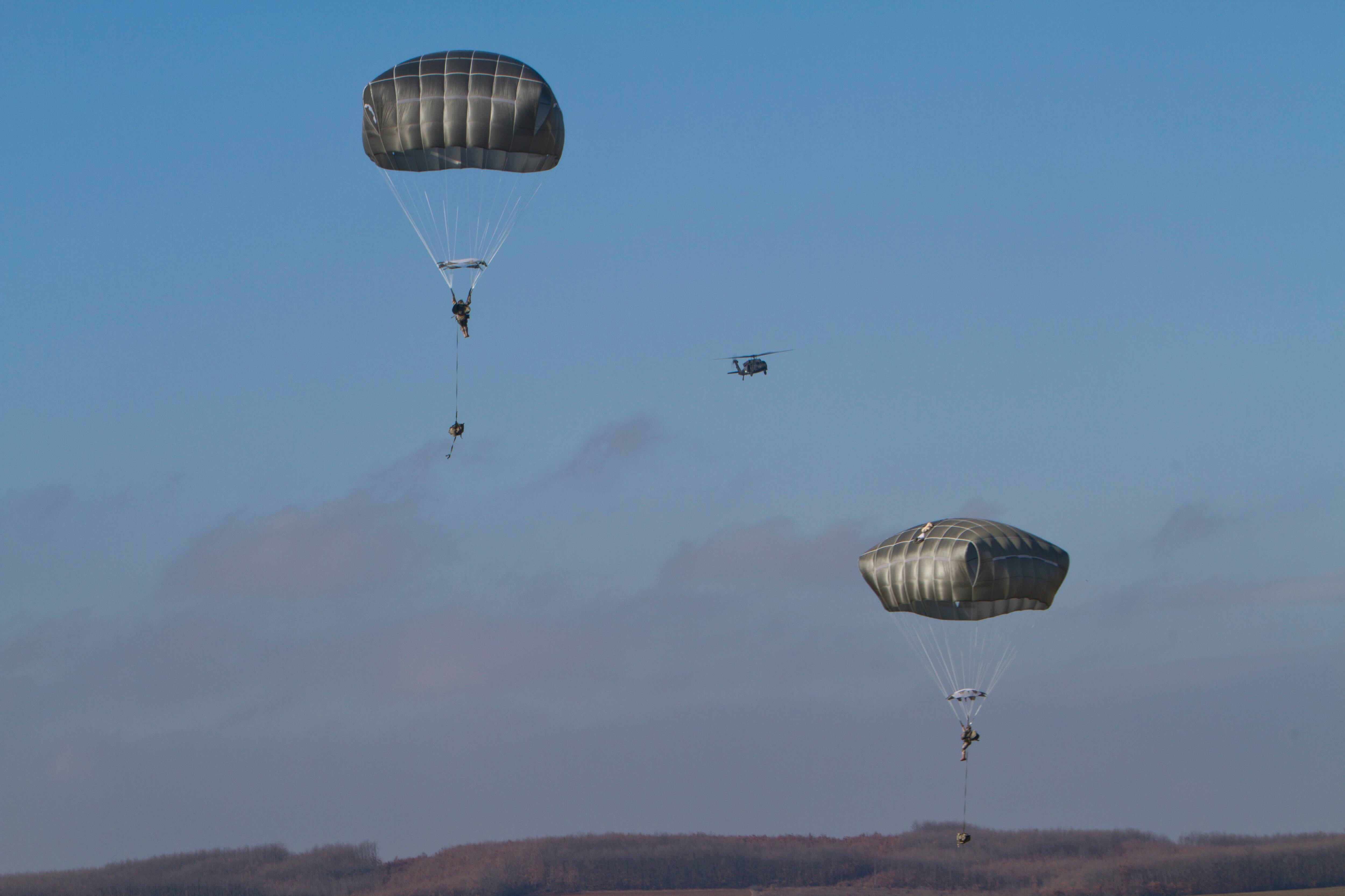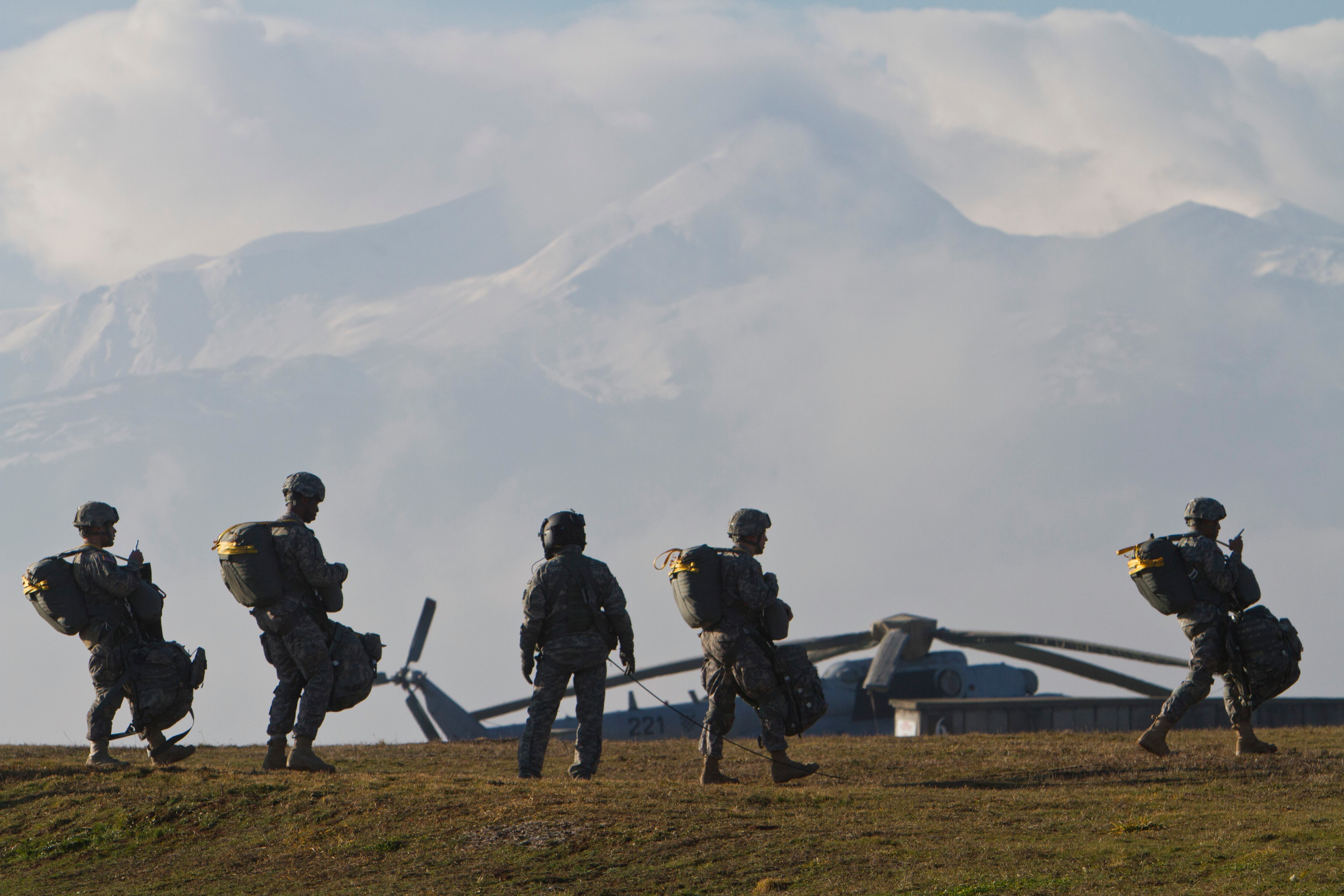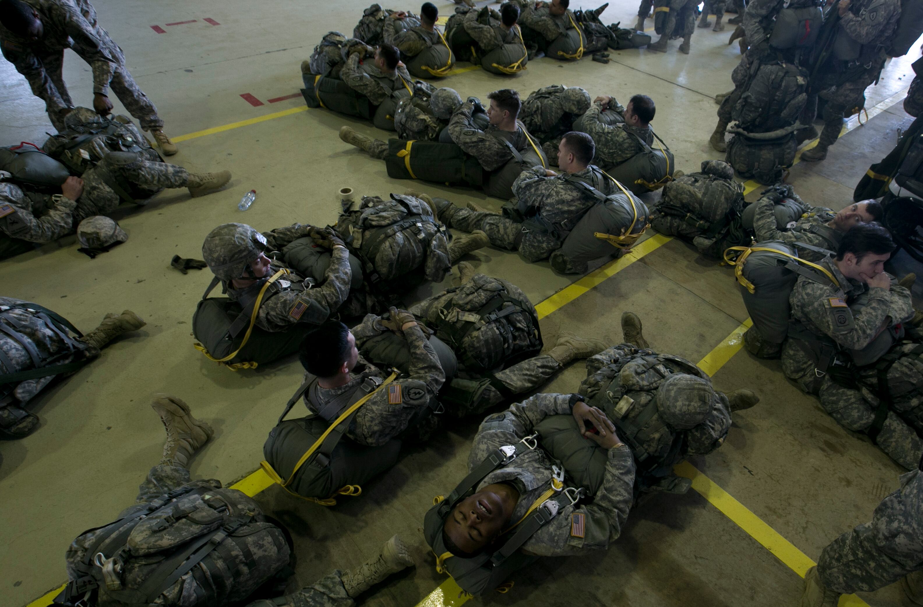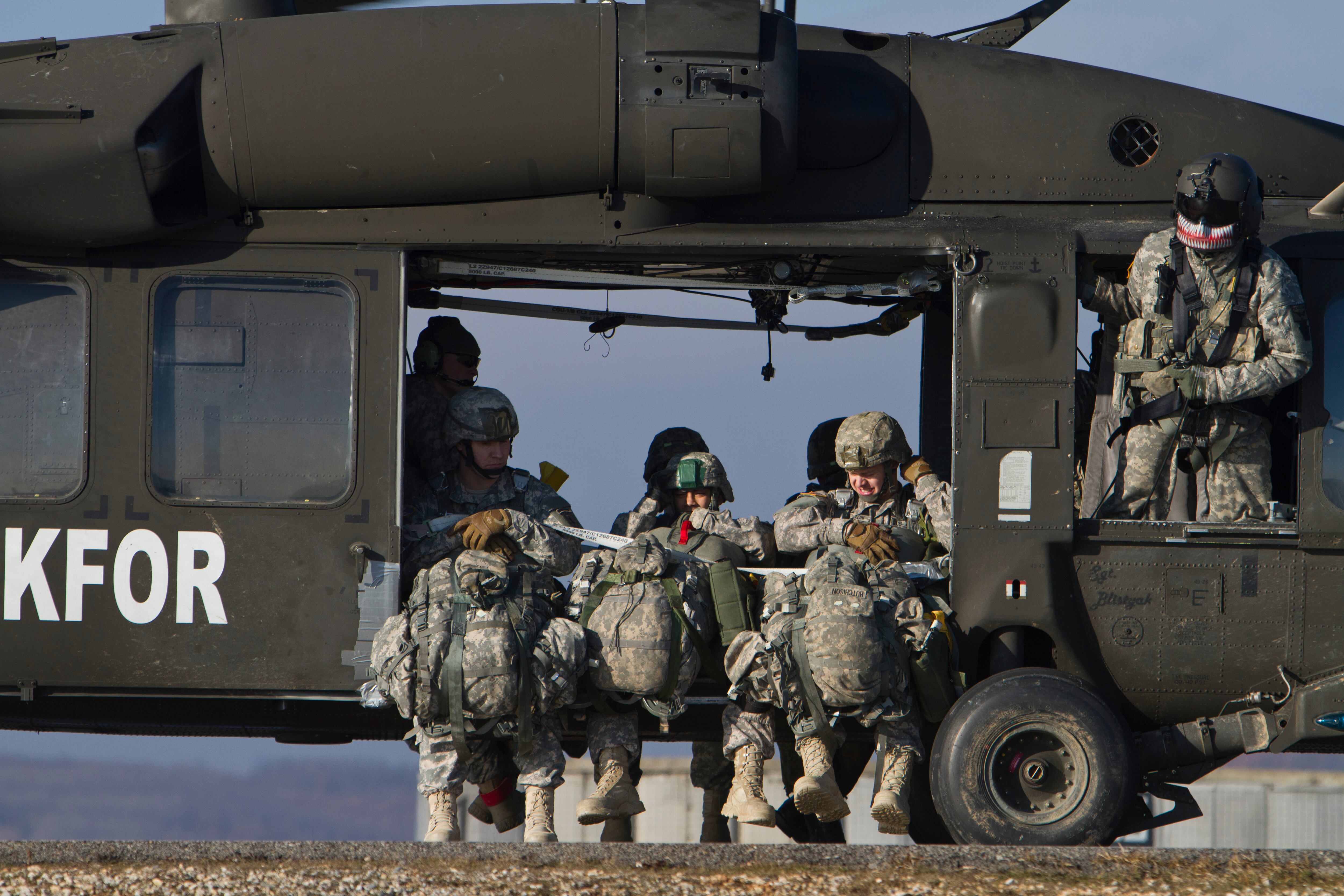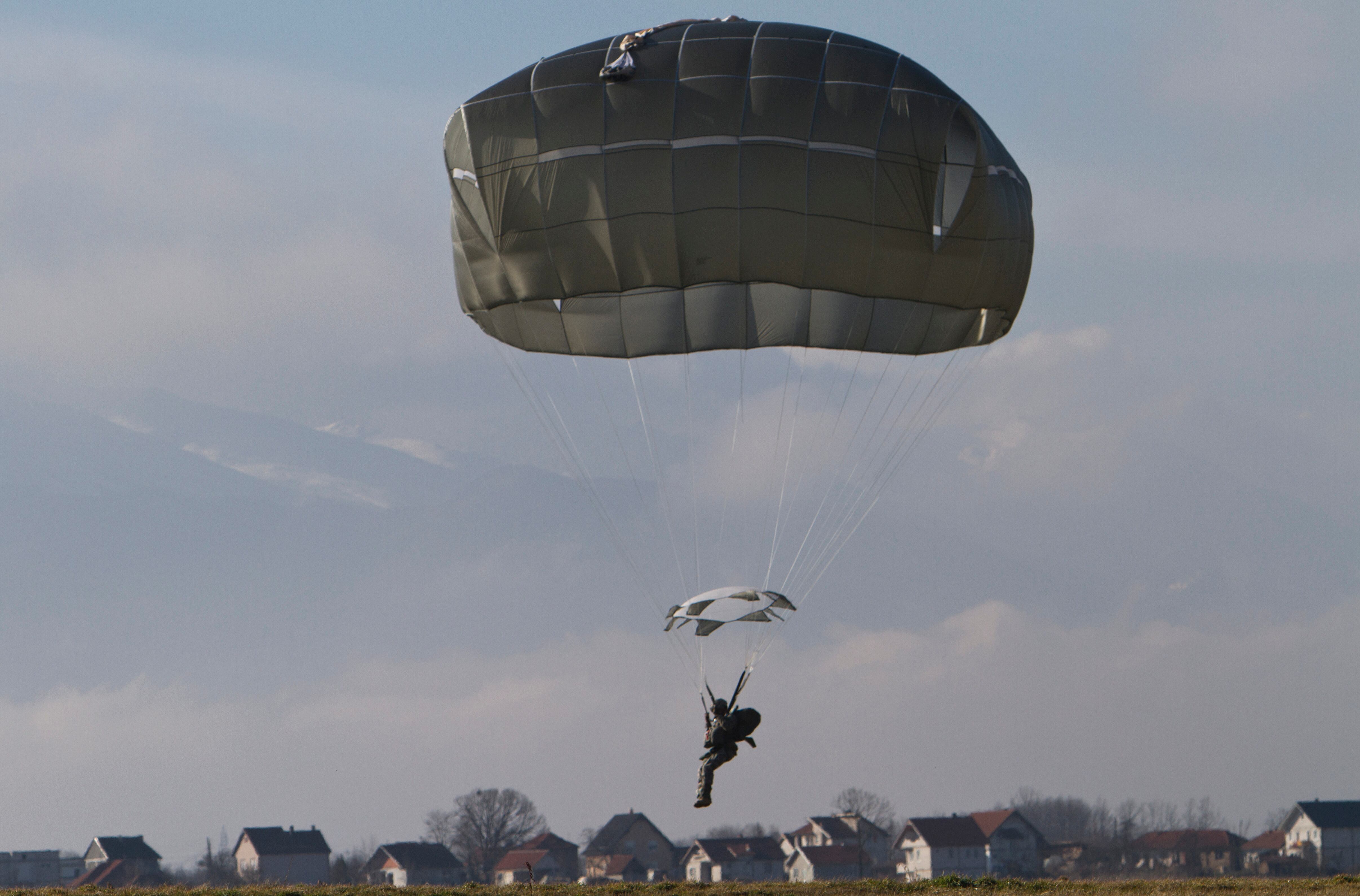 U.S Army soldier of the 4th Infantry Brigade, Combat team (Airborne) 25th Infantry Division, part of the NATO-led peacekeeping mission in Kosovo looks at a parachute jump training exercise in U.S military base Camp Bondsteel, near the village of Sojeve in Kosovo on Thursday, Jan. 22, 2015. U.S Army peacekeeping force regularly conducts parachute exercises to maintain proficiency in airborne operations on this deployment in Kosovo. (AP Photo/Visar Kryeziu)U.S Army soldiers of the 4th Infantry Brigade, Combat team (Airborne) 25th Infantry Division, part of the NATO-led peacekeeping mission in Kosovo during a parachute jump training exercise in U.S military base Camp Bondsteel, near the village of Sojeve in Kosovo on Thursday, Jan. 22, 2015. U.S Army peacekeeping force regularly conducts parachute exercises to maintain proficiency in airborne operations on this deployment in Kosovo. (AP Photo/Visar Kryeziu)U.S Army soldiers of the 4th Infantry Brigade, Combat team (Airborne) 25th Infantry Division, part of the NATO-led peacekeeping mission in Kosovo during a parachute jump training exercise in U.S military base Camp Bondsteel, near the village of Sojeve in Kosovo on Thursday, Jan. 22, 2015. U.S Army peacekeeping force regularly conducts parachute exercises to maintain proficiency in airborne operations on this deployment in Kosovo. (AP Photo/Visar Kryeziu)U.S Army soldiers of the 4th Infantry Brigade, Combat team (Airborne) 25th Infantry Division, part of the NATO-led peacekeeping mission in Kosovo rest before a parachute jump training exercise in the U.S military base Camp Bondsteel, near the village of Sojeve in Kosovo on Thursday, Jan. 22, 2015. U.S Army peacekeeping force regularly conducts parachute exercises to maintain proficiency in airborne operations on this deployment in Kosovo. (AP Photo/Visar Kryeziu)U.S Army soldiers of the 4th Infantry Brigade, Combat team (Airborne) 25th Infantry Division, part of the NATO-led peacekeeping mission in Kosovo secure the landing zone during a parachute jump training exercise in U.S military base Camp Bondsteel, near the village of Sojeve in Kosovo on Thursday, Jan. 22, 2015. U.S Army peacekeeping force regularly conducts parachute exercises to maintain proficiency in airborne operations on this deployment in Kosovo. (AP Photo/Visar Kryeziu)U.S Army soldiers of the 4th Infantry Brigade, Combat team (Airborne) 25th Infantry Division, part of the NATO-led peacekeeping mission in Kosovo packs his parachute after a parachute jump training exercise in U.S military base Camp Bondsteel, near the village of Sojeve in Kosovo on Thursday, Jan. 22, 2015. U.S Army peacekeeping force regularly conducts parachute exercises to maintain proficiency in airborne operations on this deployment in Kosovo. (AP Photo/Visar Kryeziu)U.S Army pilot of the 4th Infantry Brigade, Combat team (Airborne) 25th Infantry Division, part of the NATO-led peacekeeping mission in Kosovo prepares for a parachute jump training exercise in U.S military base Camp Bondsteel, near the village of Sojeve in Kosovo on Thursday, Jan. 22, 2015. U.S Army peacekeeping force regularly conducts parachute exercises to maintain proficiency in airborne operations on this deployment in Kosovo. (AP Photo/Visar Kryeziu)U.S Army soldiers of the 4th Infantry Brigade, Combat team (Airborne) 25th Infantry Division, part of the NATO-led peacekeeping mission in Kosovo jump from UH-60 Black Hawk helicopter during a parachute jump training exercise in U.S military base Camp Bondsteel, near the village of Sojeve in Kosovo on Thursday, Jan. 22, 2015. U.S Army peacekeeping force regularly conducts parachute exercises to maintain proficiency in airborne operations on this deployment in Kosovo. (AP Photo/Visar Kryeziu)U.S Army soldiers of the 4th Infantry Brigade, Combat team (Airborne) 25th Infantry Division, part of the NATO-led peacekeeping mission in Kosovo parachutes down during a parachute jump training exercise in U.S military base Camp Bondsteel, near the village of Sojeve in Kosovo on Thursday, Jan. 22, 2015. U.S Army peacekeeping force regularly conducts parachute exercises to maintain proficiency in airborne operations on this deployment in Kosovo. (AP Photo/Visar Kryeziu)U.S Army soldiers of the 4th Infantry Brigade, Combat team (Airborne) 25th Infantry Division, part of the NATO-led peacekeeping mission in Kosovo parachute after jumping from UH-60 Black Hawk helicopters during a parachute jump training exercise in U.S military base Camp Bondsteel, near the village of Sojeve in Kosovo on Thursday, Jan. 22, 2015. U.S Army peacekeeping force regularly conducts parachute exercises to maintain proficiency in airborne operations on this deployment in Kosovo. (AP Photo/Visar Kryeziu)