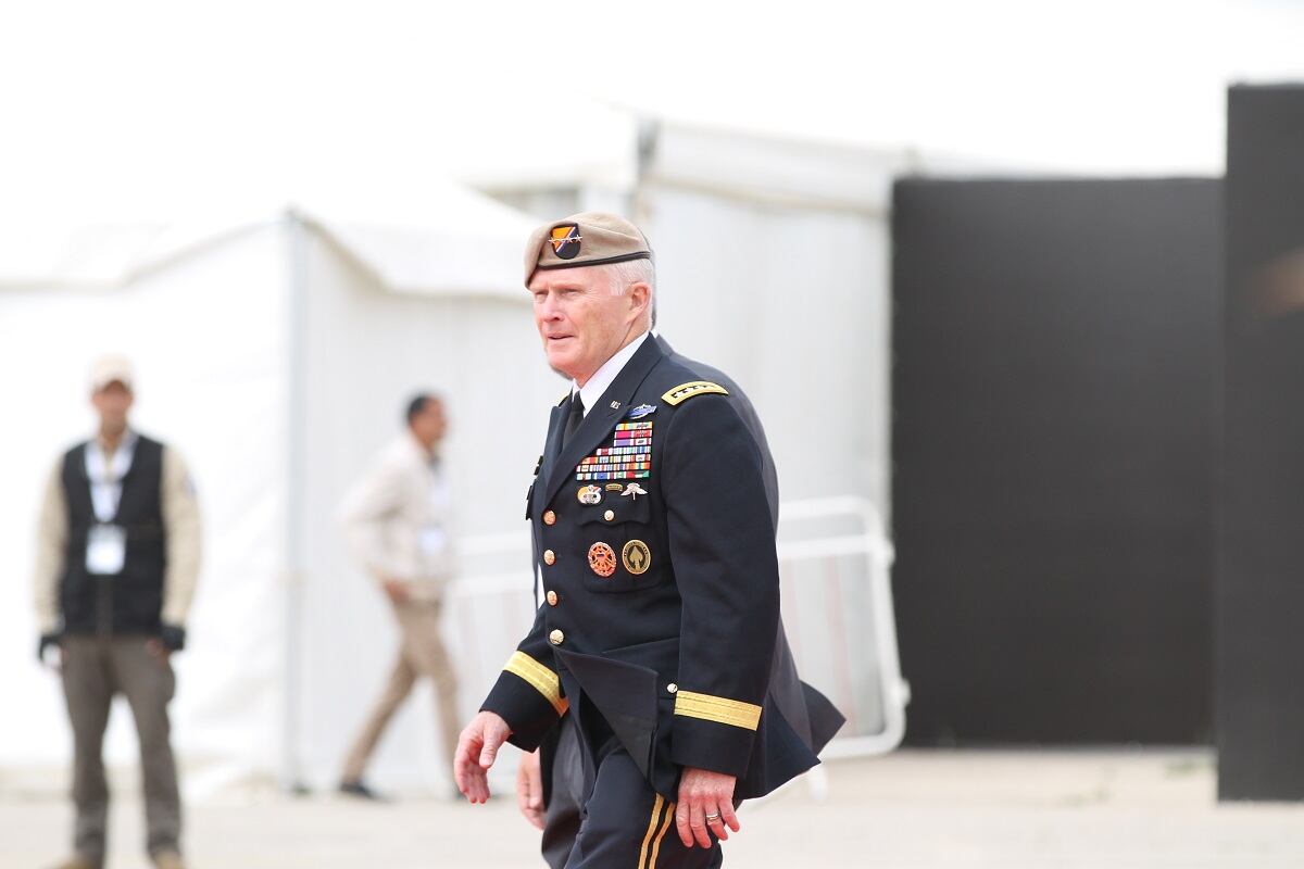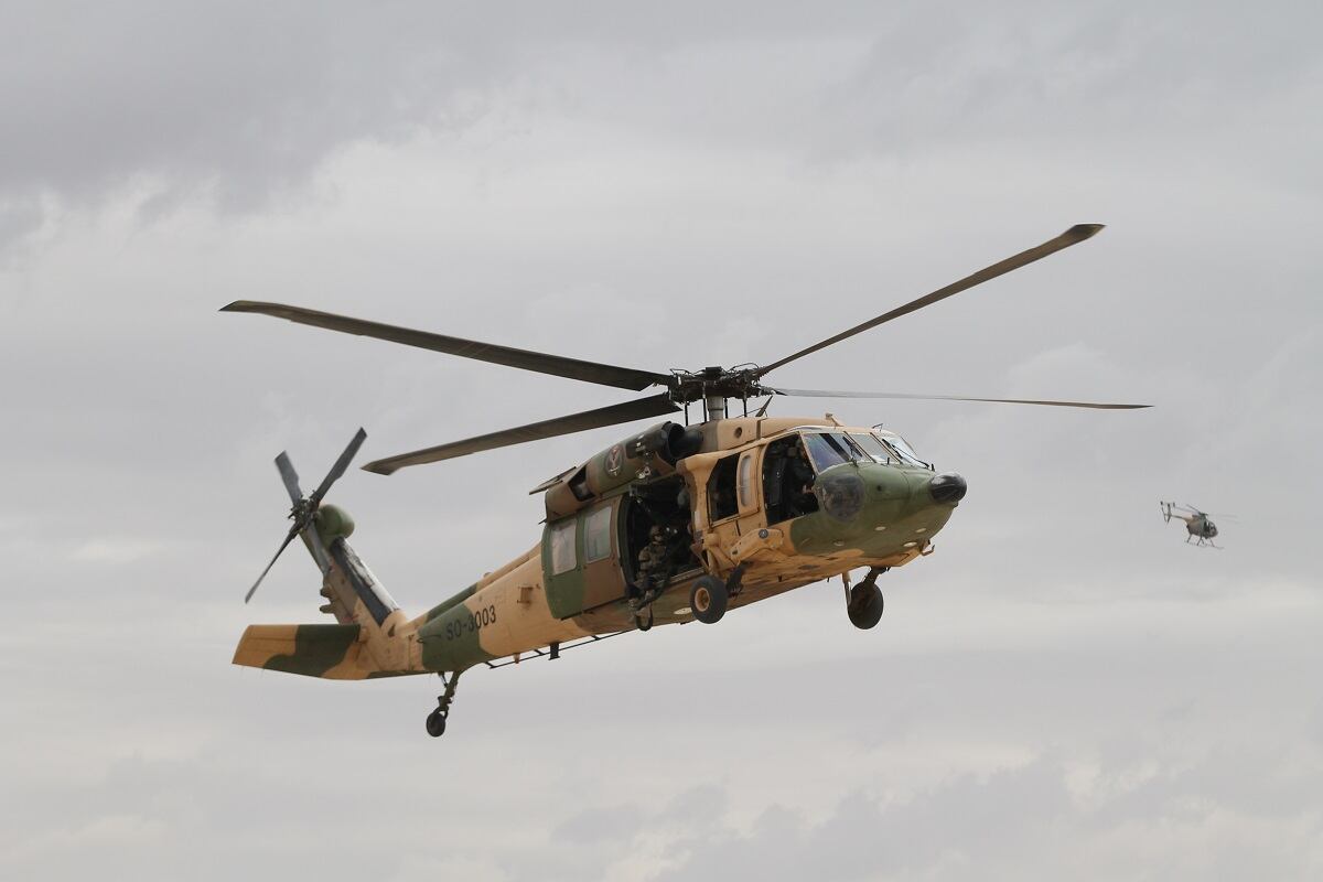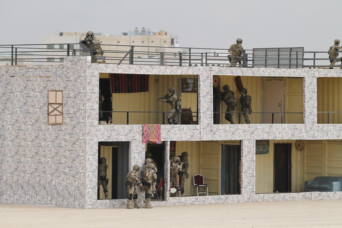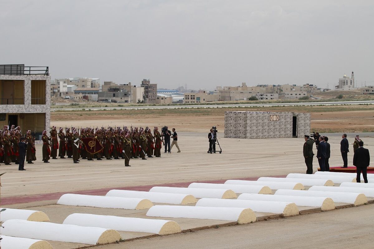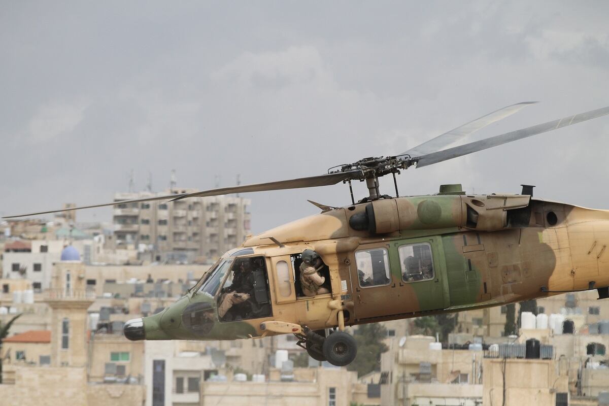 The Jordanian Royal Guard await the arrival of King Abdullah II at the first day of the Special Operations Exposition in Amman, Jordan, prior to a major military demonstration of the country's special forces capability. (Photo by Jen Judson/Defense News staff)Some Jordanian Royal Guardsmen stand on a runway preparing to greet the King of Jordan's vehicle as it arrives at SOFEX. Jordan has held the expo 12 times every other year to bring special operators throughout the Middle East and the rest of the world together. (Photo by Jen Judson/Defense News staff)The United States Special Operations Command commander Gen. Raymond Thomas arrives on the scene at SOFEX to witness the demonstration. He spoke at the Middle East Special Operations Commander Conference (MESOC) on May 7 just prior to the start of the exposition on how special operators can come together in the Middle East to better counter regional threats. He toured the show following the demonstration. (Photo by Jen Judson/Defense News staff)King Abdullah II stands on a stage overlooking his guardsmen prior to the demonstration of his forces. King Abdullah has championed SOFEX over the years having commanded Jordan's Special Forces. He became a major general in 1998. (Photo by Jen Judson/Defense News staff)Against the backdrop of Amman, the Jordanian Royal Guard exist the demonstration area to clear the way for the mission to begin. To kick off the demonstration, a 21-gun salute rang out across the airfield. (Photo by Jen Judson/Defense News staff)Over the loud speakers, it is announced that insurgents are hiding in a village and have been found by security forces. Pathfinders drop in from an overcast sky, beginning the mission to take out the insurgent stronghold. (Photo by Jen Judson/Defense News staff)A Jordanian UH-60 Mike-model Black Hawk utility helicopter lands on the outskirts of the simulated insurgent hideout to inject special operators to move in on the target. (Photo by Jen Judson/Defense News staff)Special forces prepare rappel from a UH-60 L-model Black Hawk above the roof of an insurgent infested hideout. (Photo by Jen Judson/Defense News staff)As insurgents hide below, special forces, including a military working dog, stealthily drop to the roof from the UH-60L. (Photo by Jen Judson/Defense News staff)The special forces begin their infiltration of the insurgents' lair from the ground and from the roof as a Black Hawk hovers over head. (Photo by Jen Judson/Defense News staff)Jordanian special forces search for insurgents throughout the building as a firefight ensues. (Photo by Jen Judson/Defense News staff)A Jordanian SOF AH-1F Cobra provides cover to the operators on the ground during the mission to take out the insurgents. (Photo by Jen Judson/Defense News staff)A Jordanian AH-6i Little Bird, which is also used prominently by U.S. Special Operations Forces, passes overhead as a firefight culminates on the ground with insurgents getting captured or killed. (Photo by Jen Judson/Defense News staff)A Jordanian Super Puma flies over the action. (Photo by Jen Judson/Defense News staff)A Jordanian Black Hawk looms overhead as it prepares to extract an injured SOF operator from the intense firefight below. (Photo by Jen Judson/Defense News staff)After a wounded SOF operator is evacuated via a different Black Hawk, a unit prepares to move out after accomplishing the mission of driving insurgents out of their safe haven and capturing the survivors among them. (Photo by Jen Judson/Defense News staff)With special operators in tow, the Black Hawk takes off over the Amman sky line. (Photo by Jen Judson/Defense News staff)As the demonstration came to a close, Jordanian helicopters flew by bearing the flag of Jordan, the Jordanian special forces flag and a SOFEX flag. (Photo by Jen Judson/Defense News staff)