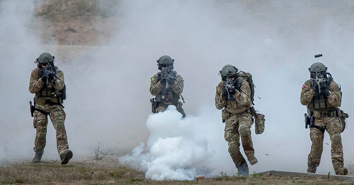 South Korean soldiers look at ribbons with inscriptions calling for peace and reunification displayed on a military fence at the Imjingak peace park near the Demilitarized Zone dividing the two Koreas in the border city of Paju on June 11, 2018. (Jung Yeon-Je/AFP via Getty Images)North Korean Army soldiers stand beneath the entrance to a pavilion before the Military Demarcation Line at the truce village of Panmunjom on the North Korean side of the Demilitarized Zone on June 11, 2018. (Ed Jones /AFP via Getty Images)A Rafale fighter jet of the French Navy performs during the International seaplane show in Biscarrosse, southwestern France, on June 9, 2018. (Nicolas Tucat/AFP via Getty Images)Military tanks run from smoke during the annual Han Kuang exercises at an air base in Taichung County, Taiwan, on June 7, 2018. (Chiang Ying-ying/AP)Two Wiesel armored fighting vehicles of the German armed forces maneuver through a forest during Thunder Storm 2018, a multinational NATO military exercise, on June 7, 2018, near Pabrade, Lithuania. (Sean Gallup/Getty Images)French President Emmanuel Macron awards officers during the "prise d'armes" military ceremony on June 11, 2018, at the Invalides in Paris. (ludovic Marin/AFP via Getty Images)At the Trooping The Colour ceremony on June 9, 2018, in London, England, marks the official birthday of the sovereign, even though the Queen's actual birthday is on April 21. (Dan Kitwood/Getty Images)Palestinian protesters throw stones during clashes with Israeli soldiers following a weekly demonstration against the expropriation of Palestinian land by Israel in the village of Kfar Qaddum, near Nablus in the occupied West Bank, on June 8, 2018. (Jaafar Ashtiyeh/AFP via Getty Images)NATO soldiers of Lithuania take part in the military exercise Saber Strike 2018 at the Training Range in Pabrade, north of Vilnius, Lithuania, on June 11, 2018. (Mindaugas Kulbis/AP)An Israeli Army drone throws tear gas grenades on Palestinian protesters on June 8, 2018. (Jack Guez/AFP via Getty Images)Israeli soldiers take position along the border with the Gaza strip as they confront Palestinian protesters on June 8, 2018. (Jack Guez/AFP via Getty Images)Team Air Force veteran Sr. Airman Brett Campfield competes in the visually impaired category for archery during the 2018 DoD Warrior Games at the Air Force Academy in Colorado Springs, Colo., on June 7, 2018. (EJ Hersom/U.S. Defense Department)Paratroopers from the 82nd Airborne Division from Fort Bragg, North Carolina, reach the ground after jumping from a U.S. Air Force C-17 aircraft during a Saber Strike 2018 military drill in Lithuania on June 8, 2018. (Mindaugas Kulbis/AP)An AH-64 Apache attack helicopter releases flares during the Han Kuang drill in Taichung, central Taiwan, on June 7, 2018. (Sam Yeh/AFP via Getty Images)A KZO reconnaissance drone of the German armed forces launches with the help of a booster rocket during the Thunder Storm 2018 multinational NATO military exercises on June 7, 2018, near Pabrade, Lithuania. (Sean Gallup/Getty Images)Russian President Vladimir Putin, center, reviews a military honor guard with Chinese President Xi Jinping, left, during a welcoming ceremony outside the Great Hall of the People in Beijing on June 8, 2018. (Greg Baker/AFP via Getty Images)The Philippine Navy band plays a marching song to welcome the Russian Navy anti-submarine ship Admiral Vinogradov as it docks for a five-day goodwill visit along with another ship, Admiral Tributs, and the sea tanker Pechenga on June 9, 2018. (Bullit Marquez/AP)German soldiers with the 3rd Panzer Battalion compete in the Tanker Olympics task during the Strong Europe Tank Challenge on June 8, 2018. (Gertrud Zach/U.S. Army)
