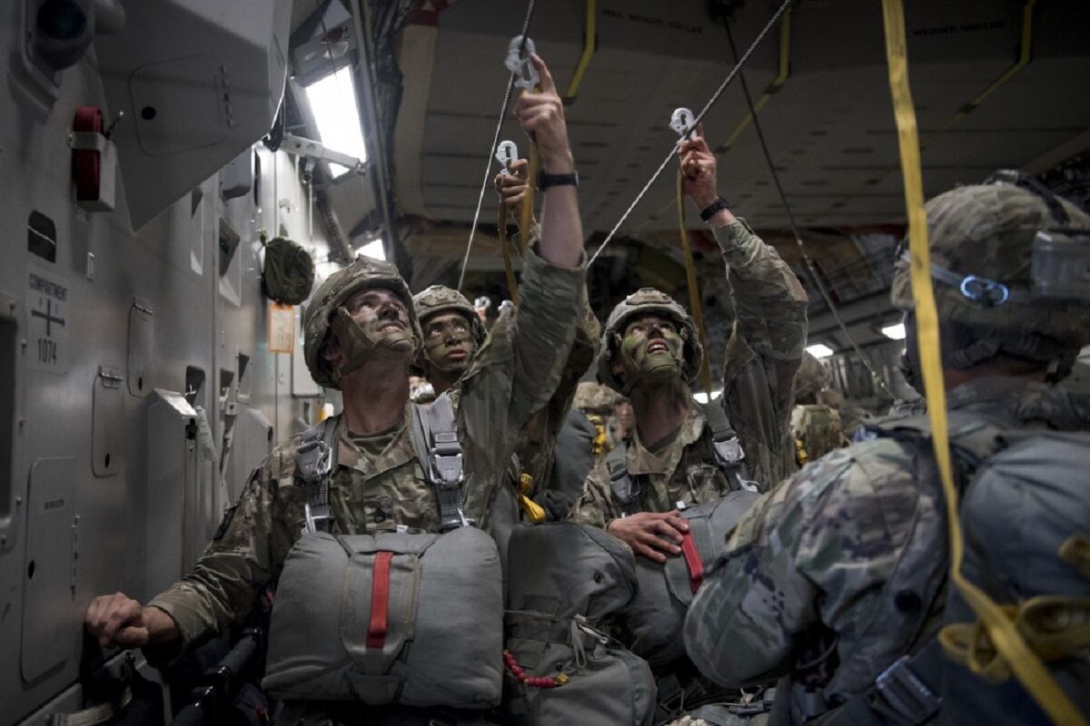 A U.S. Air Force C-17 Globemaster III from Joint Base Charleston, S.C., is prepped to fly to Pope Army Air Field, N.C., on June 5, 2018, in preparation for Exercise Swift Response 18. (U.S. Air Force)U.S. Army paratroopers assigned to the 82nd Airborne Division on Fort Bragg, N.C., and British Army paratroopers assigned to the 3rd Regiment Parachute Battalion out of Colchester, England, rig their parachutes in preparation for a jump from a C-17 Globemaster III over Latvia during Exercise Swift Response 18 on June 8. (U.S. Air Force)British Army paratroopers prepare to jump from a C-17 Globemaster III, flown by U.S. Air Force personnel, as part of Swift Response 18. (U.S. Air Force)Airborne forces from nine nations participated in the exercise, including Israel, Italy, Latvia, Lithuania, Poland, Portugal, Spain, the United Kingdom and the United States. (U.S. Air Force)A U.S. Army paratrooper jumps from a C-17 Globemaster III over Latvia during Exercise Swift Response 18 on June 8. (U.S. Air Force)U.S. Army paratroopers with the 3rd Brigade Combat Team, 82nd Airborne Division prepare to land after jumping from a U.S. Air Force C-17 Globemaster III at a training area near Rukla, Lithuania, on June 9, 2018. (U.S. Army)Spc. Lucas Underwood, a paratrooper assigned to the U.S. Army's 1st Battalion, 508th Infantry Regiment, 3rd Brigade Combat Team, 82nd Airborne Division, pulls security after jumping from an aircraft near Rukla, Lithuania, as part of Swift Response 18. (U.S. Army)U.S. Army paratroopers ruck to a meeting point after jumping from an aircraft near Rukla, Lithuania, as part of Swift Response 18. (U.S. Army)