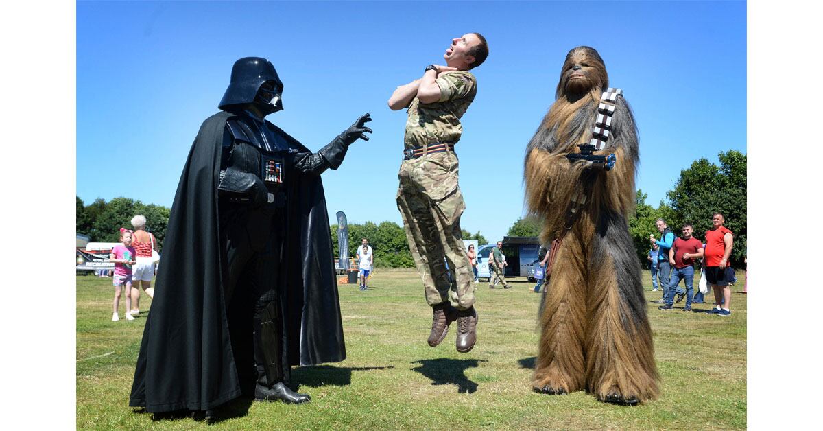 Members of the Chinese People's Liberation Army perform drills during a demonstration at an open day at the Shek Kong Barracks on June 30, 2018, in Hong Kong. (Anthony Kwan/Getty Images)Croatian soldiers of the NATO-led peacekeeping mission in Kosovo watch as a helicopter takes off during activities marking the International KFOR Day at the military camp in Pristina on July 1, 2018. (Armend Nimani/AFP via Getty Images)Military Recovery mechanic Ian Pew, center, clashes with a man dressed as Star Wars character Darth Vader as they put on a show as part of the National Armed Forces Day in Stirling, England, on June 30, 2018. (Mark Owens/British Ministry of Defence via AP)A French military diver swims July 2, 2018, above the wreck of a U.S. Army Air Force P-47 Thunderbolt (Warthog) fighter plane, which crashed in 1944 during World War II off the French Mediterranean island of Corsica. (Boris Horvat/AFP via Getty Images)Military personnel parade past British Prime Minister Theresa May, center, and dignitaries during the national Armed Forces Day celebrations at Llandudno, north Wales, on June 30, 2018. (Oli Scarff/AFP via Getty Images)Syrian government forces hold their weapons during a government-guided tour in the village of al-Sourah, province of Daraa, on June 29, 2018. (Youssef Karwashan/AFP via Getty Images)Military aircraft enthusiasts watch as a U.S. Air Force F-15 fighter jet travels at low altitude through the "Mach Loop" series of valleys near Dolgellau, north Wales, on June 26, 2018. (Oli Scarff/AFP via Getty Images)The Royal Air Force Aerobic Team, the Red Arrows, perform an aerobatic display during the national Armed Forces Day celebrations at Llandudno, north Wales, on June 30, 2018. (Oli Scarff/AFP via Getty Images)Soldiers demonstrate their skills during a military parade at the Cherchell "Houari Boumediene" in Algiers on July 1, 2018. (Anis Belghoul/AP)Israeli soldiers walk past a bunker with a mobile artillery piece seen deployed near the border with Syria in the Israeli-annexed Golan Heights on July 1, 2018. (Jalaa Marey/AFP via Getty Images)