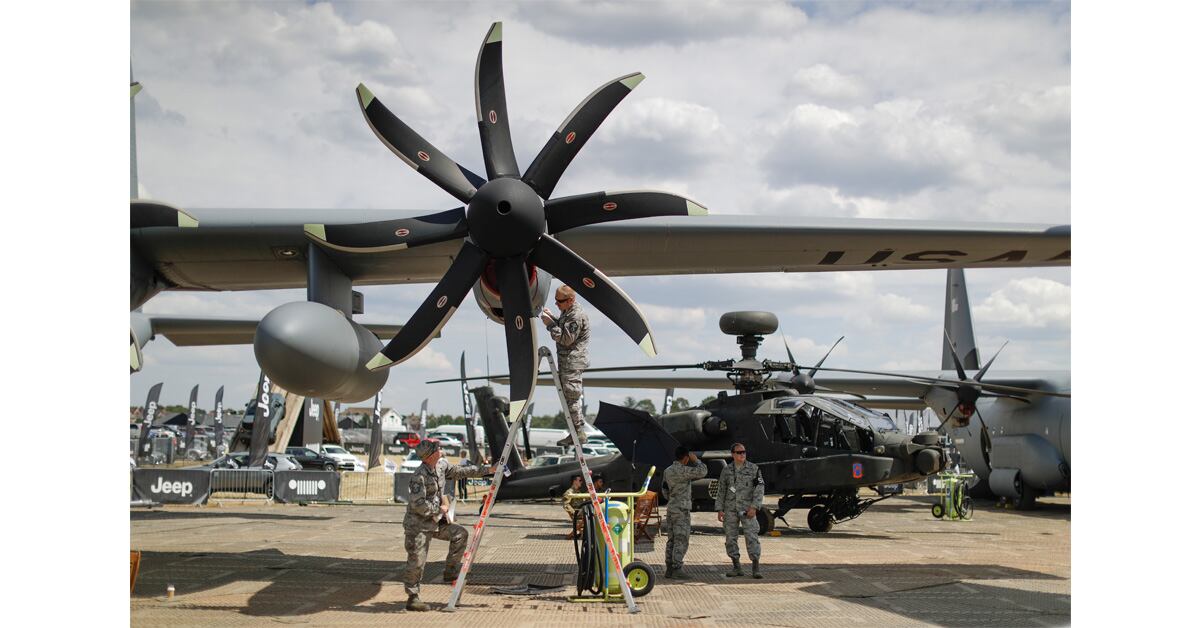 The Royal Air Force demonstrates a heritage flight for a crowd of spectators during the 2018 Royal International Air Tattoo at RAF Fairford, England, on July 14, 2018. This year’s RIAT celebrated the 100th anniversary of the RAF and highlighted the U.S.-U.K. alliance. (Tech Sgt. Brian Kimball/U.S. Air Force)Indian technicians from Tata Power and the Indian Border Security Force assemble an Israeli-made surveillance Aerostat Balloon in Ahmedabad on July 13, 2018. (Sam Panthaky/AFP via Getty Images)BAE Systems Hawks from the British Royal Air Force aerobatic team, the Red Arrows, perform at the Royal International Air Tattoo at RAF Fairford, England, on July 13, 2018. (Matt Cardy/Getty Images)Two Couteau Delta Mirage 2000Ds perform at the Royal International Air Tattoo at RAF Fairford, England, on July 13, 2018. (Matt Cardy/Getty Images)A soldier mounted on a U.K. Army Mobility Weapon-Mounted Installation Kit “Jackal” with the 1st The Queen's Dragoon Guards fires at a notional enemy during a lethality exercise with the Battle Group Poland at Orzysz, Poland, on July 14, 2018. (Spc. Hubert D. Delany III/U.S. Army)A C-135 leads a formation of four Rafale B military jets as they fly over the Champs-Elysees Avenue during the annual Bastille Day military parade in Paris on July 14, 2018. (Ludovic Marin/AFP via Getty Images)Sailors aboard the Arleigh Burke-class guided-missile destroyer Porter heave mooring line as the U.S. Navy ship departs Odessa, Ukraine, for the at-sea portion of exercise Sea Breeze, a U.S. and Ukraine co-hosted multinational maritime exercise held in the Black Sea. (MC1 Ryan Riley/U.S. Navy)A General Atomics Aeronautical Systems SkyGuardian drone arrives at RAF Fairford, England, after completing the first trans-Atlantic flight for such an aircraft on July 11, 2018. (Matt Cardy/Getty Images)Marines assigned to Special Purpose Marine Air-Ground Task Force—Crisis Africa, Logistics Combat Element 18.2 raise a radio antenna at Naval Air Station Sigonella, on July 11, 2018. (Cpl. Taylor W. Cooper/U.S. Marine Corps)Members of the public pose next to a mobile artillery weapon during a display titled "The French meet their armies" on the sidelines of the annual Bastille Day military parade on the Champs-Elysees avenue in Paris on July 14, 2018. (Jacques Demarthon/AFP via Getty Images)Airmen put a sticker on a C-130 at the Farnborough Airshow in England on July 16, 2018. (Matt Dunham/AP)Members of the 1st Division ride in their vehicles during the annual Bastille Day military parade on the Champs-Elysees avenue in Paris on July 14, 2018. (Ludovic Marin/AFP via Getty Images)Drones of the 61st Artillery Regiment are on display during the annual Bastille Day military parade on the Champs-Elysees avenue in Paris on July 14, 2018. (Ludovic Marin/AFP via Getty Images)A newly arrived light-attack Super Tucano lands after an air show during the presentation ceremony at the military air base in Bamako, Mali, on July 11, 2018. (Michele Cattani/AFP via Getty Images)A Ukrainian Ka-27 helicopter takes off from the Blue Ridge-class command-and-control ship Mount Whitney in the Black Sea during exercise Sea Breeze. The U.S. Navy ship was participating in the drill designed to enhance interoperability of the U.S. and Ukraine. (MC1 Justin Stumberg/U.S. Navy)