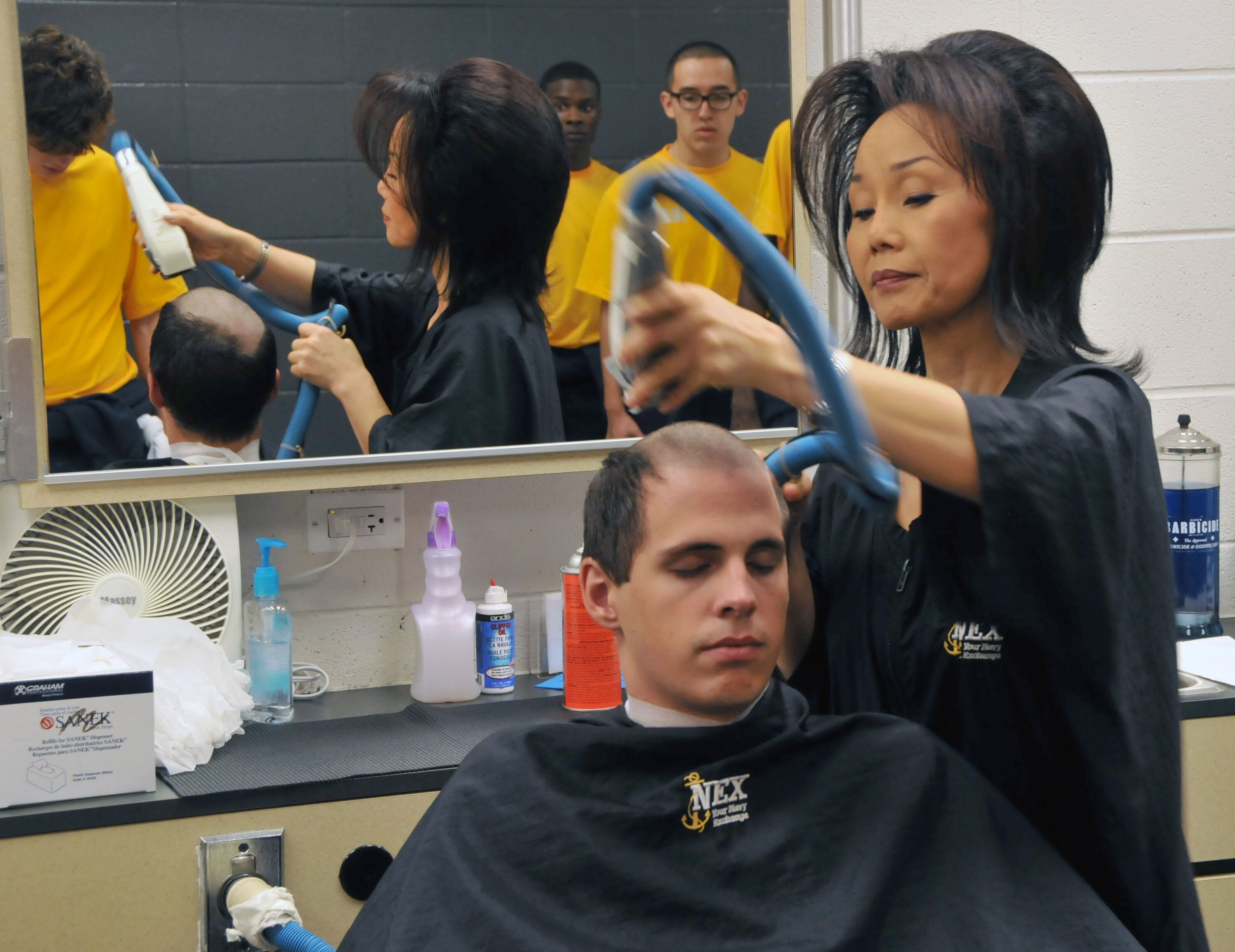 Commanding officers “may allow for additional hair length and bulk on the sides, top and back of the head. At no time will relaxed grooming interfere with the proper wearing of Navy head gear proper use of protective personal equipment (helmets, masks, hoods, etc.).”