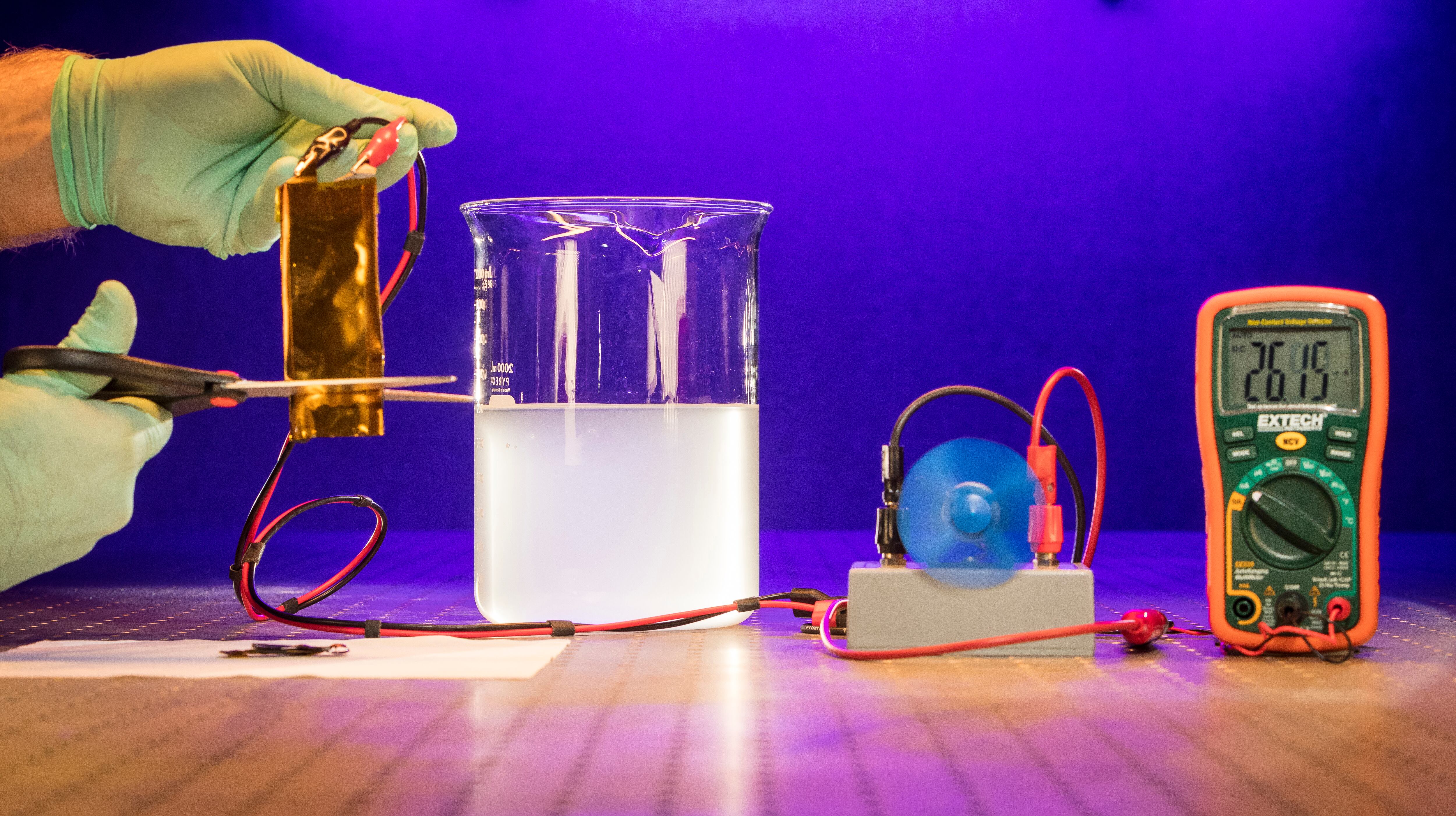 Researchers, in their quest to find a cuttable, flexible, waterproof battery, also wanted to develop a more stable energy source. They say water is the ideal medium.
