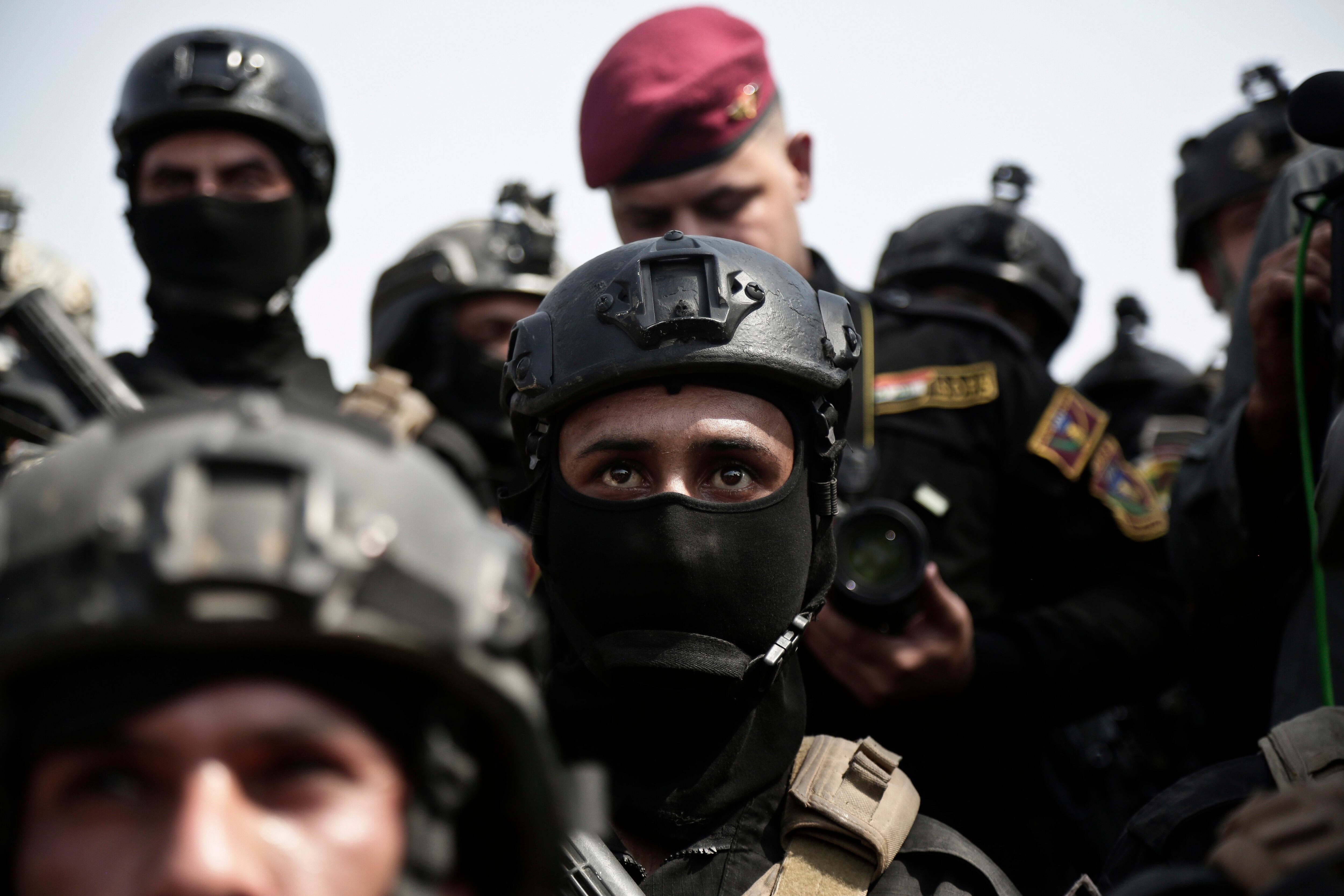 In this Aug. 13, file photo, a soldier from the 1st Battalion of the Iraqi Special Operations Forces listens to an address by his commander after a training exercise to prepare for the operation to re-take Mosul from Islamic State militants, in Baghdad, Iraq.