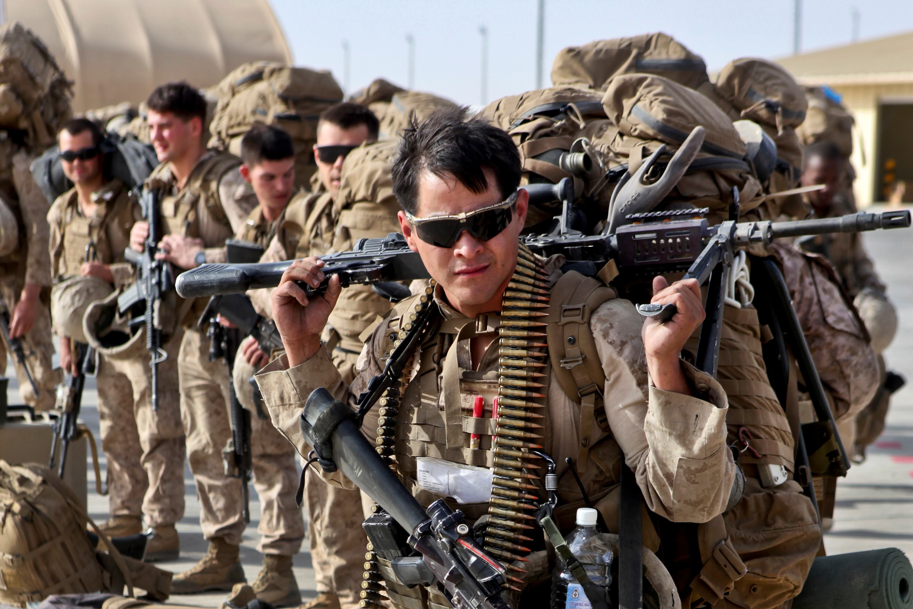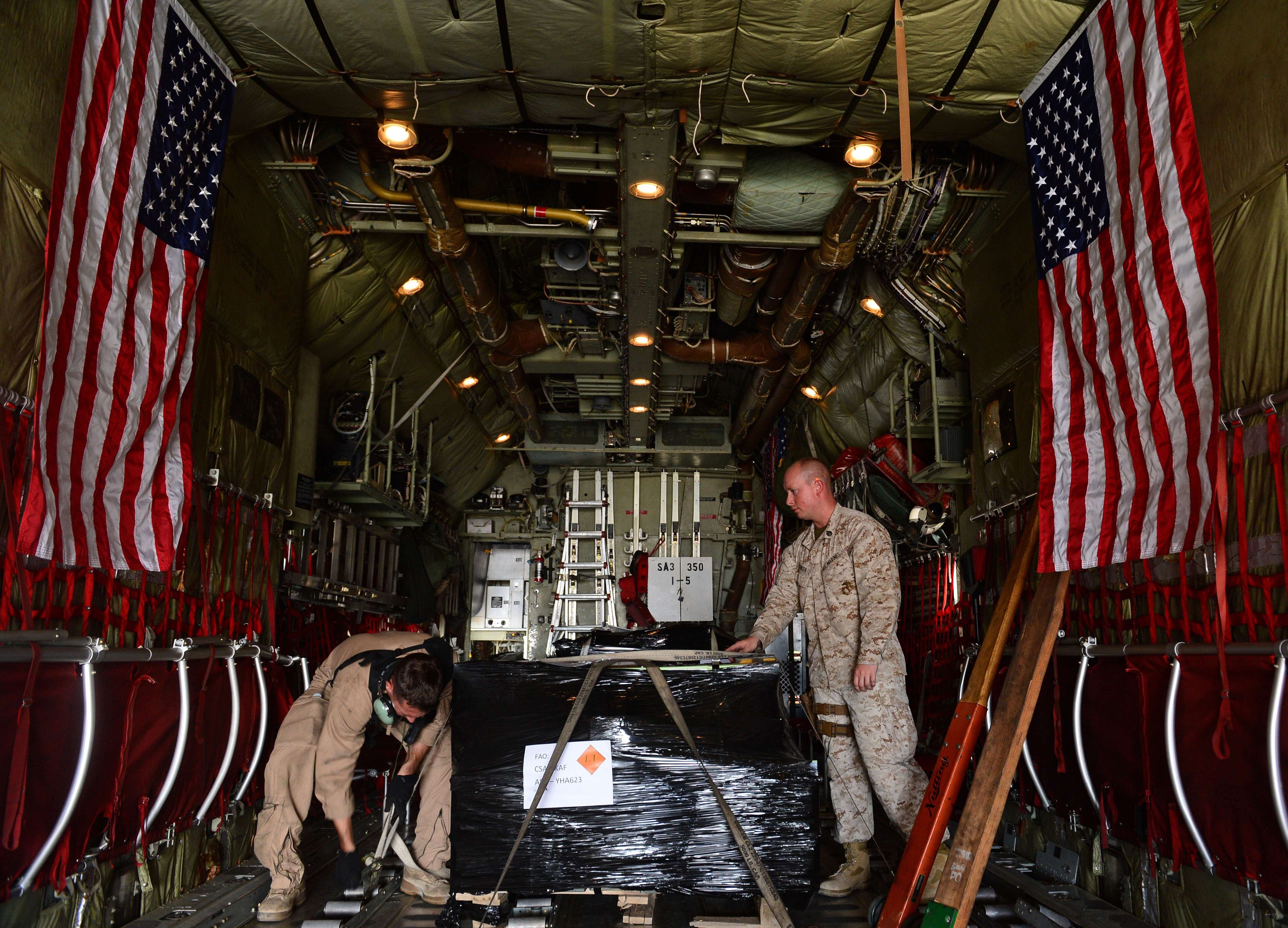 In this photograph taken on October 25, 2014, US Marines secure equipment onto a C-130 transport aircraft as they prepare to withdraw from the Camp Bastion-Leatherneck complex at Lashkar Gah in Helmand province. British forces October 26 handed over formal control of their last base in Afghanistan to Afghan forces, ending combat operations in the country after 13 years which cost hundreds of lives. The Union Jack was lowered at Camp Bastion in the southern province of Helmand, while the Stars and Stripes came down at the adjacent Camp Leatherneck -- the last US Marine base in the country. AFP PHOTO/WAKIL KOHSARWAKIL KOHSAR/AFP/Getty ImagesThunderbirds Solo pilots perform the Cross Over Break during a practice show at Forth Worth, Texas, Oct. 23, 2014. (U.S. Air Force photo/Tech. Sgt. Manuel J. Martinez)CAMP LEJUENE, N.C. (Oct. 26, 2014) Boatswain's Mate 2nd Class Ethan Walton directs a light armored vehicle off a landing craft air cushion. The Bataan Amphibious Ready Group is returning home after a deployment supporting maritime security operations, providing crisis response capability, increasing theater security cooperation and a forward naval presence. (U.S. Navy photo by Mass Communication Specialist 3rd Class Mark Andrew Hays/Released) 141026-N-JX484-051
