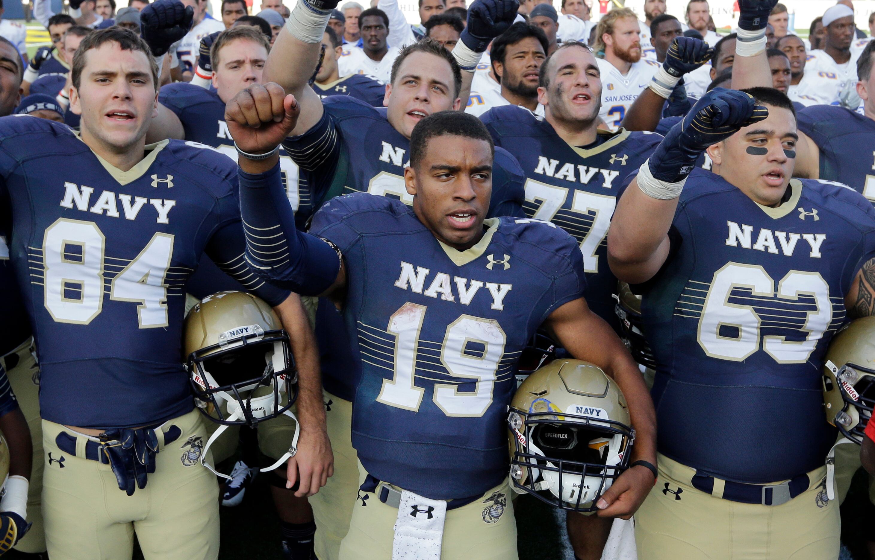 Marine Corps and Royal Air Force helicopters fly in formation after departing Camp Bastion, Afghanistan, Oct. 27, 2014. The Marine Corps ended operations in Helmand province and transferred the base to the Afghan National Army.Navy quarterback Keenan Reynolds (19) sings the U.S. Naval Academy's alma mater alongside teammates after an NCAA college football game against San Jose State in Annapolis, Md., Saturday, Oct. 25, 2014. Navy won 41-31. (AP Photo/Patrick Semansky)