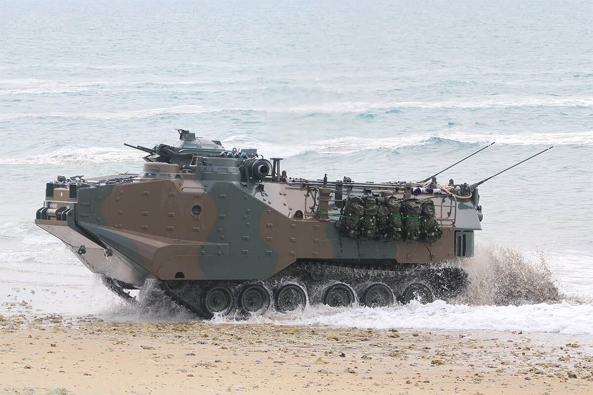 A Japan Ground Self-Defense Force CH-47JA Chinook heavy-lift helicopter lands at Bowen Airport, Australia, during a helicopter assault July 23, 2019. Two Chinooks from the JGSDF’s 1st Helicopter Brigade, normally based at Camp Kisarazu in Japan, were on the Japanese warships for the duration of the Talisman Sabre exercise. (Mike Yeo/Staff)Japanese troops move toward their objective during a helicopter assault during Exercise Talisman Sabre on July 23, 2019. (Mike Yeo/Staff)A Japanese recoilless rifle operator waits outside Bowen Airport, Australia, for orders to move out toward an objective during a helicopter assault drill. (Mike Yeo/Staff)A Japan Ground Self-Defense Force amphibious assault vehicle emerges from the surf in Bowen, Australia, during an amphibious assault drill on July 22, 2019. Japan is taking part in the biannual exercise with the United States, Australia, New Zealand and other countries. (Mike Yeo/Staff)Lt. Gen. Takayuki Onozuka, vice chief of the Japan Ground Self-Defense Force, and Deputy Chief of the Australian Army Maj. Gen. Anthony Rawlins arrive in Bowen, Australia, on July 22, 2019. This year’s exercise saw the largest Japanese contingent since it began participating in 2015, with two warships, four helicopters, several vehicles and a sizable troop contingent. (Mike Yeo/Staff)U.S. Marine Corps amphibious assault vehicles head for the beach at Bowen, Australia, on July 22, 2019, during an amphibious assault drill. The Japan Maritime Self-Defense Force landing ship tank JS Kunisaki and a Royal Australian Navy Canberra-class landing helicopter dock are seen the background. (Mike Yeo/Staff)The Japan Ground Self-Defense Force troops taking part in the Talisman Sabre exercise were from the newly formed Amphibious Rapid Deployment Brigade, which was raised for the defense of Japan’s remote southern islands that include the Senkaku group, whose ownership is disputed by China. (Mike Yeo/Staff)An Australian beachmaster gives instructions to the crew of a Japanese amphibious assault vehicle during Exercise Talisman Sabre on July 22, 2019. Japanese forces participated at two such events during the exercise. (Mike Yeo/Staff)Japan Ground Self-Defense Force troops disembark from their CH-47JA Chinook heavy-lift helicopter during a helicopter assault as part of Exercise Talisman Sabre on July 23, 2019 at Bowen Airport, Australia. (Mike Yeo/Staff)