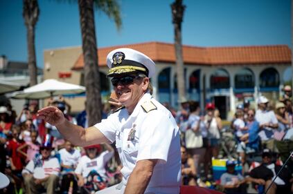 Vice Adm. Richard Brown, commander, Naval Surface Force, U.S. Pacific Fleet serves as grand marshal for the 70th Annual Independence Day Parade. (U.S. Navy/Mass Communication Specialist 2nd Class Nancy C. diBenedetto)