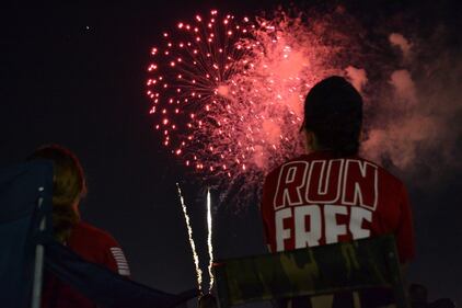 Lt. Lauren McKinley, a reservist with the US Navy (right) and Capt. Carrie Lauderdale (left) enjoy a dazzling fireworks display at Norfolk's Town Point Park. The fireworks display was part of the City of Norfolk's 36th Annual Great American Picnic at Town Point Park, which honors the country's 242nd Birthday. (U.S. Navy/Civilian Public Affairs Officer Max Lonzanida)