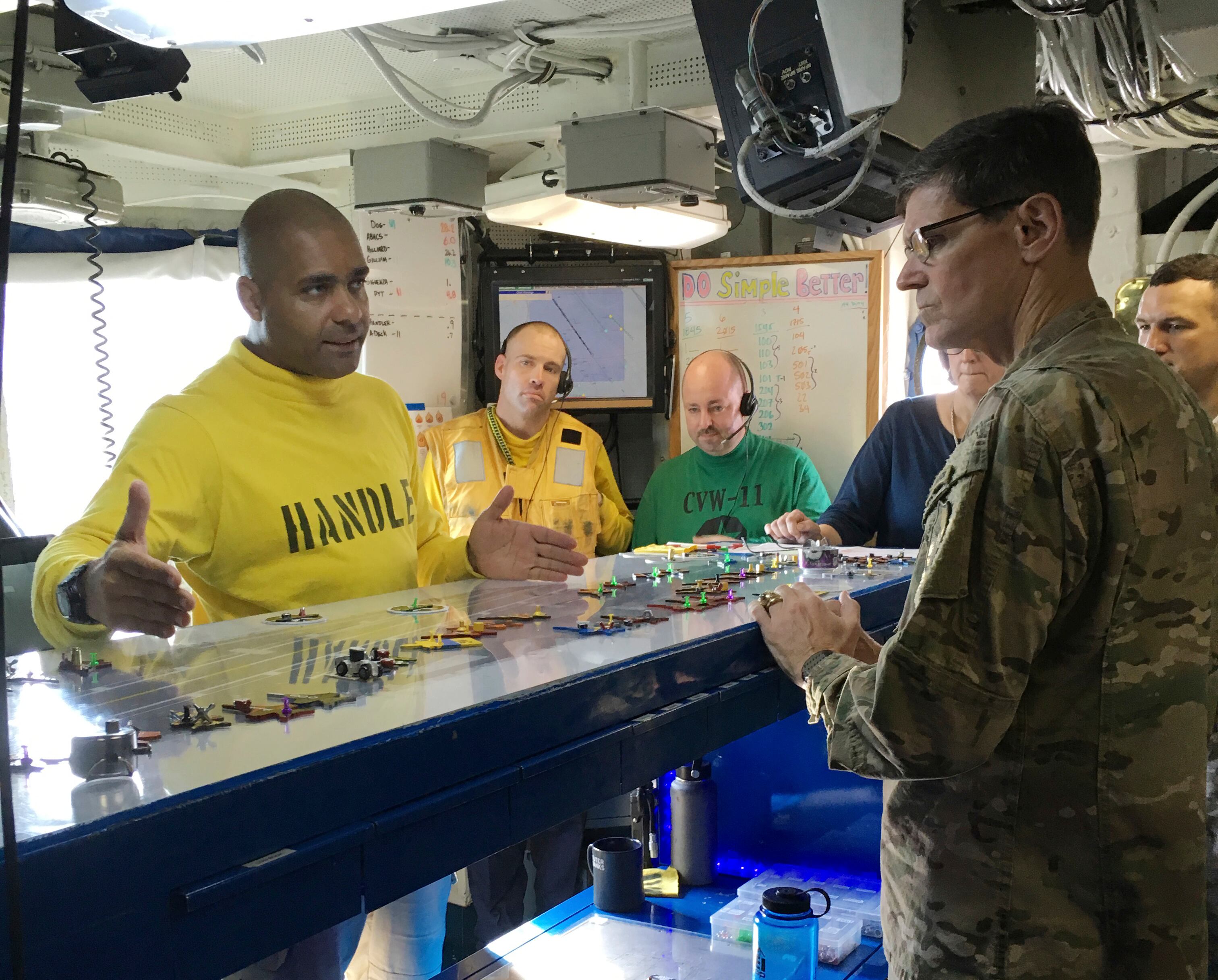 Gen. Joseph Votel, the top U.S. commander in the Middle East, visited the Nimitz on Thursday, also stopping on the nearby guided-missile cruiser Vella Gulf. The drone, he said, also flew over that ship.
