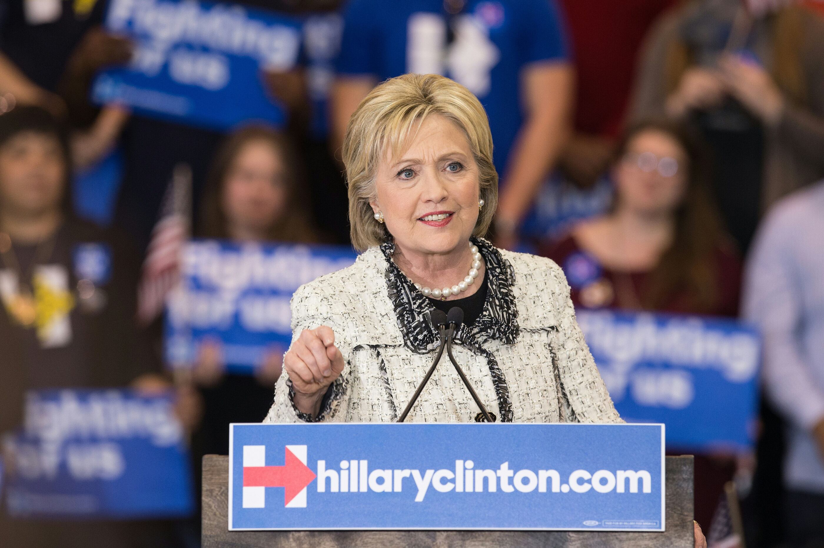 Democratic presidential candidate Hillary Clinton addresses a primary night rally on Feb. 27, 2016, in Columbia, S.C.