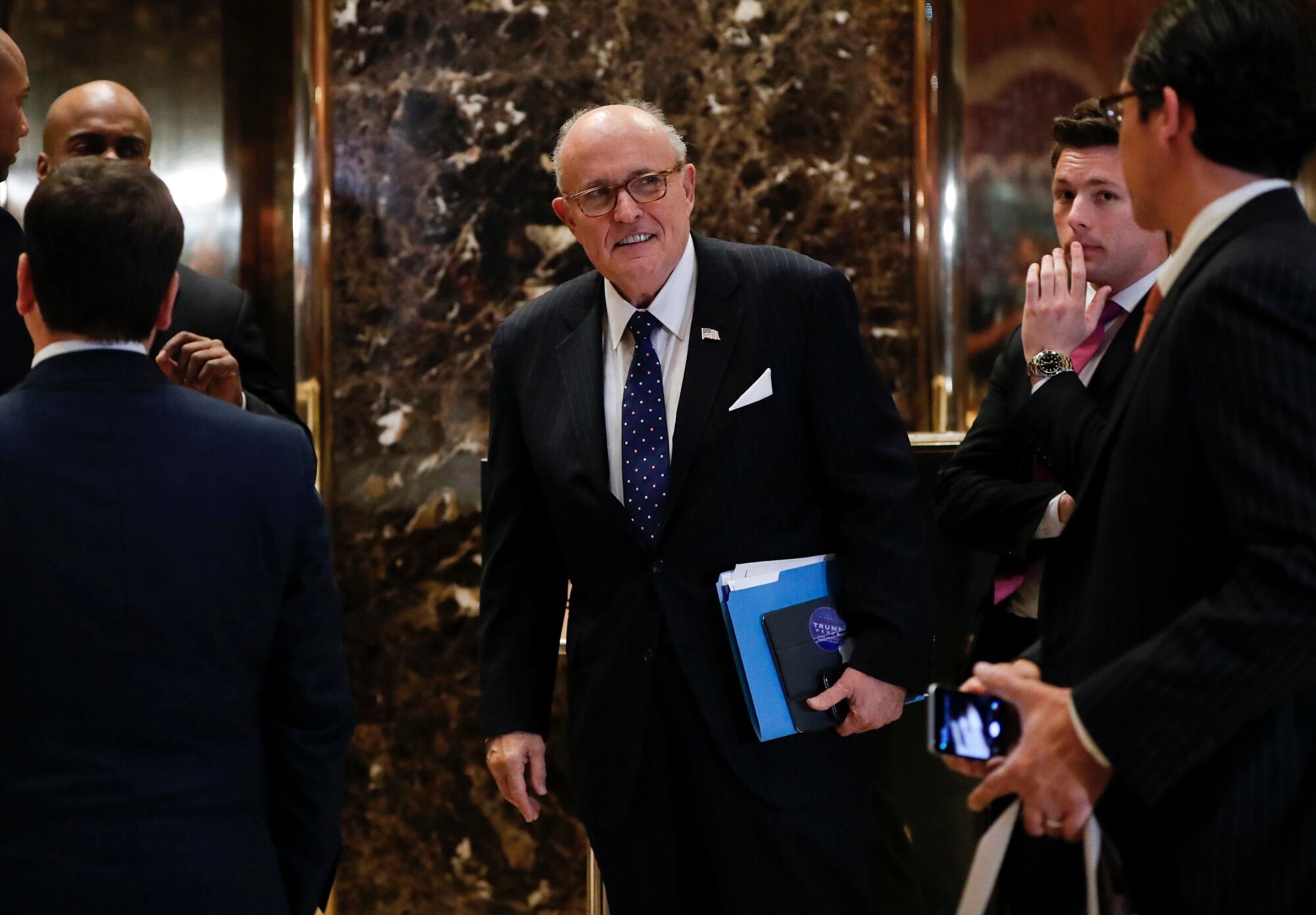 Former New York Mayor Rudy Giuliani arrives at Trump Tower, Wednesday, Nov. 16, 2016, in New York.