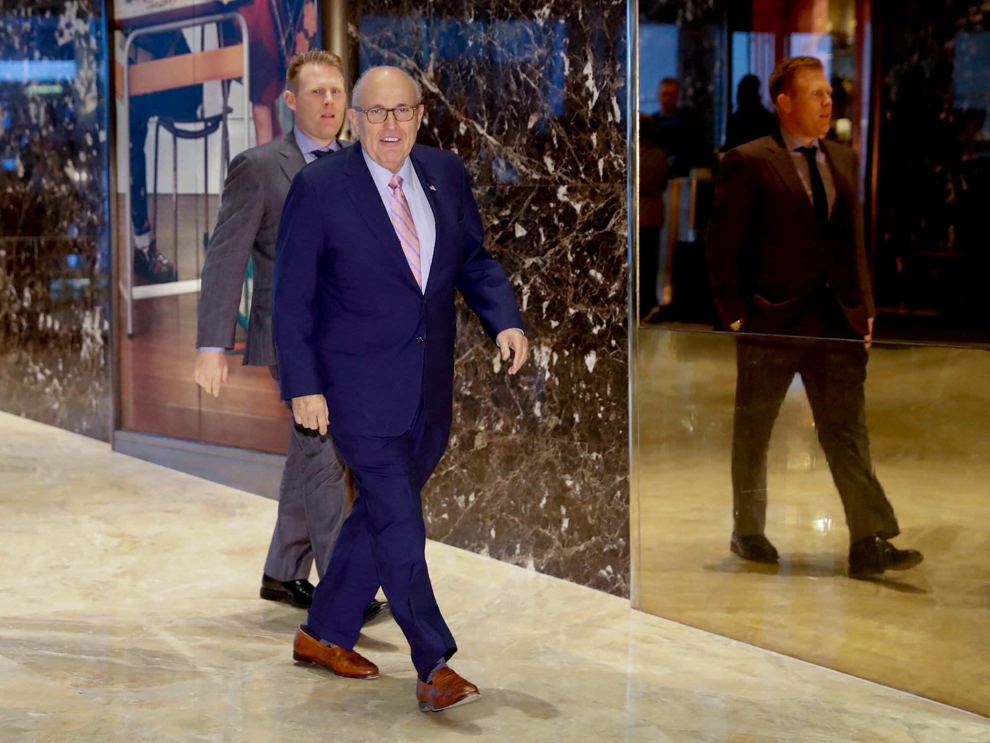 Former New York City Mayor Rudy Giuliani arrives at Trump Tower, Thursday, Nov. 17, 2016, in New York.