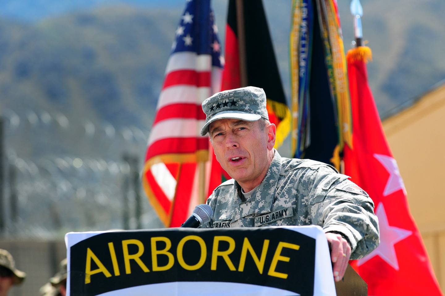 Gen. David H. Petraeus, commander of NATO and International Security Assistance Force troops in Afghanistan, speaks with soldiers at Forward Operation Base Joyce on April 11, 2011.